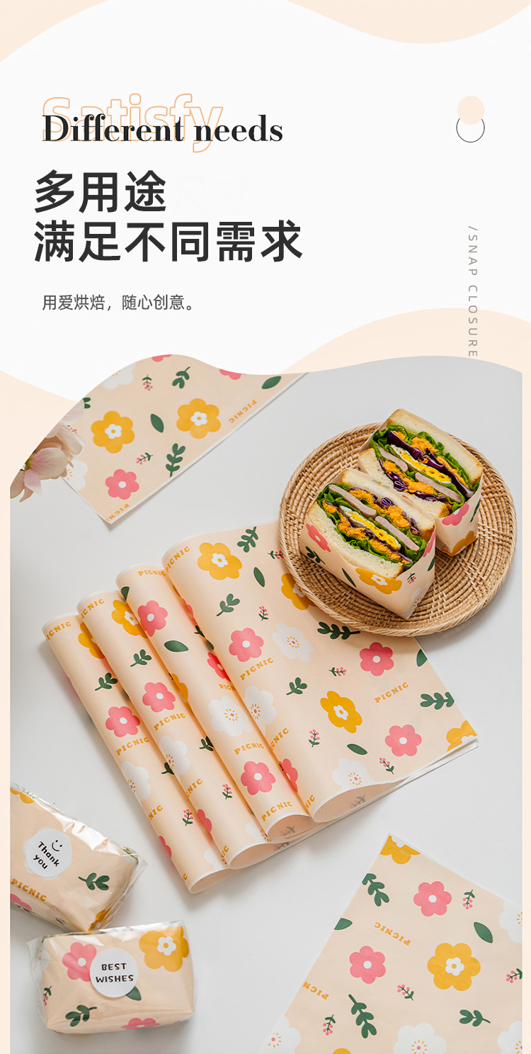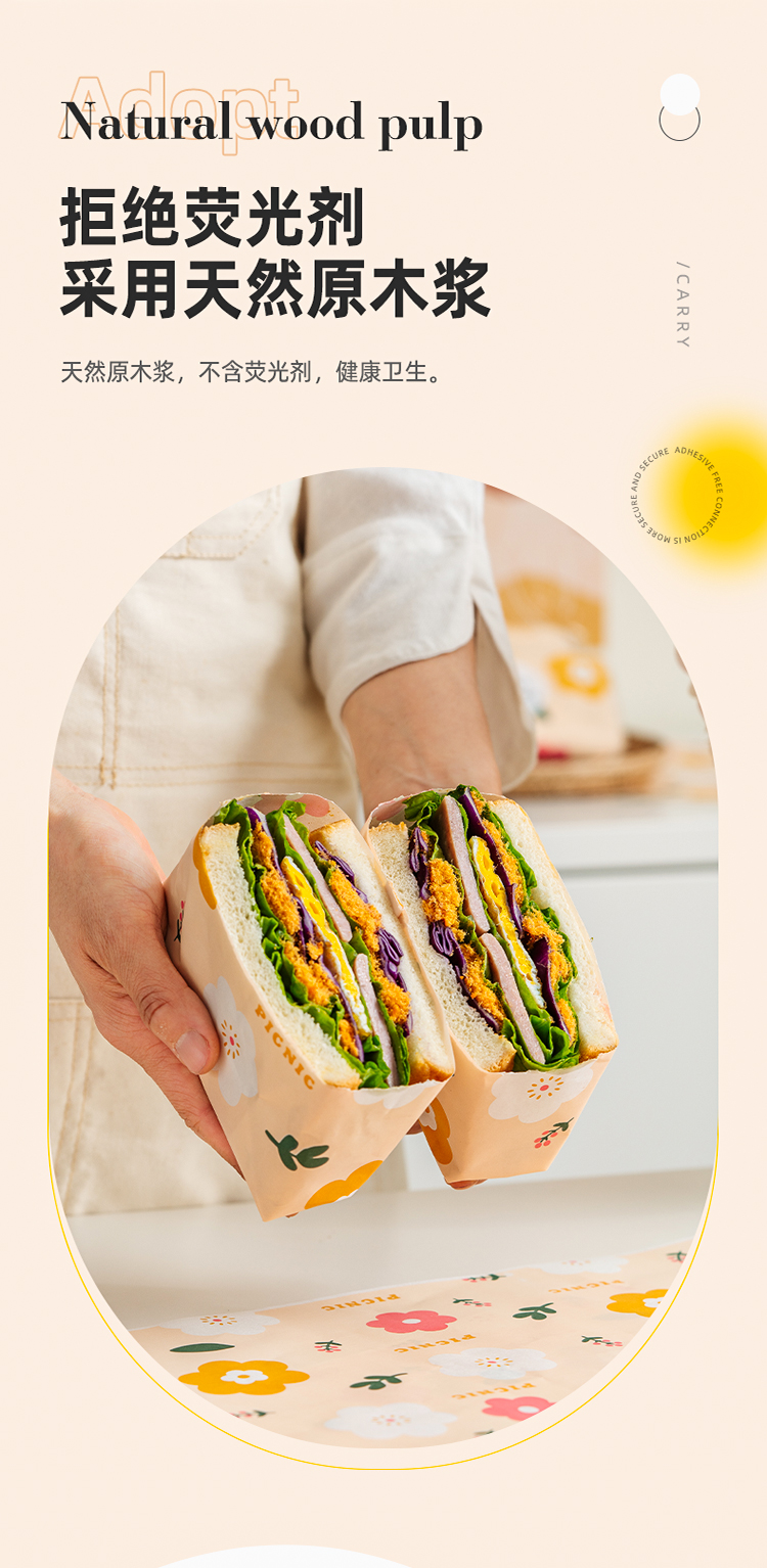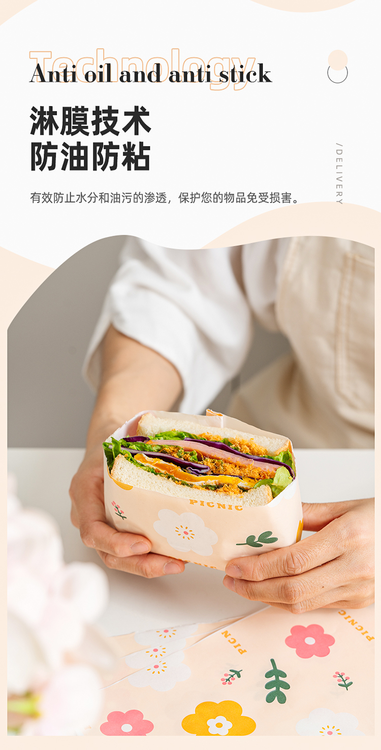 Papel de embalaje de sándwich impermeable a prueba de agua a prueba de aceite de grado alimenticio papel de película de limpieza de hamburguesas perros calientes mano agarrar pastel papel de embalaje comercial doméstico