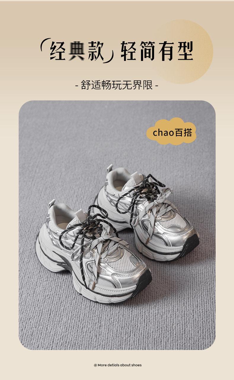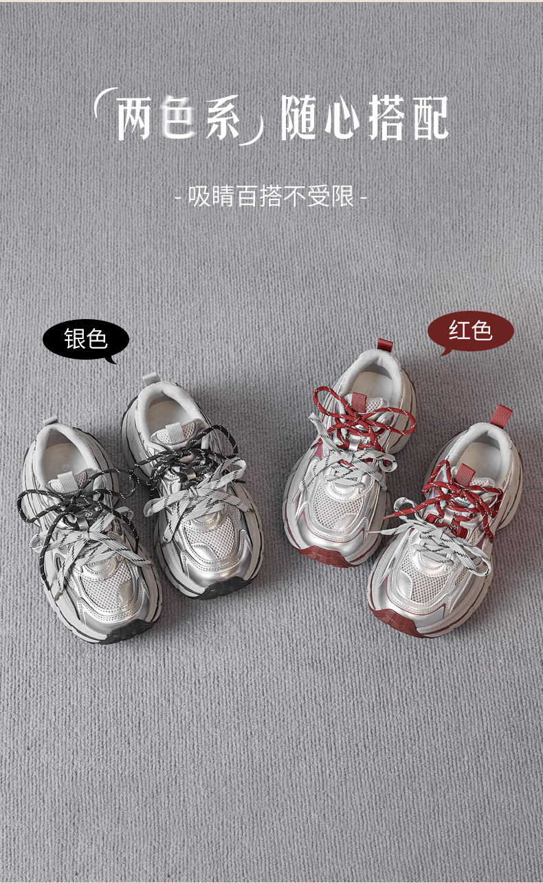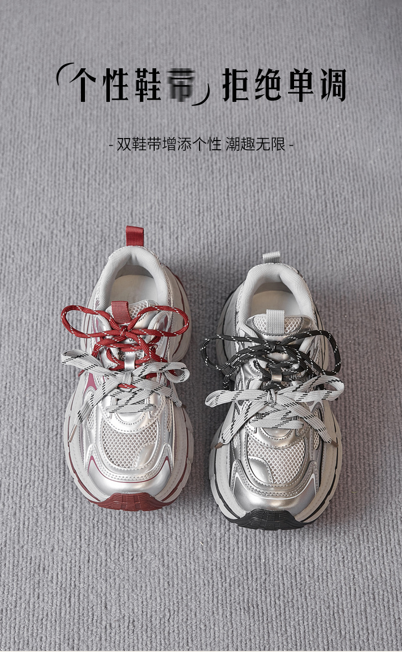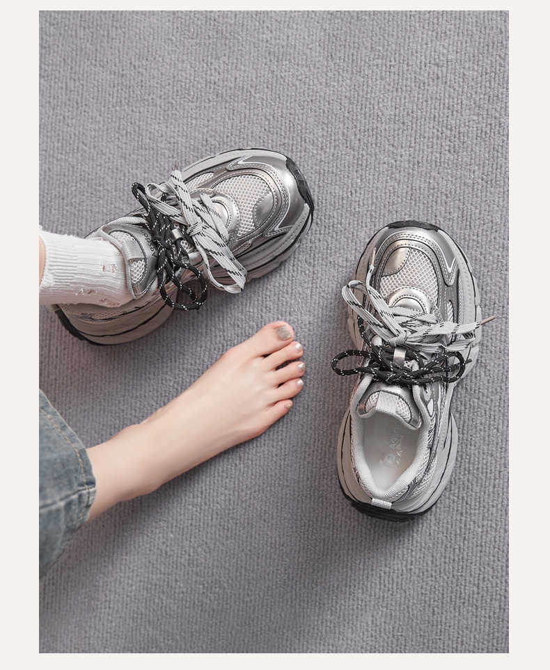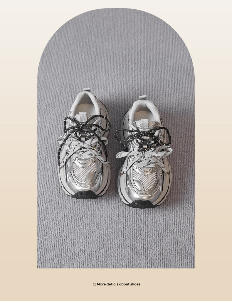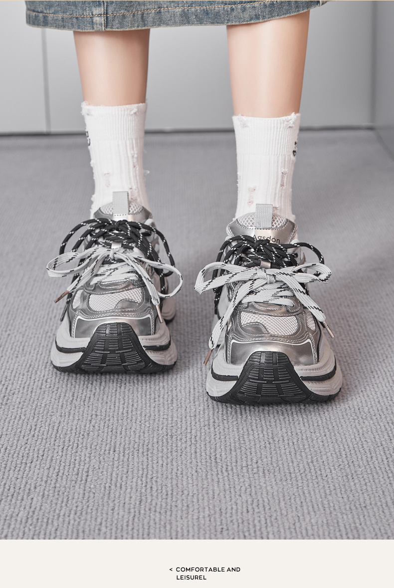 Zapatos de zapato para padres y mujeres 2026 nuevos zapatos deportivos de primavera retro gris plateado zapatos de carrera casuales