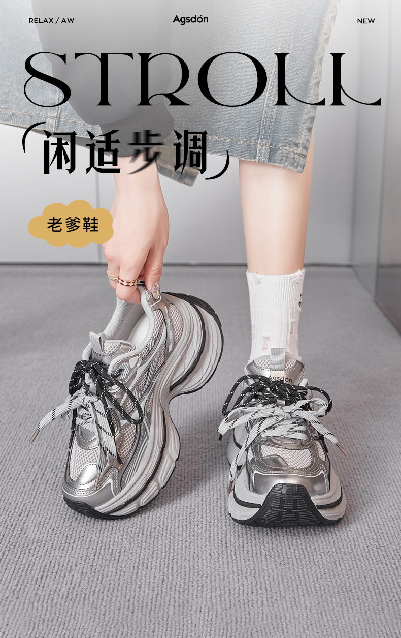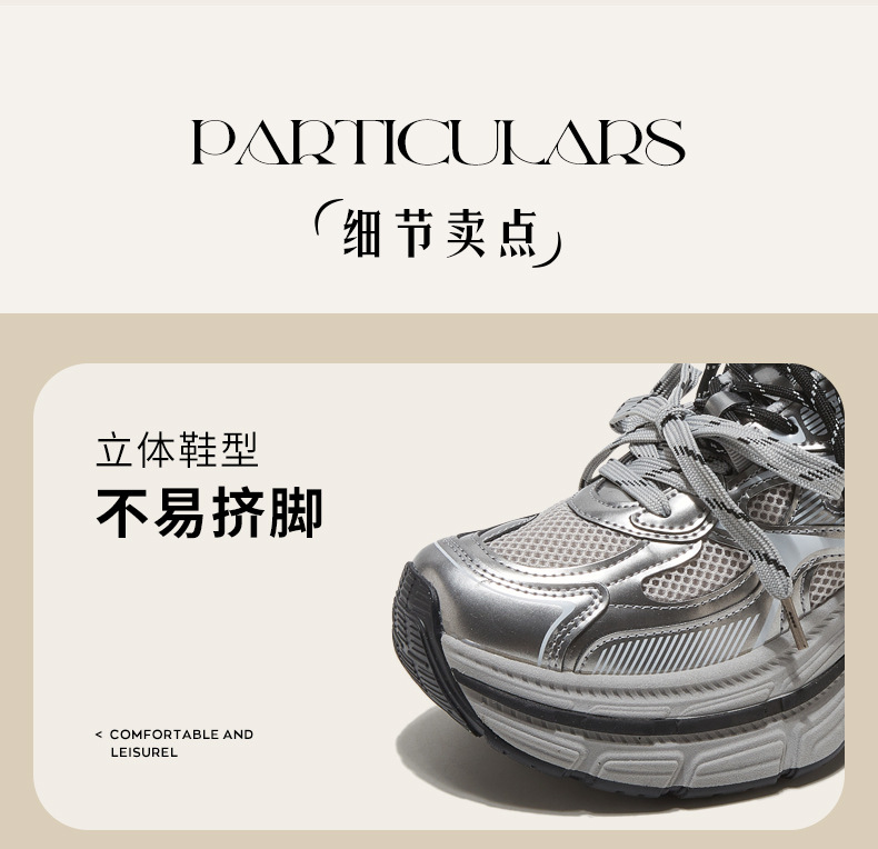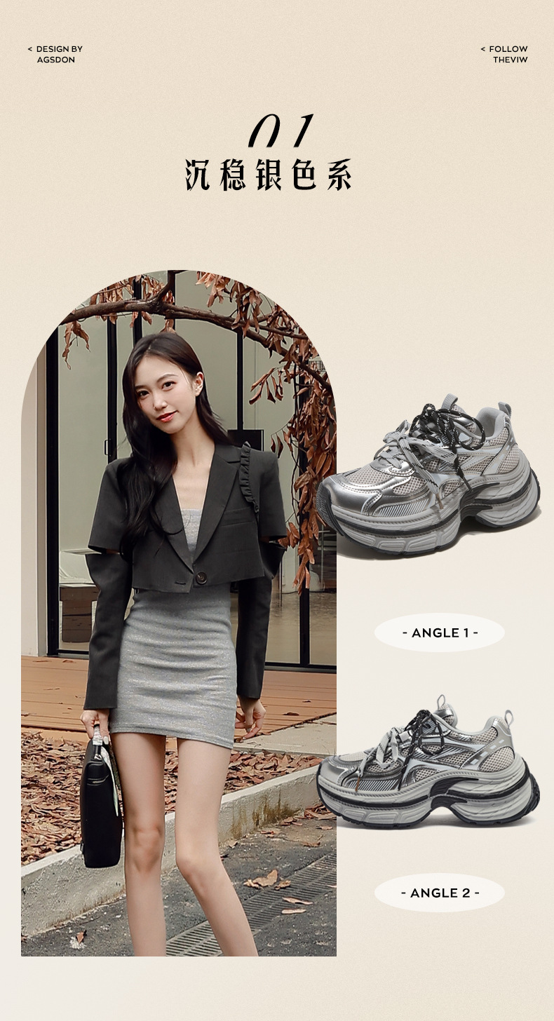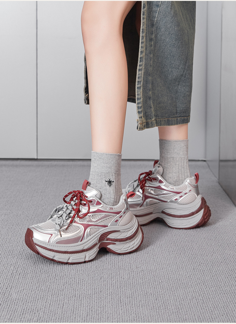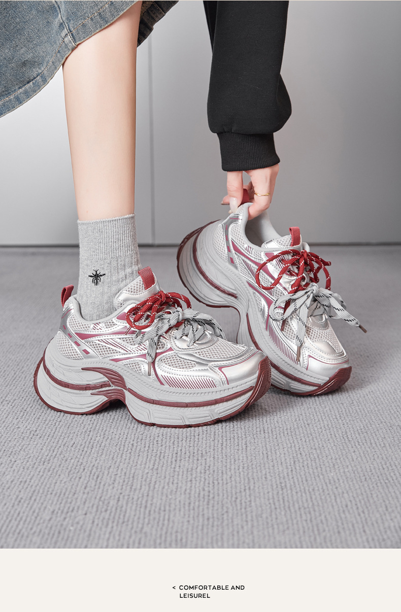 Zapatos de zapato para padres y mujeres 2026 nuevos zapatos deportivos de primavera retro gris plateado zapatos de carrera casuales