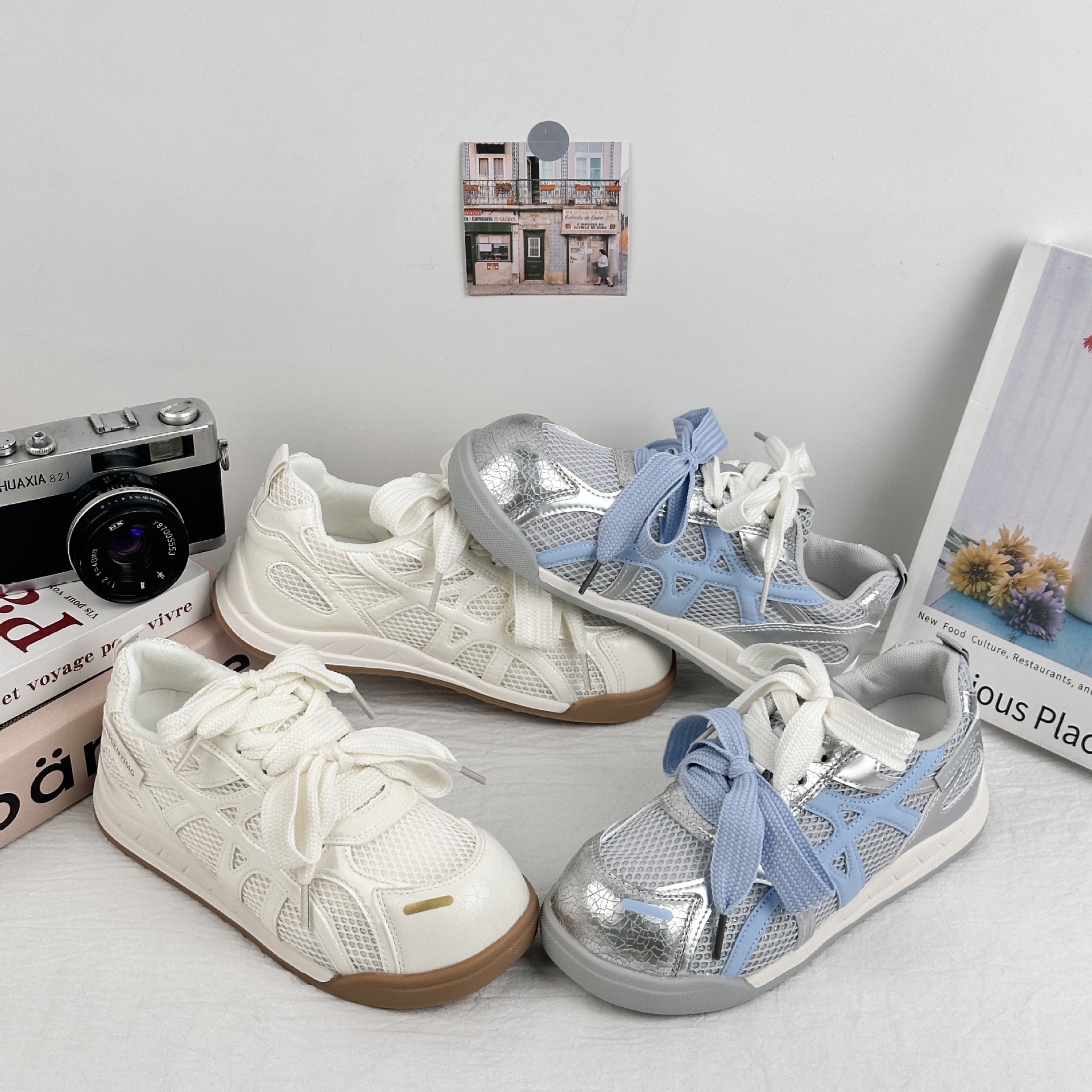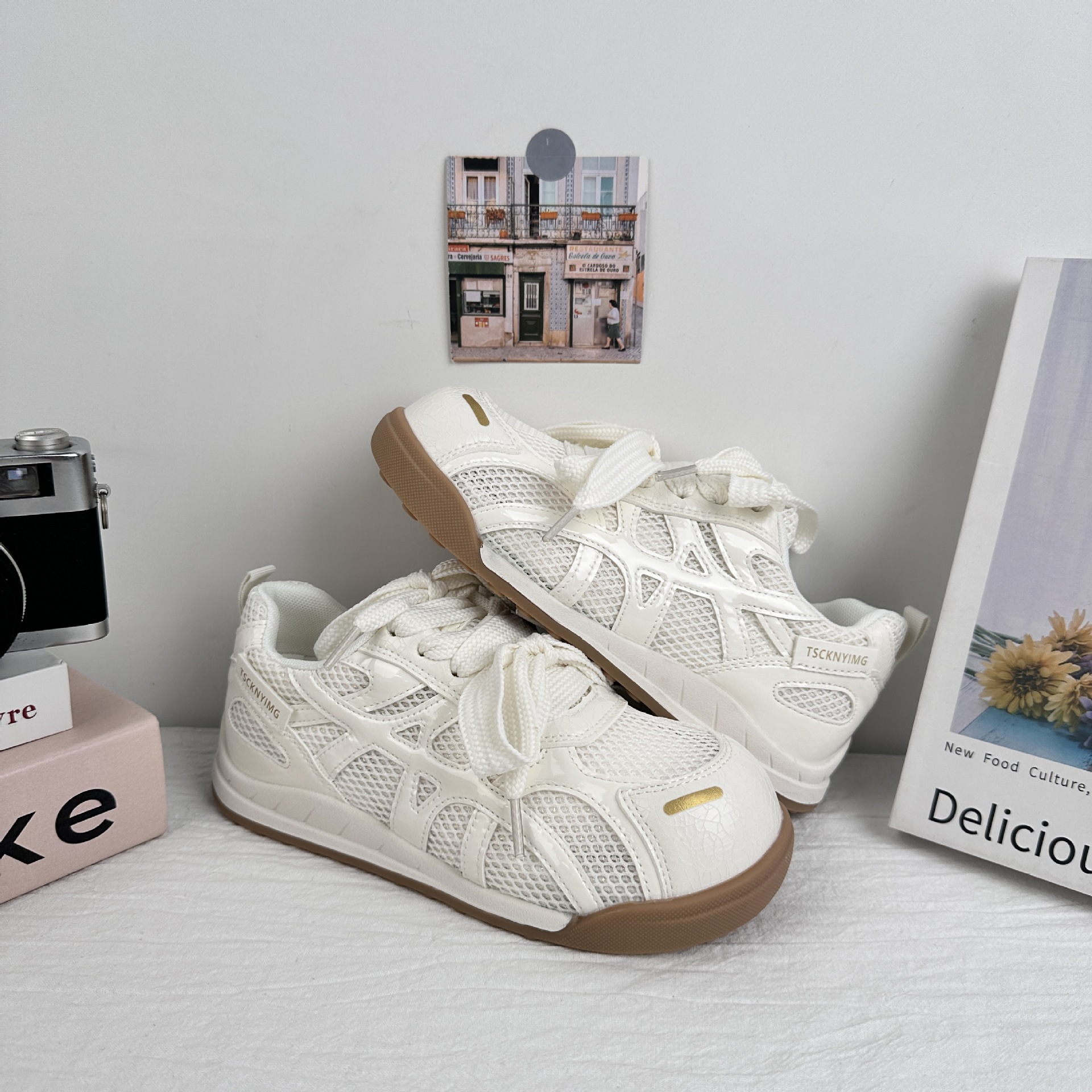 A9919 zapatos blancos transpirables de malla para mujer verano delgado 2025 nuevo estilo ins todo-fósforo deportes ocio entrenamiento alemán zapatillas