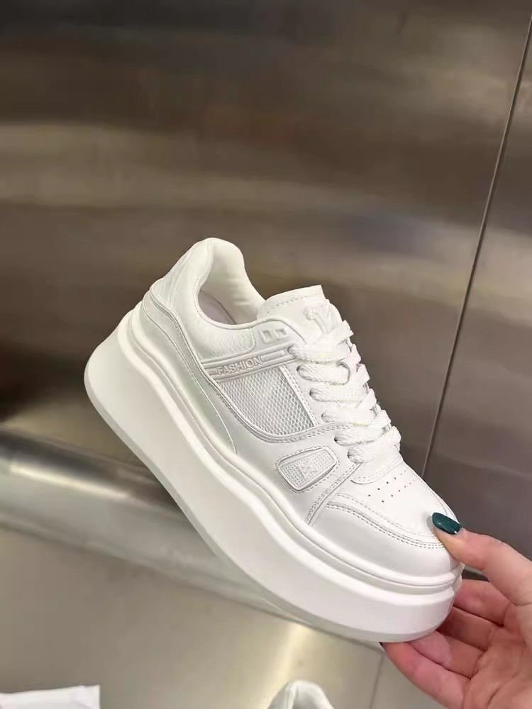 Pequeño aumento de altura de suela gruesa zapatos blancos para mujeres 2024 verano nuevo estilo universal muffin casuales zapatos de red transpirables de suela gruesa