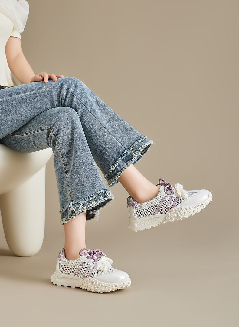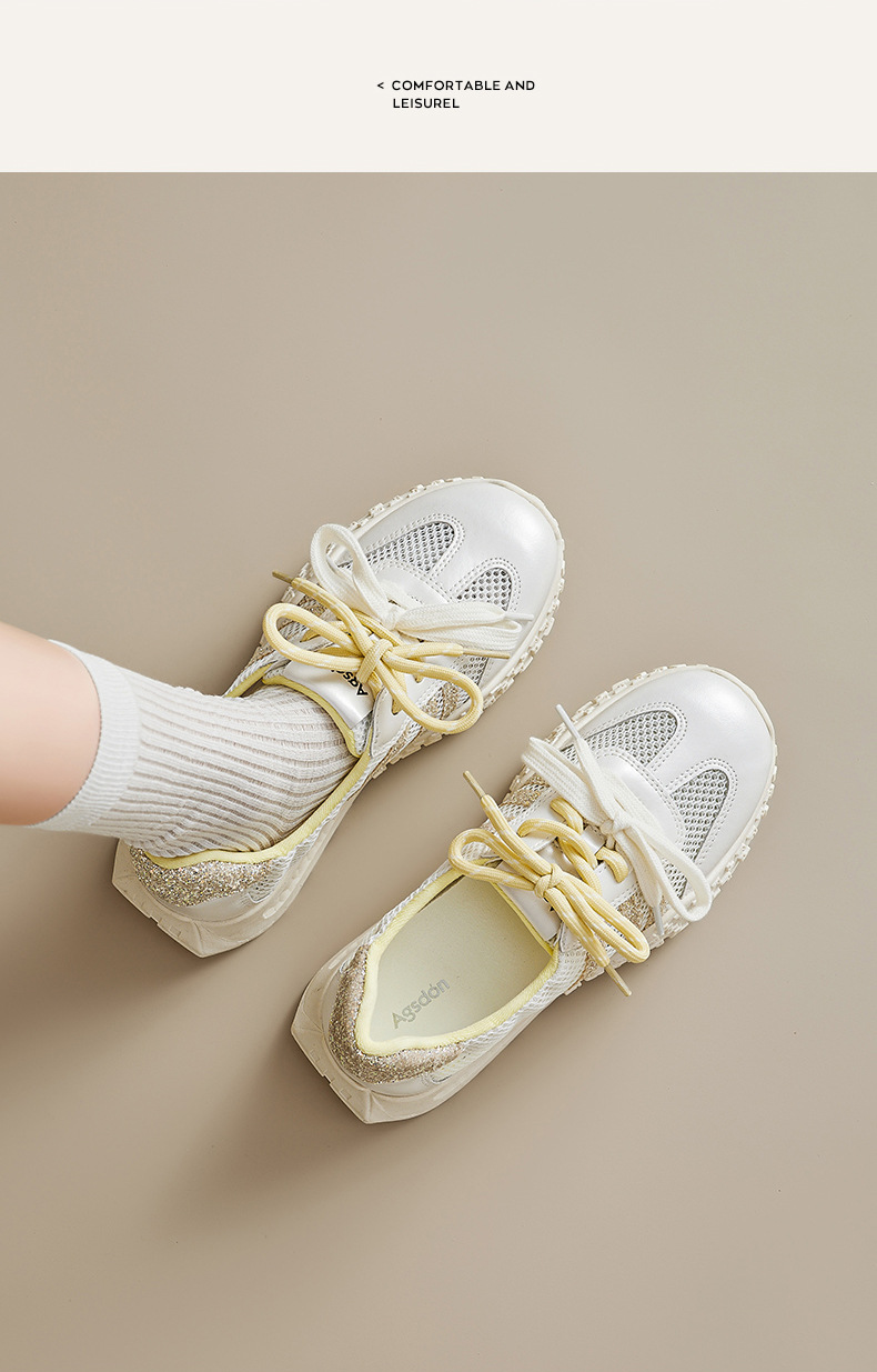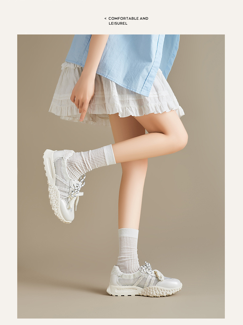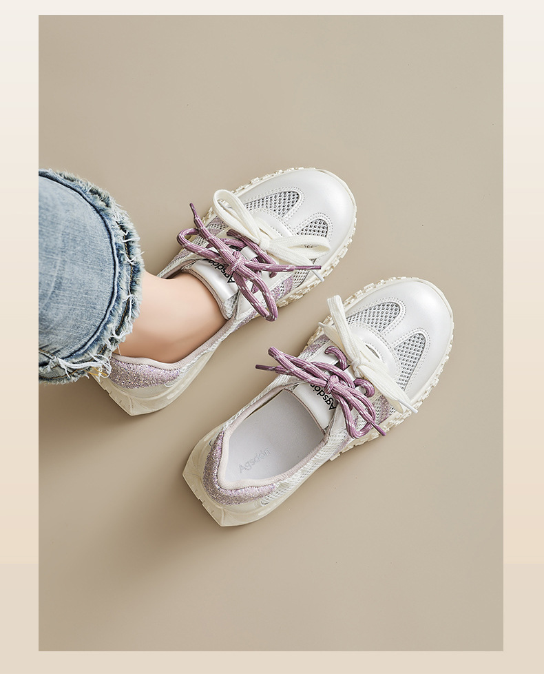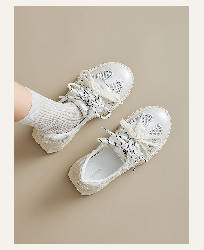 Augustion Little White Shoes Mujer 2025 Nuevo verano delgado malla hueca Forrest zapatos de entrenamiento zapatillas de suela gruesa