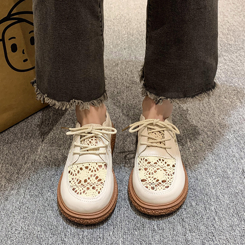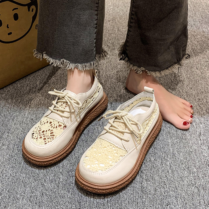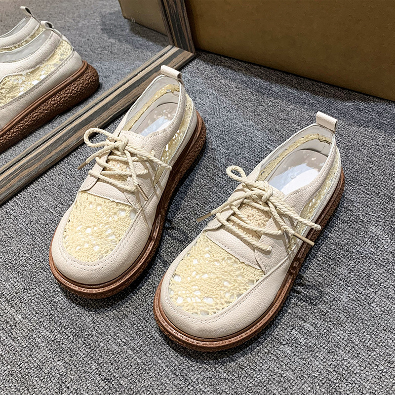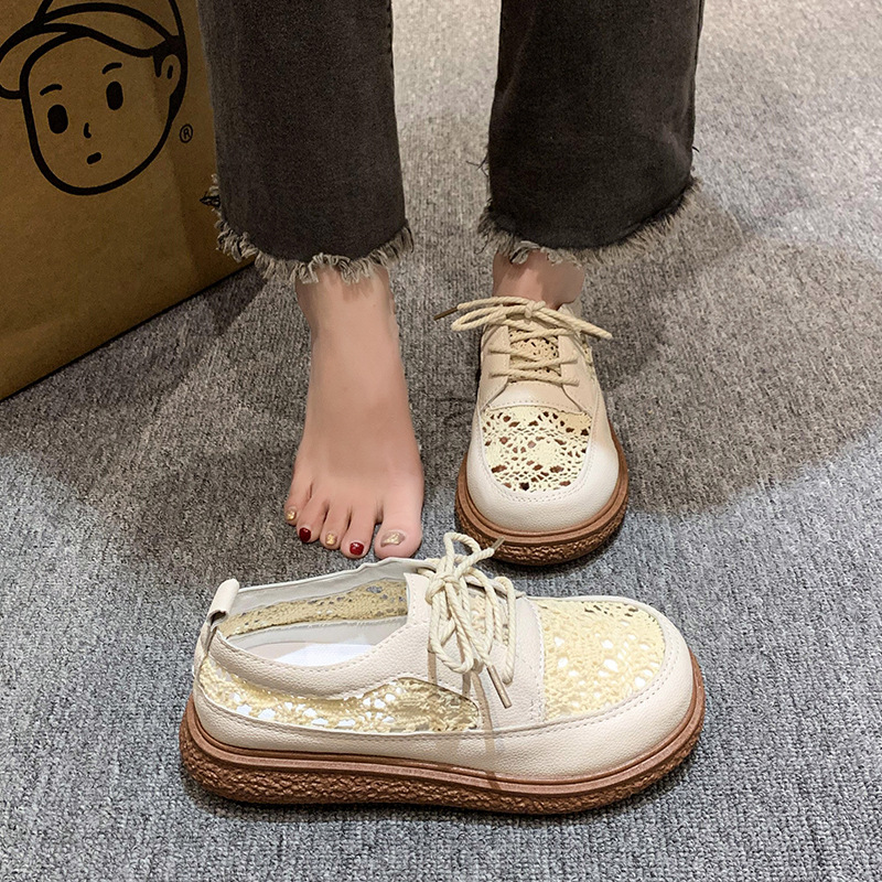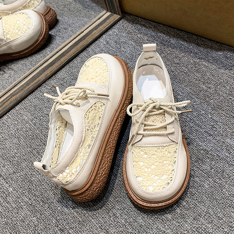 Primavera y verano nuevos zapatos de malla de nicho, sandalias de algodón permeable, zapatos de cabeza grande para mujeres con suela gruesa