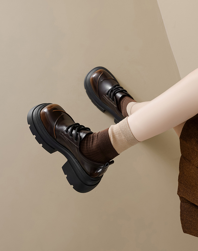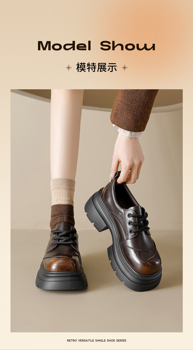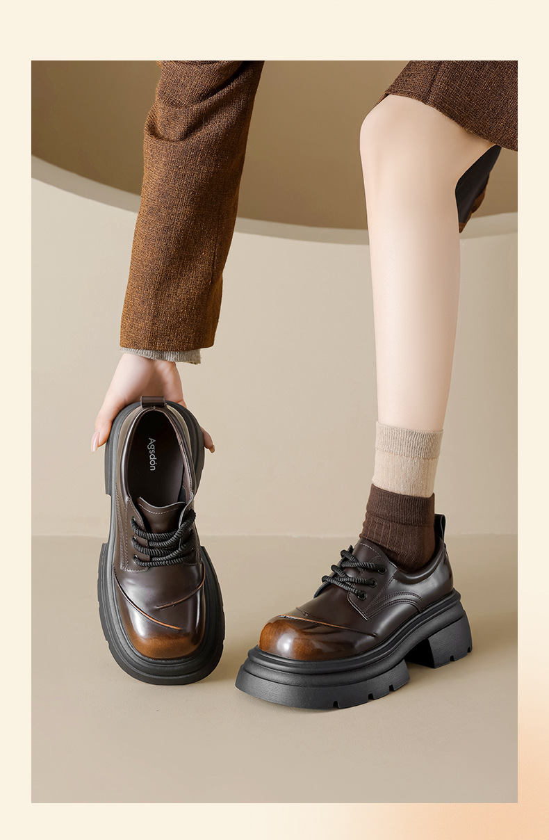 Zapatos de Lefour para mujeres 2026 nuevo estilo de primavera retro estilo británico con zapatos de cuero de lana gruesa zapatos de tacón único