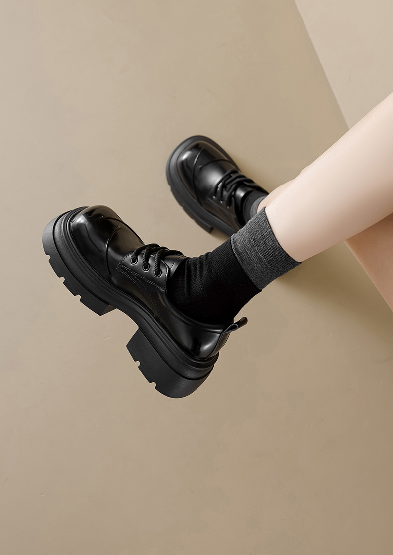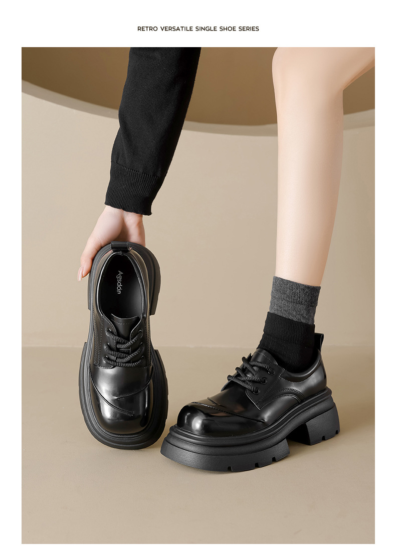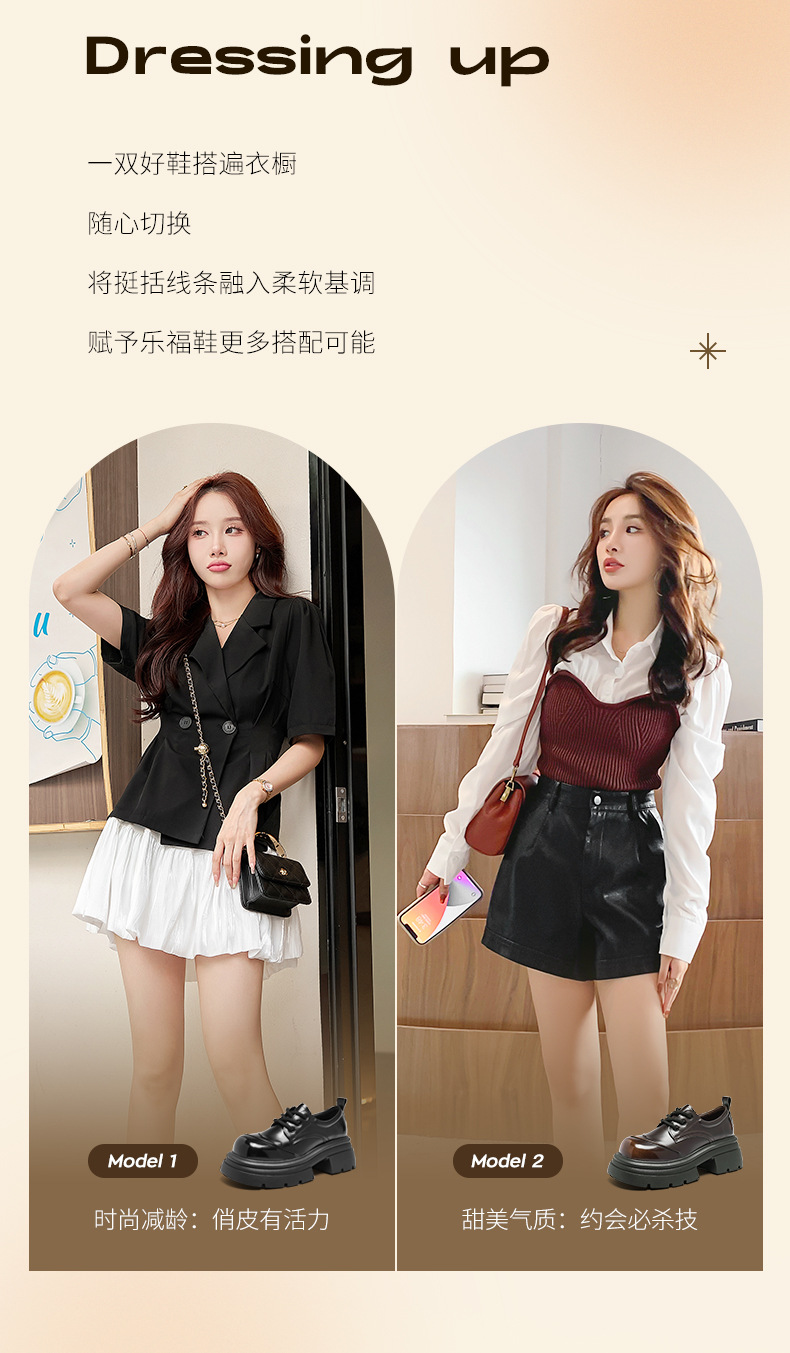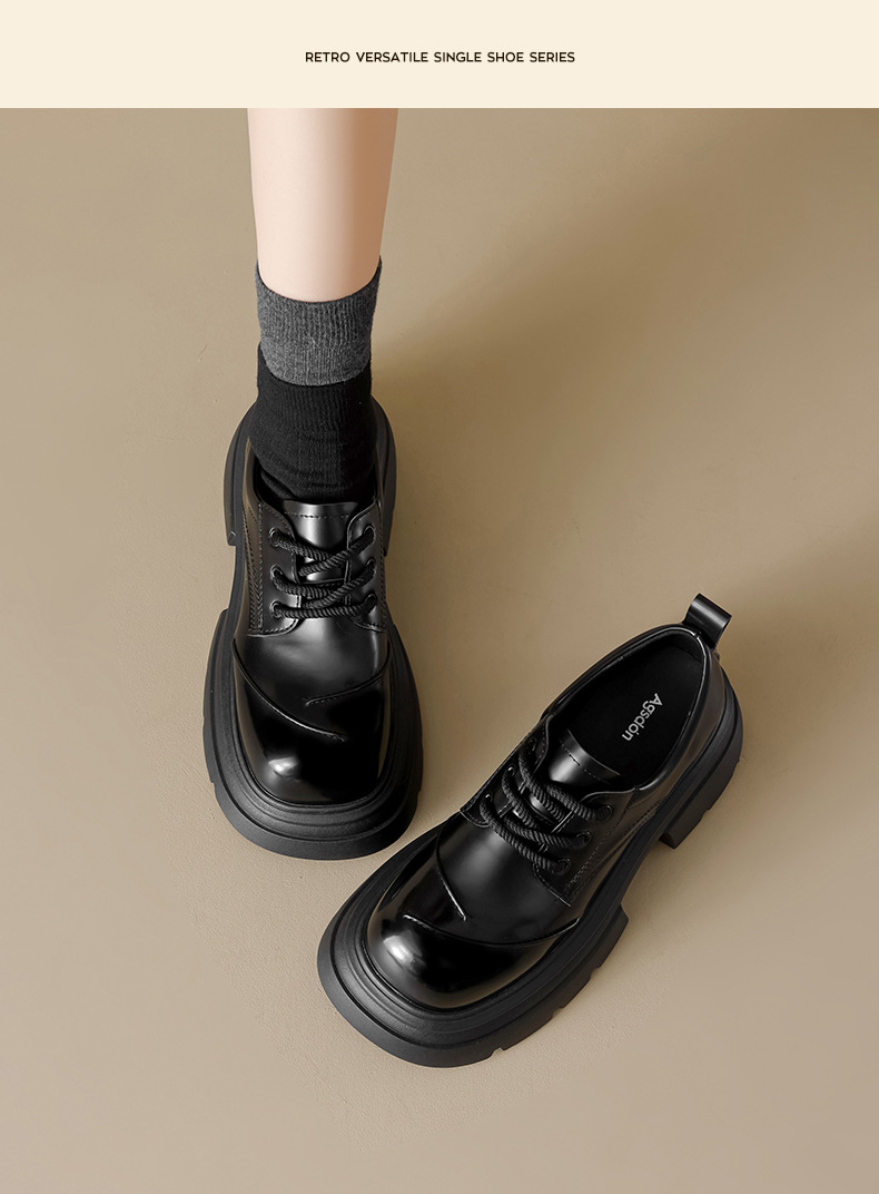 Zapatos de Lefour para mujeres 2026 nuevo estilo de primavera retro estilo británico con zapatos de cuero de lana gruesa zapatos de tacón único