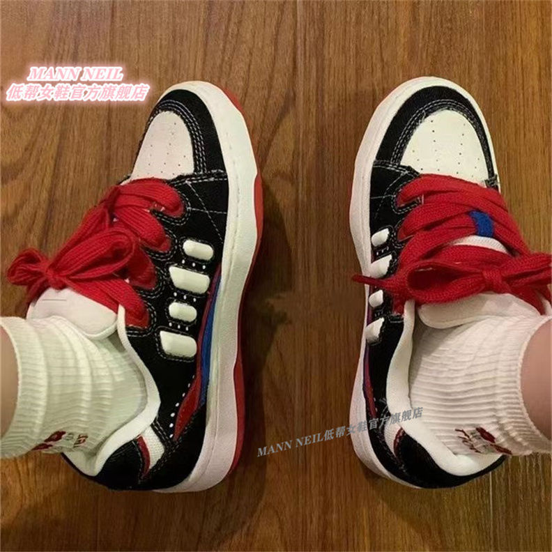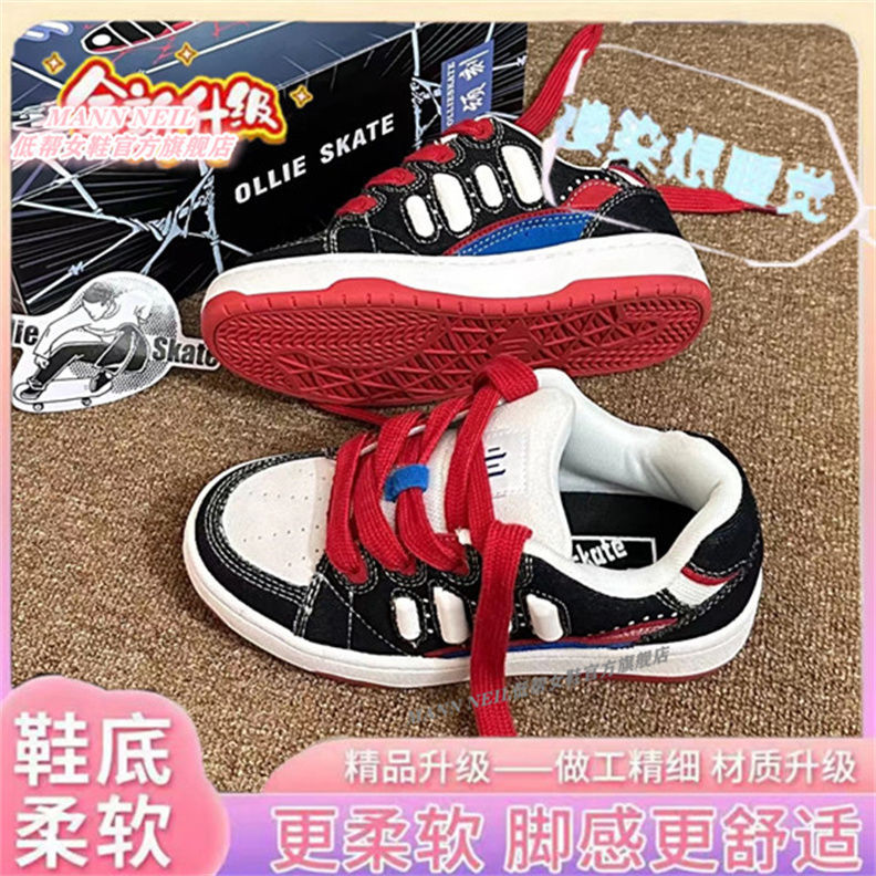 Mann Neil de alto valor araña zapatos de pan de piel negro, blanco, rojo, azul, mosaico de color contrastante para hombres y mujeres zapatos de skate