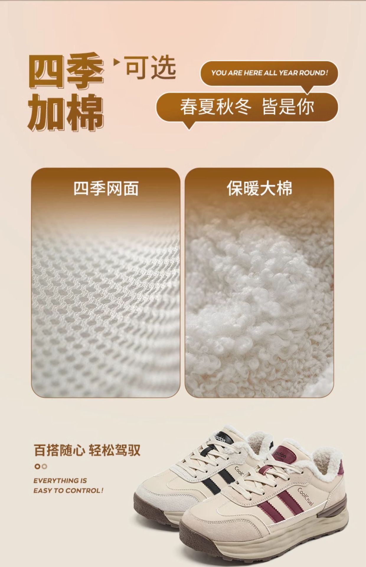Zapatos de algodón retro retro Mirad de primavera 2026 nuevos zapatos de entrenamiento deportivos de suela gruesa