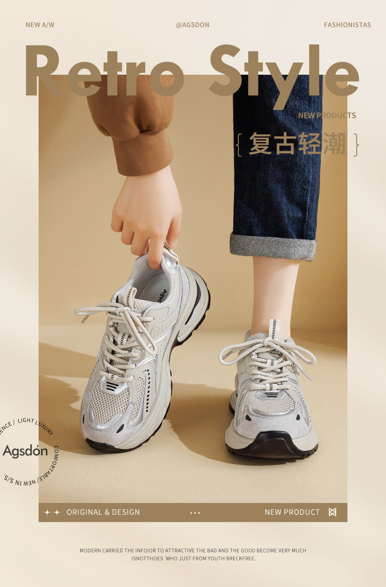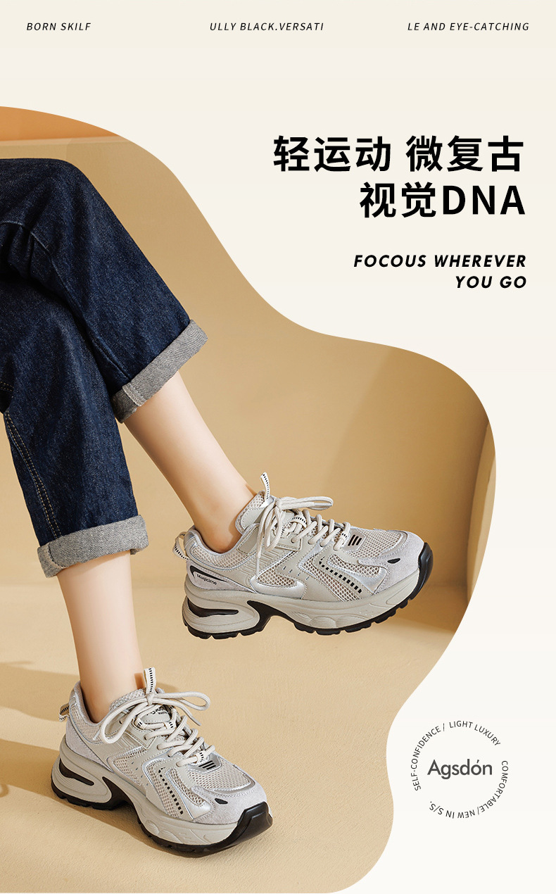 Zapatos Augusden de suela gruesa para mujer, estilo retro, deportivos, de malla, para correr, tendencia 2025, invierno.