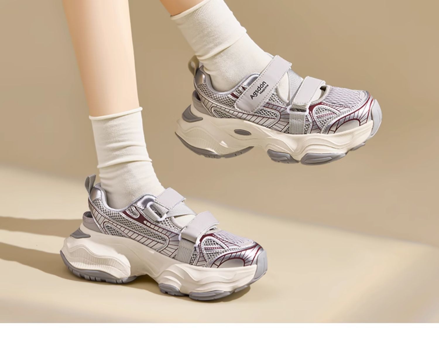 Sandalias de la cabeza del león antiguo para mujeres 2026 nueva primavera deportiva casual con base gruesa vaciada velcro sandalias