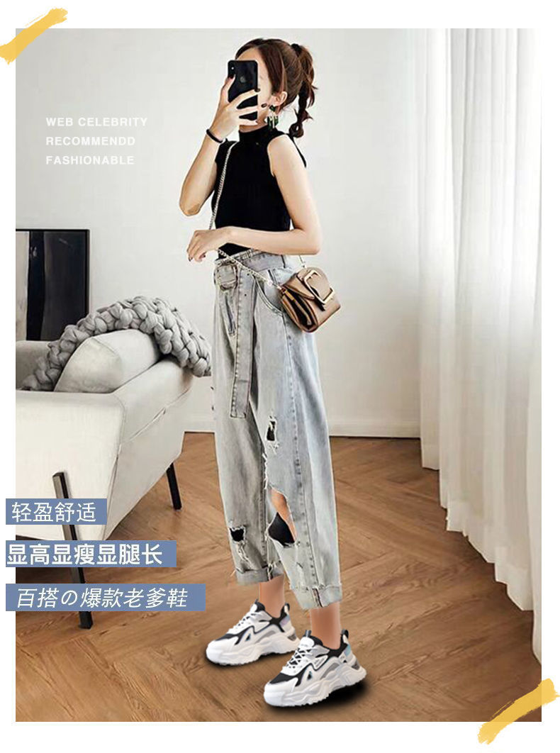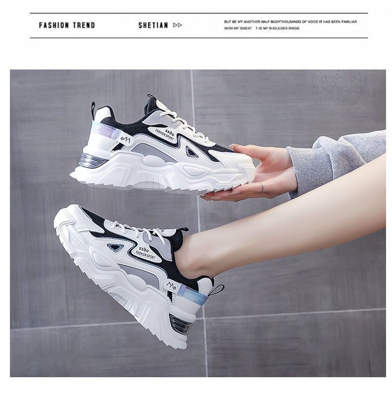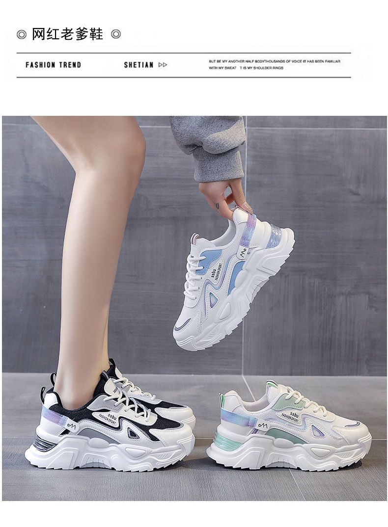 Zapatillas torpe para mujeres 2024 Nuevos zapatos populares de verano versátiles de suela gruesa deportivos casuales zapatos blancos para estudiantes primavera y otoño
