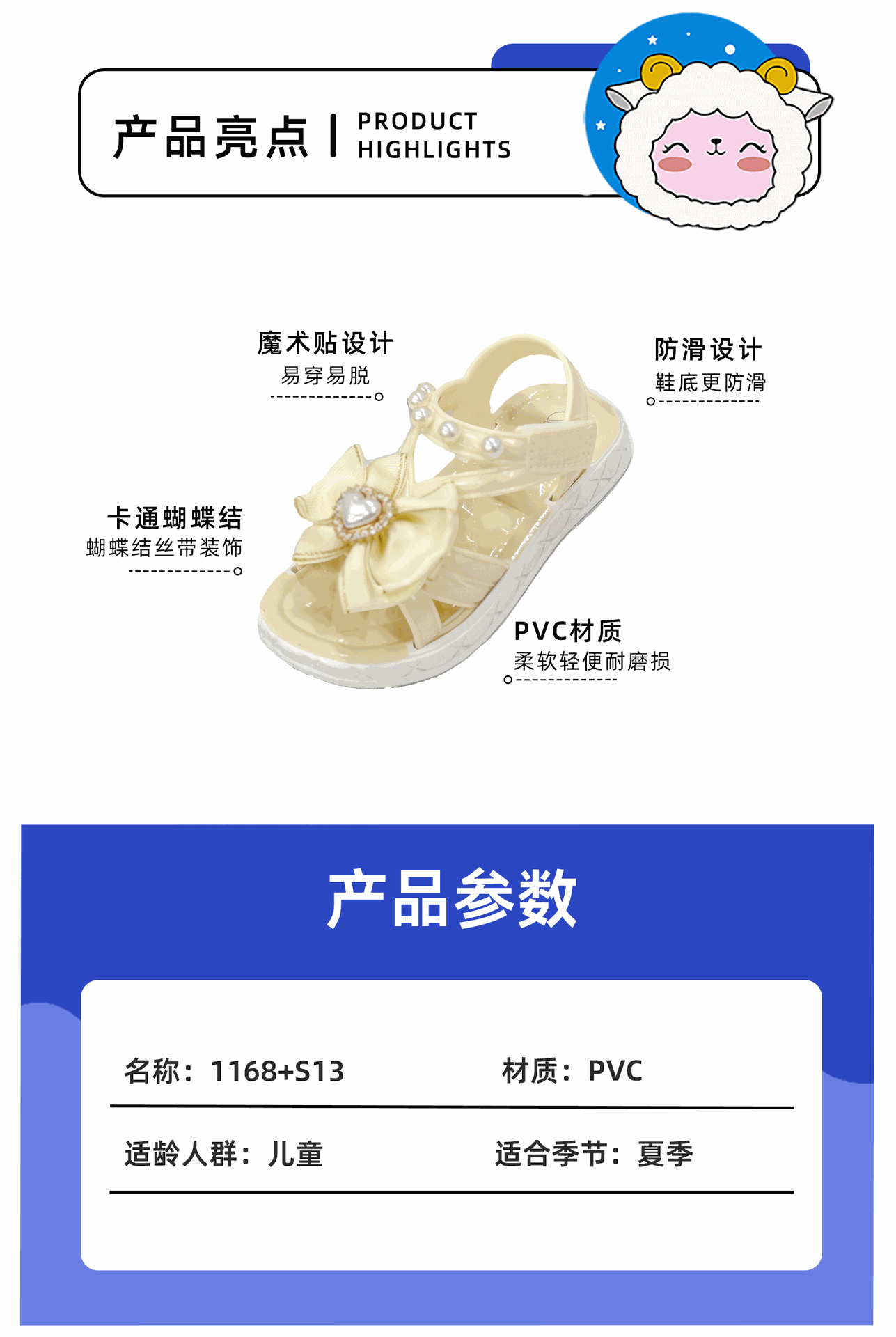 Fábrica mayorista velcro para niños sandalias de niña para exportación directa de verano nuevas sandalias princesa 1168 + S13