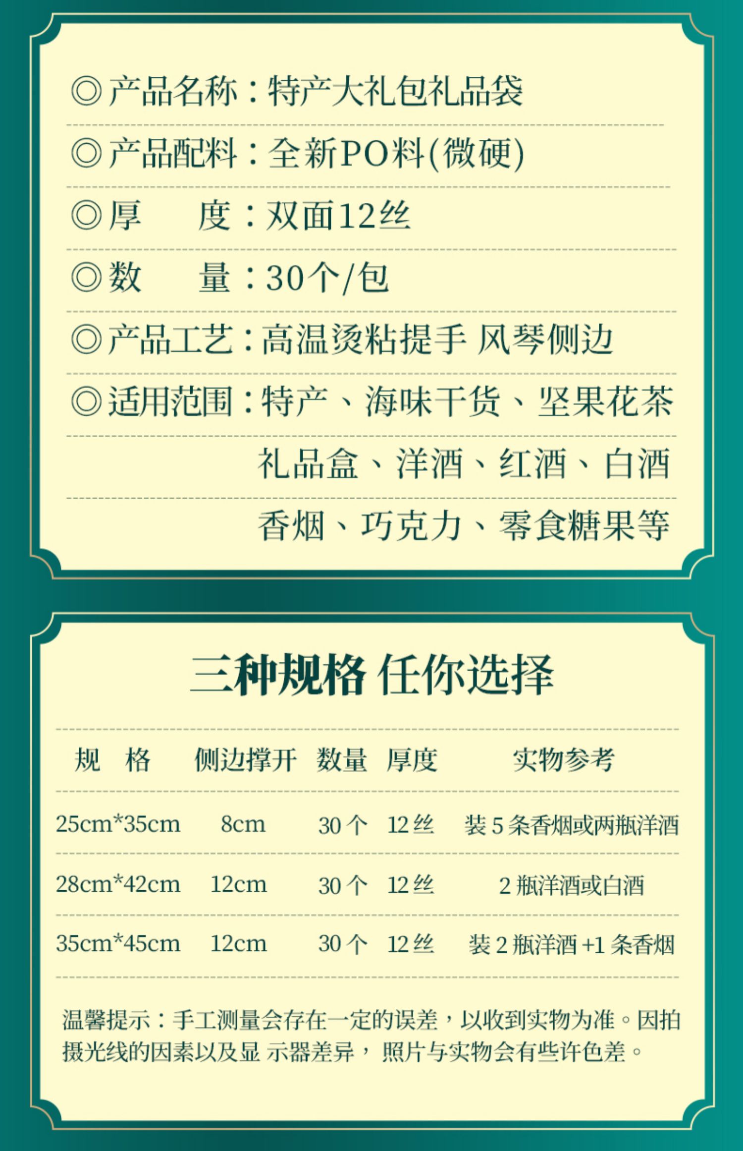 | Especificaciones y modelos | Xinfu Gift Hanging Bag 30pcs / pack - 250x350x80mm, Xinfu Gift Hanging Bag 30pcs / pack - 280x420x120mm, Xinfu Gift Hanging Bag 30pcs / pack - 350x450x120mm, Xinfu Gift Hanging Bag 30pcs / pack - 400x500x120mm, Special Gift Hanging Bag 30pcs / pack - 250x350x80mm, Special Gift Hanging Bag 30pcs / pack - 280x420x120mm, Bolsas de regalos especiales 30 pcs / paquete - 350x450x120mm, bolsas de regalos del Festival del Dragón 30 pcs / paquete - 250x350x80mm, bolsas de regalos del Festival del Dragón 30 pcs / paquete - 280x420x120mm, bolsas de regalos del Festival del Dragón 30 pcs / paquete - 350x450x120mm, bolsas de regalos del Medio Otoño 30 pcs / paquete - 250x350x80mm, bolsas de regalos del Medio Otoño 30 pcs / paquete - 280x420x120mm, Bolsas de regalos del mediodía de otoño 30 pcs / paquete - 350x450x120mm, bolsas de regalos de caracteres xi 30 pcs / paquete - 250x350x80mm, bolsas de regalos de caracteres xi 30 pcs / paquete - 280x420x120mm, bolsas de regalos de caracteres xi 30 pcs / paquete - 350x450x120mm, bolsas de regalos de caracteres xi 30 pcs / paquete - 400x500x120mm |