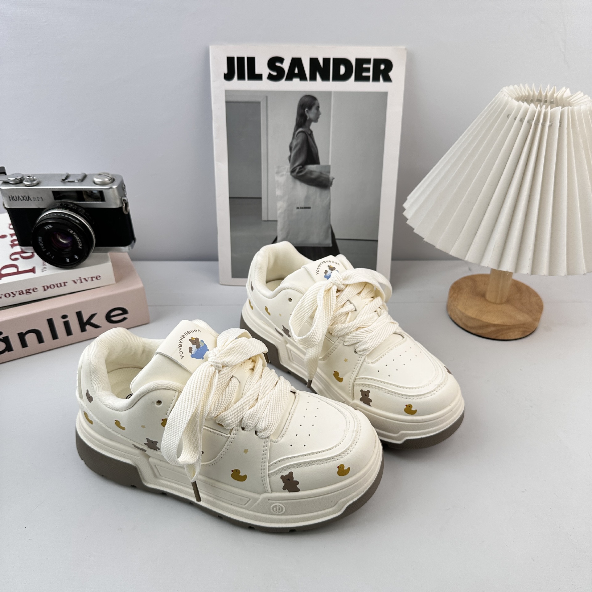 Farwave retro zapatos blancos para mujeres otoño y invierno 2025 zapatos de pan de suela gruesa de moda zapatos de lona de cuero zapatos de panel