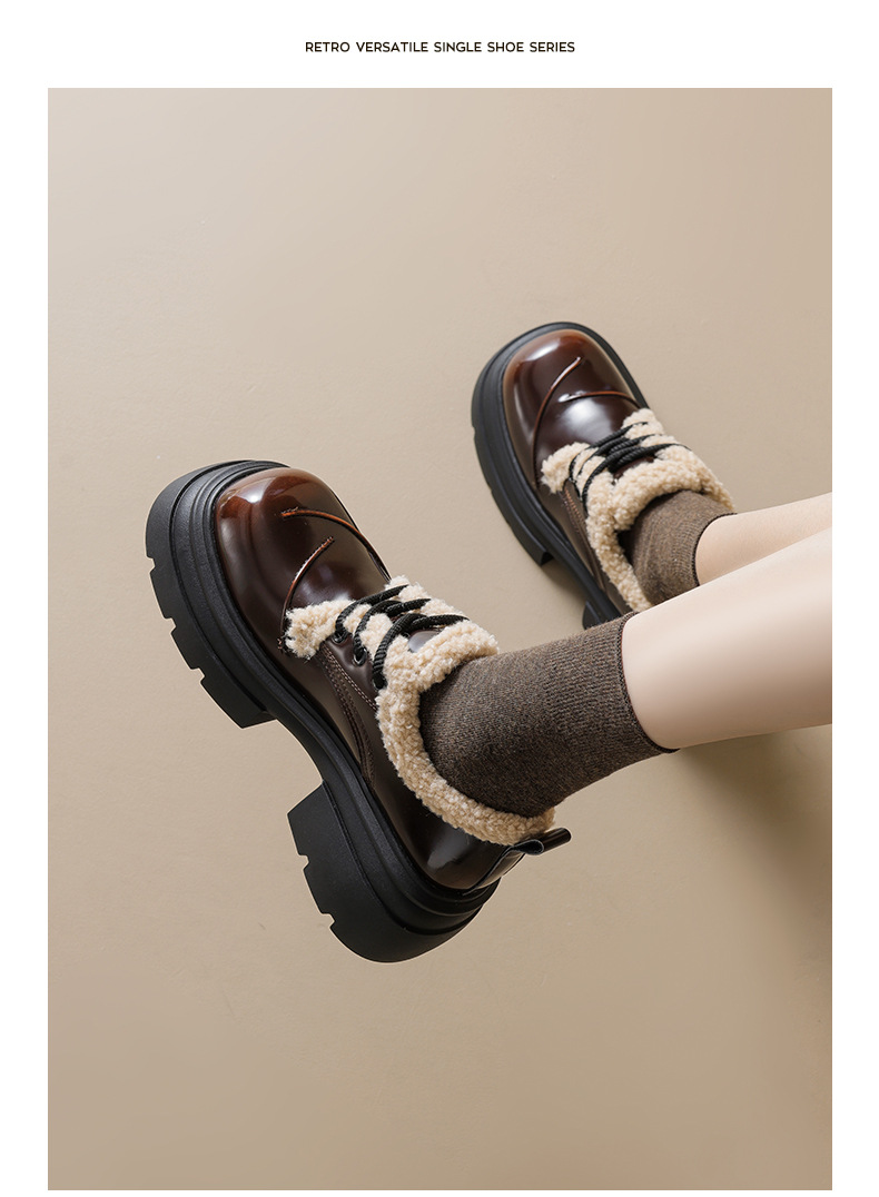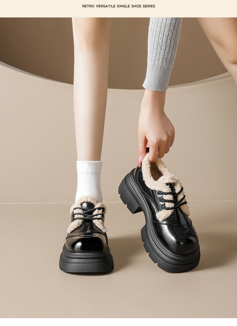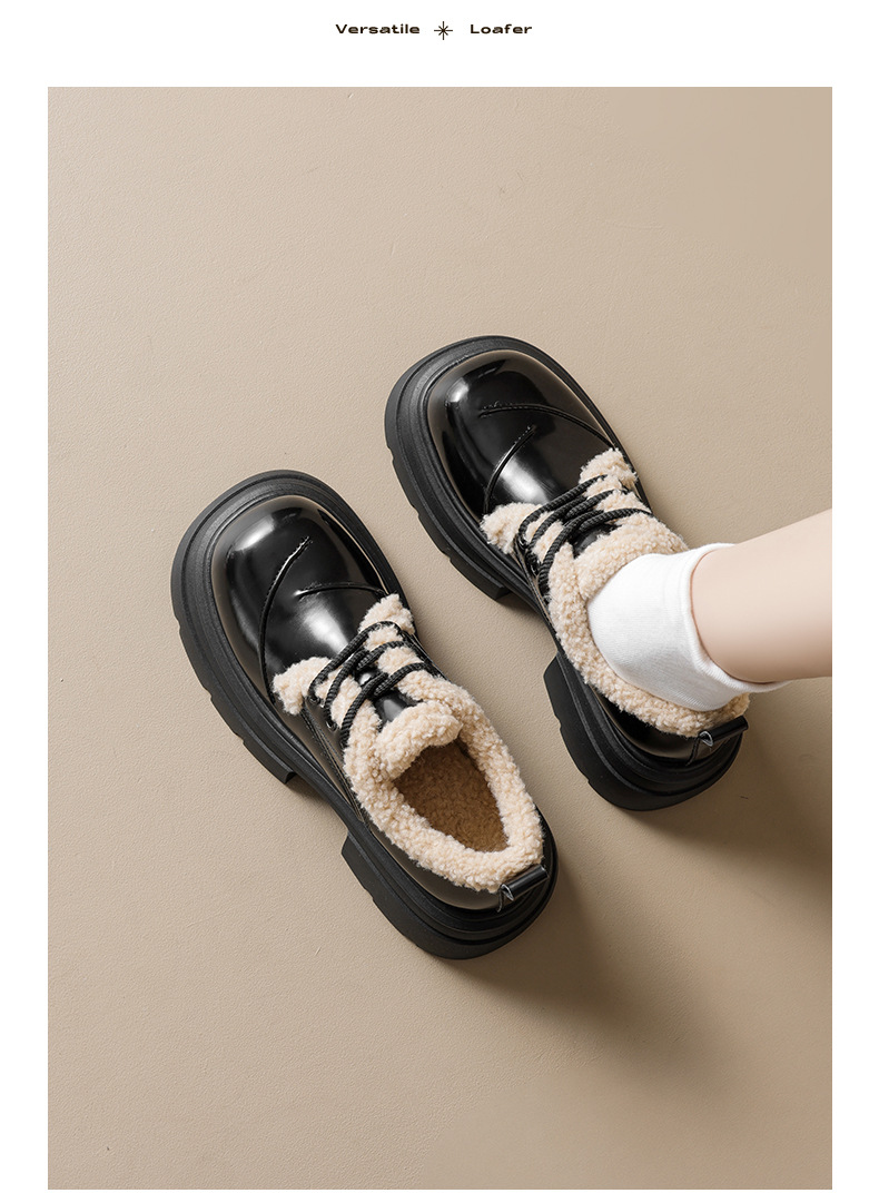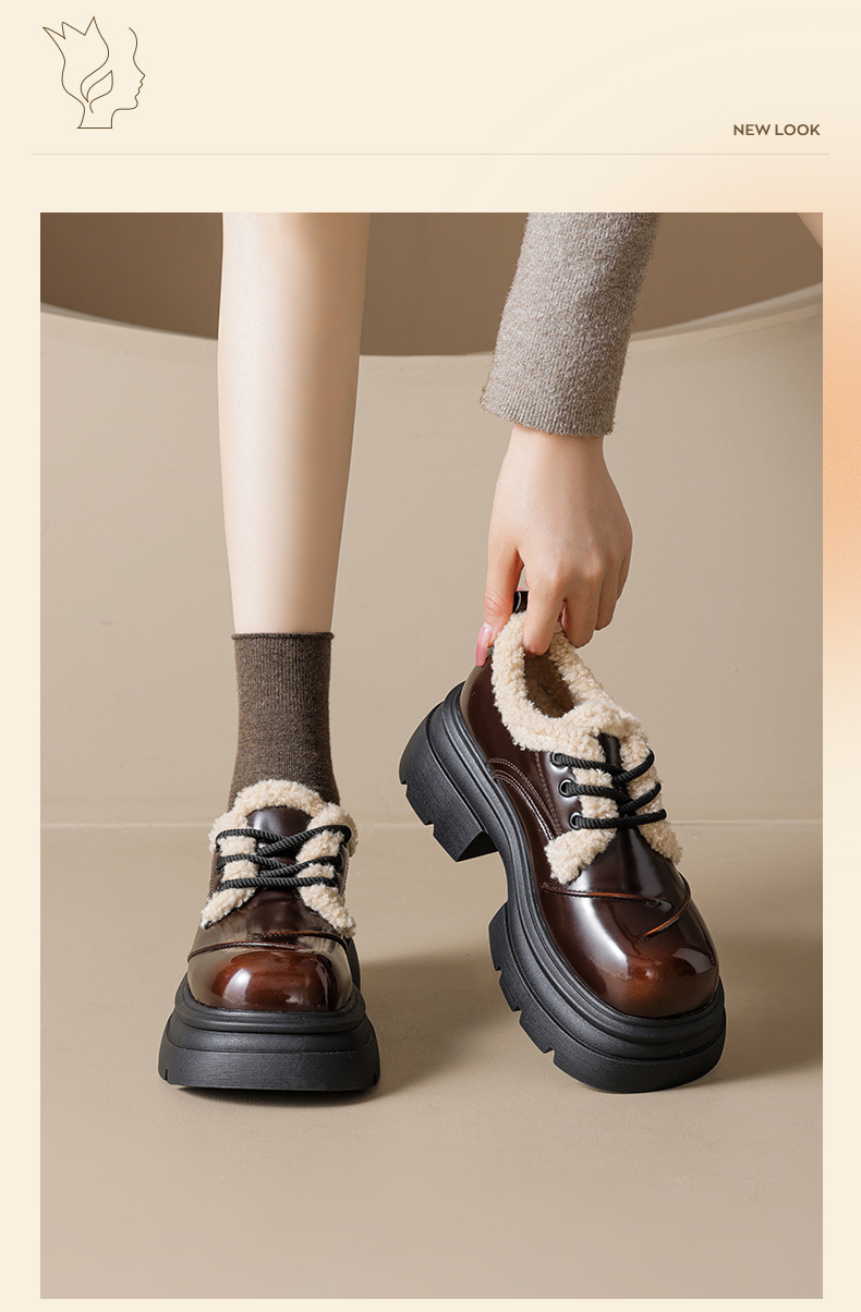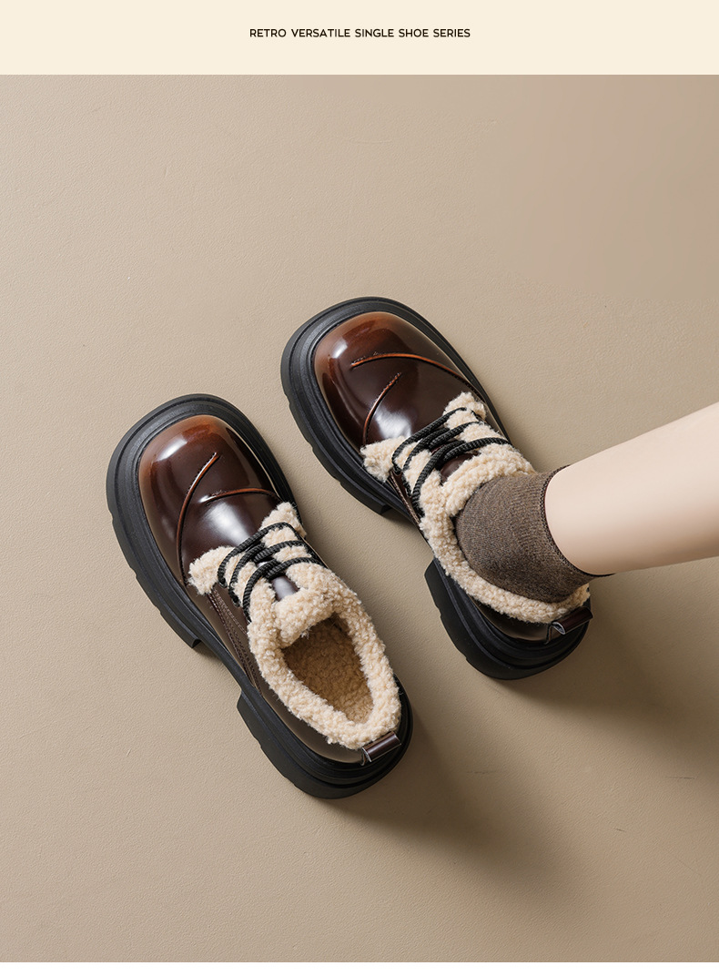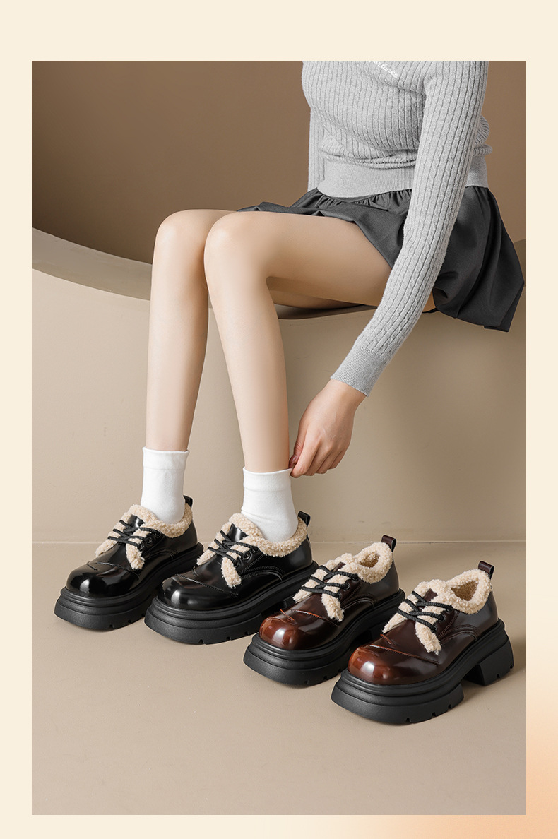 Zapatos de Lefour de Deng Xiaoping 2026 nuevos zapatos de algodón casuales de estilo británico de primavera con suela gruesa