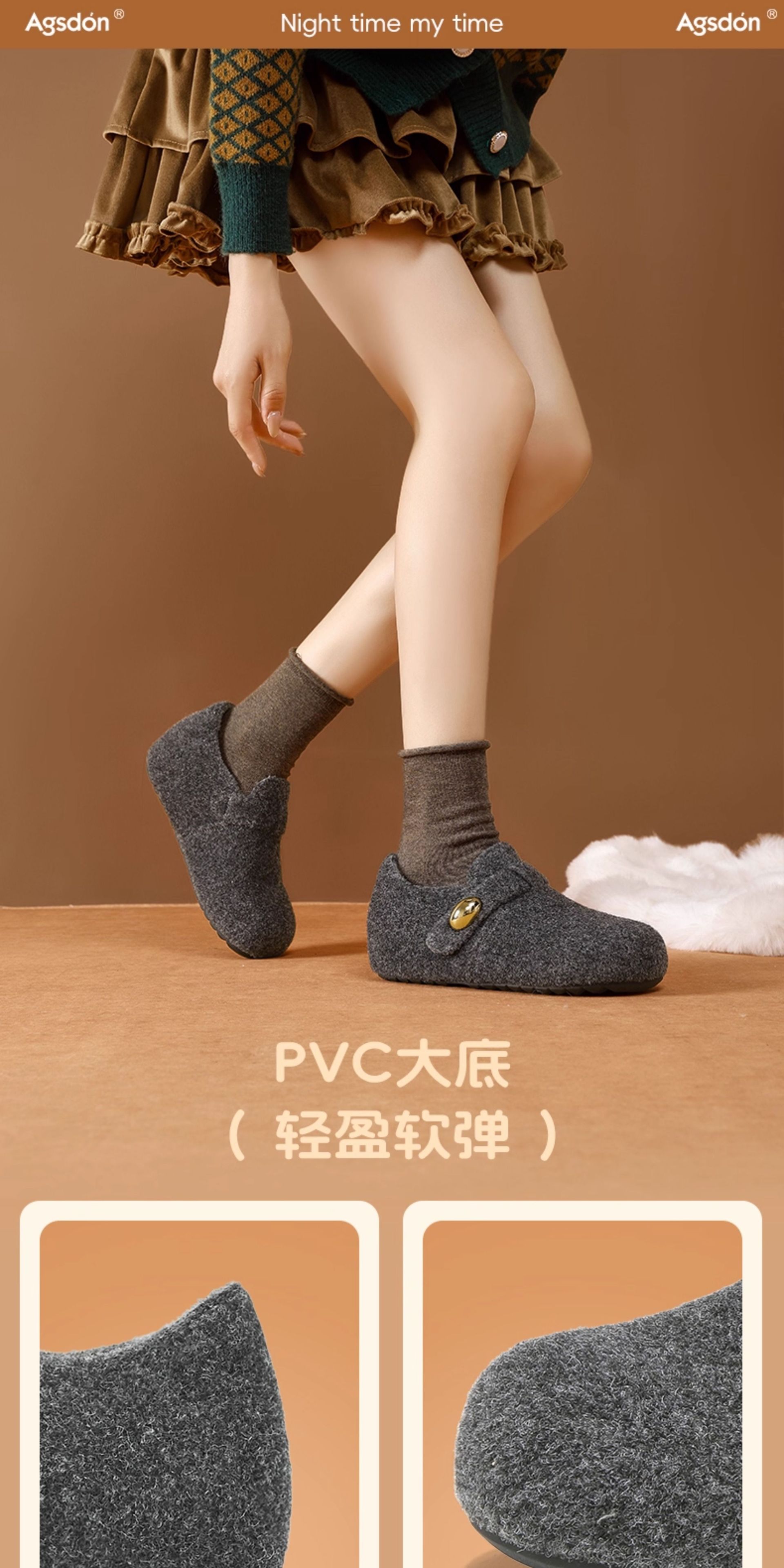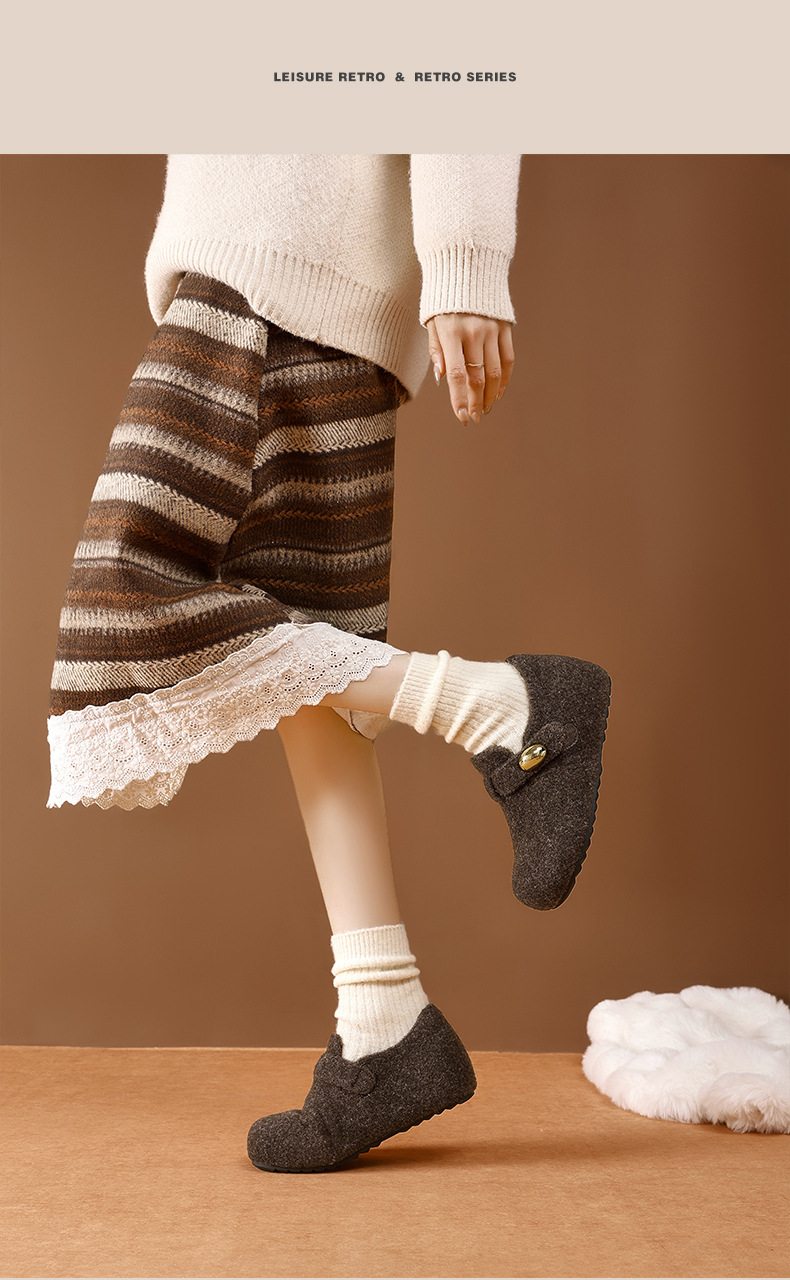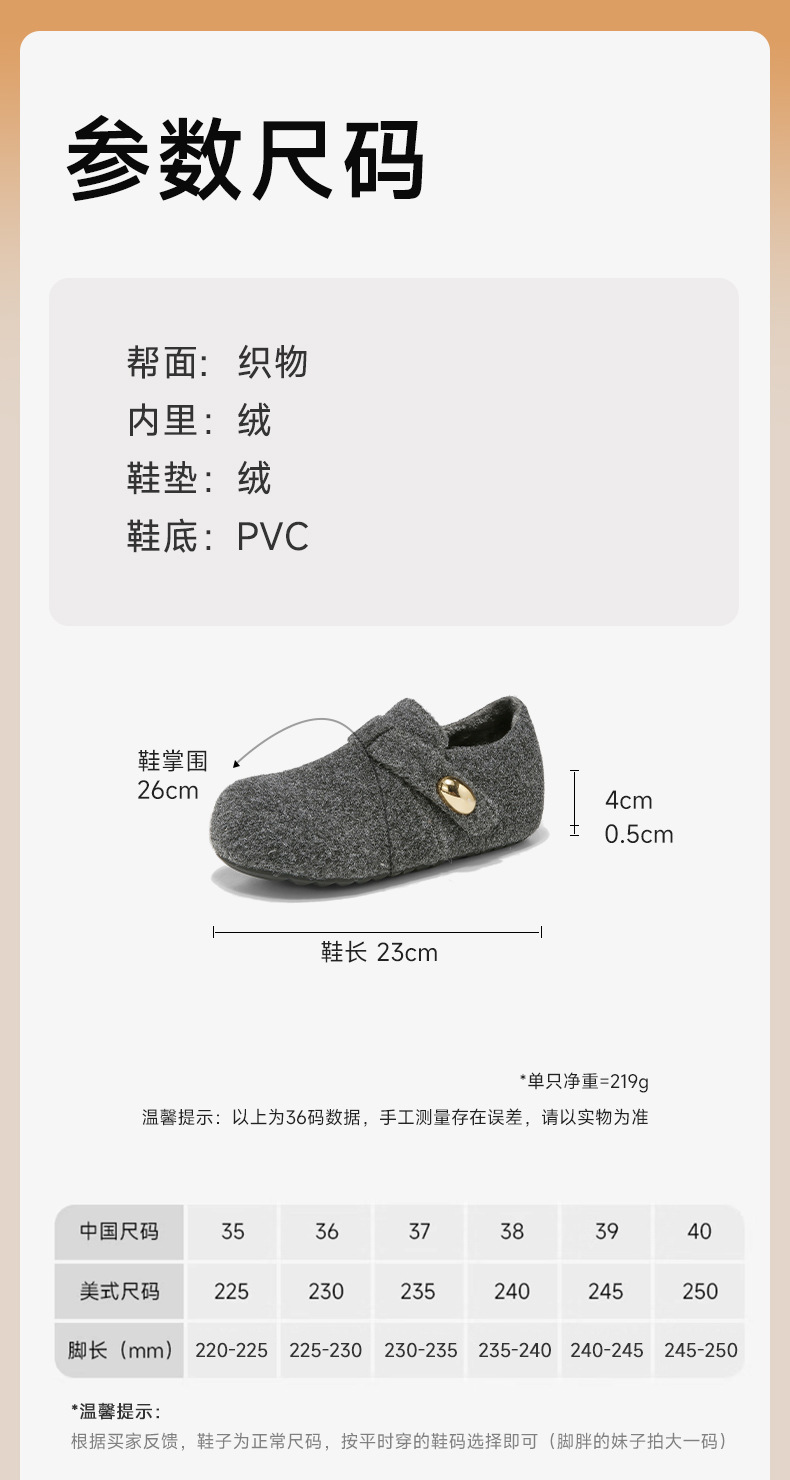Augu Shi Deng gris más veludo Bocken zapatos mujeres 2025 nuevo otoño invierno todo incluido un pedazo de zapatos de algodón de peluche