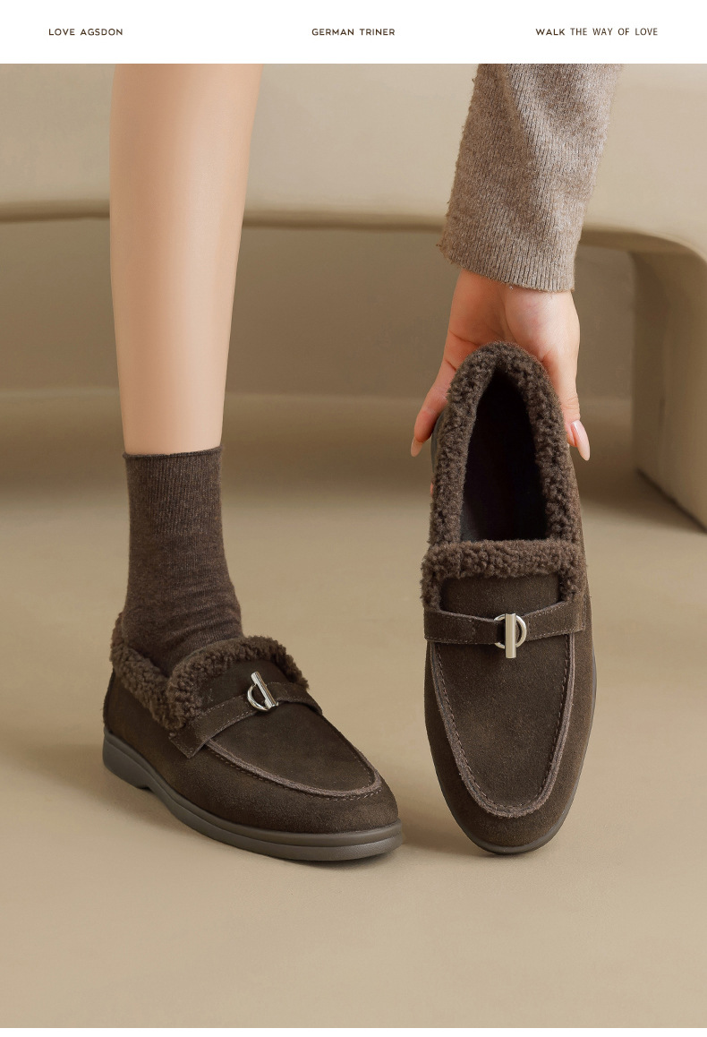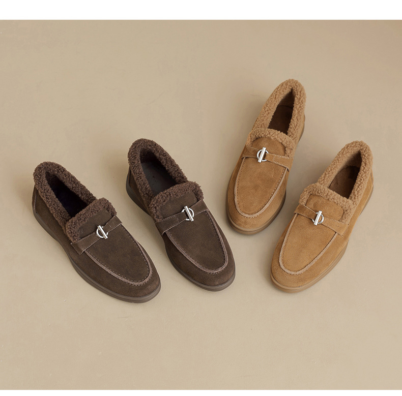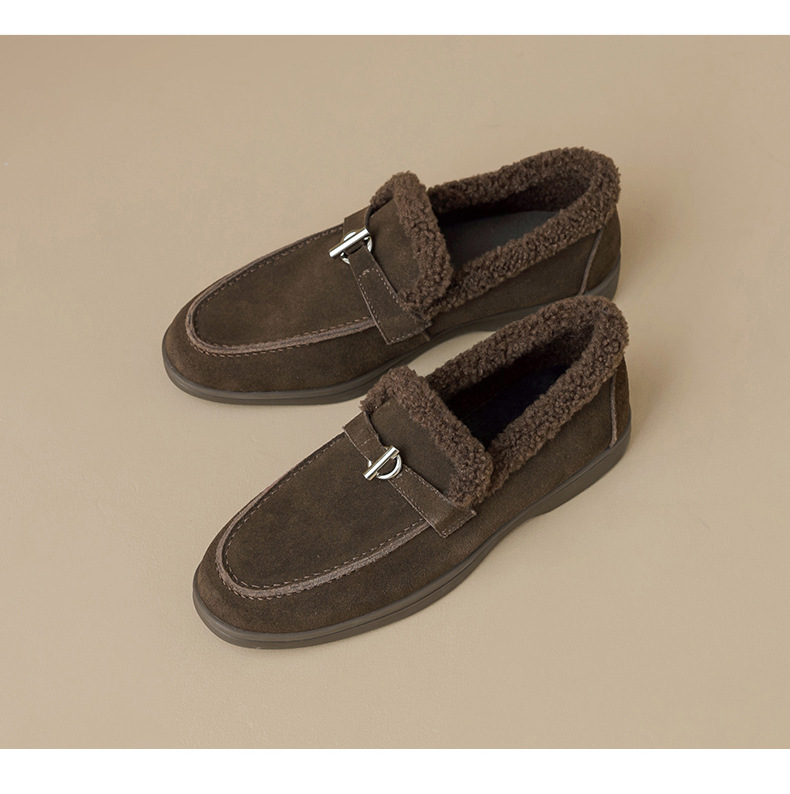 Antiguo Lion Dengjia terciopelo Lefour zapatos para mujeres 2025 nuevo invierno invierno viejo dinero estilo de lana zapatos de un solo pie zapatos de algodón retro