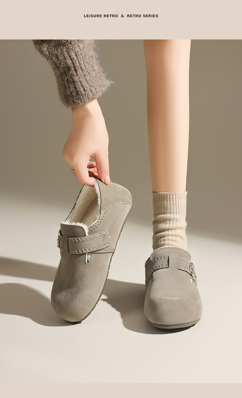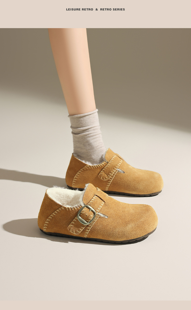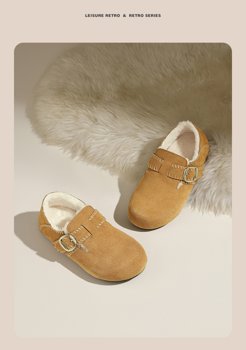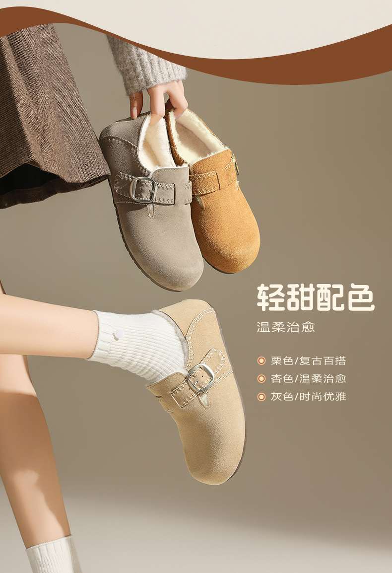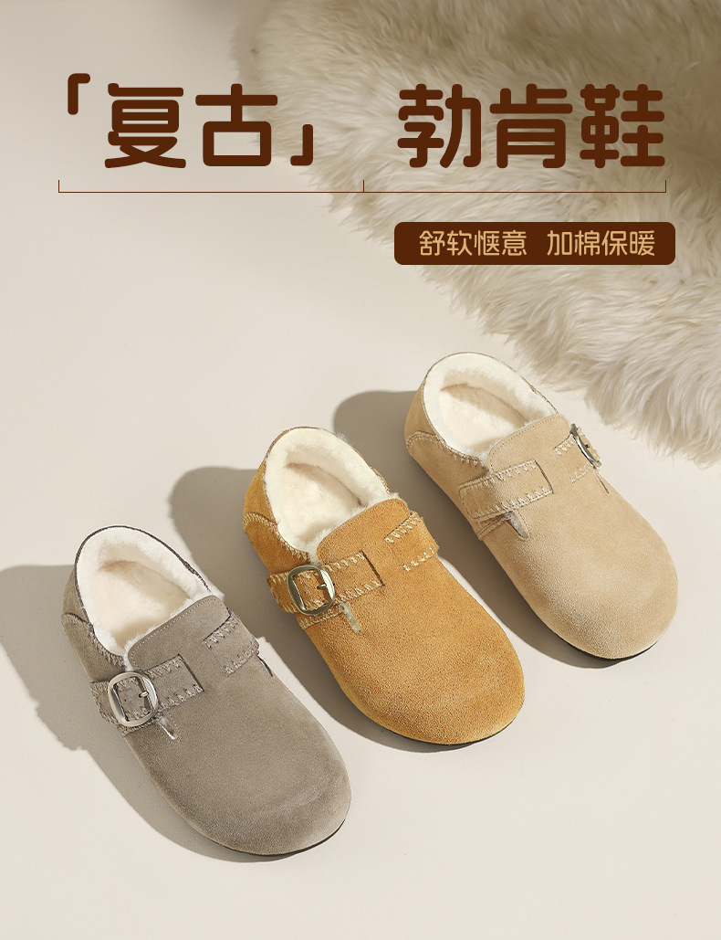 Augu Lion Dengjia veludo Boccan zapatos de mujer 2025 nuevo invierno suela gruesa un pie todo incluido botas de nieve de peluche zapatos de algodón
