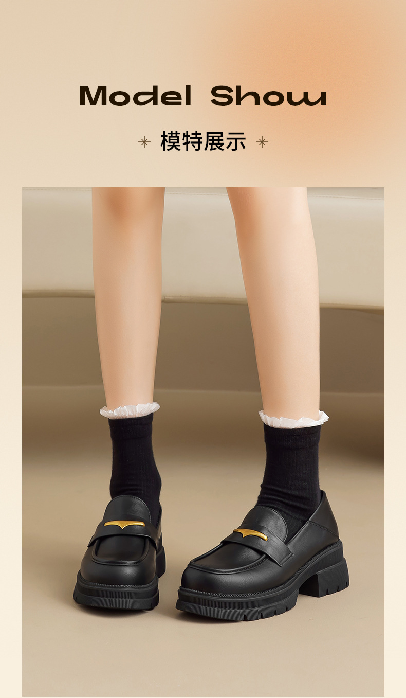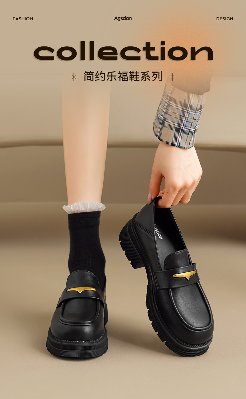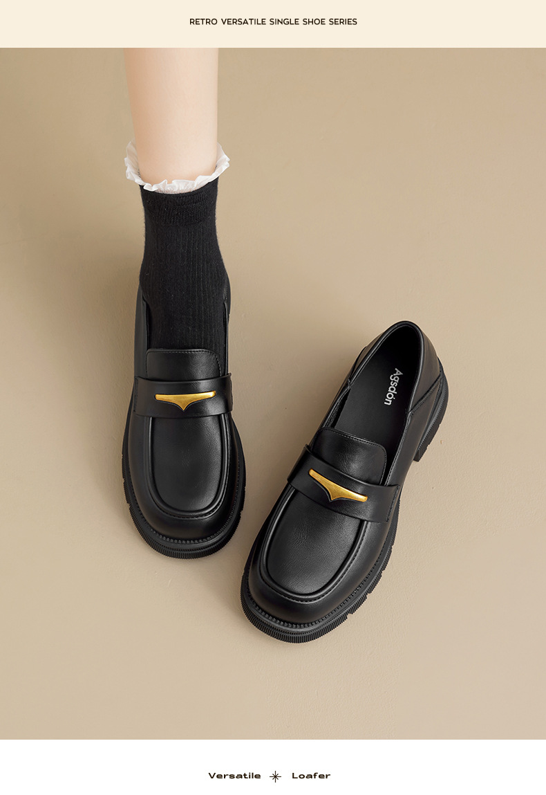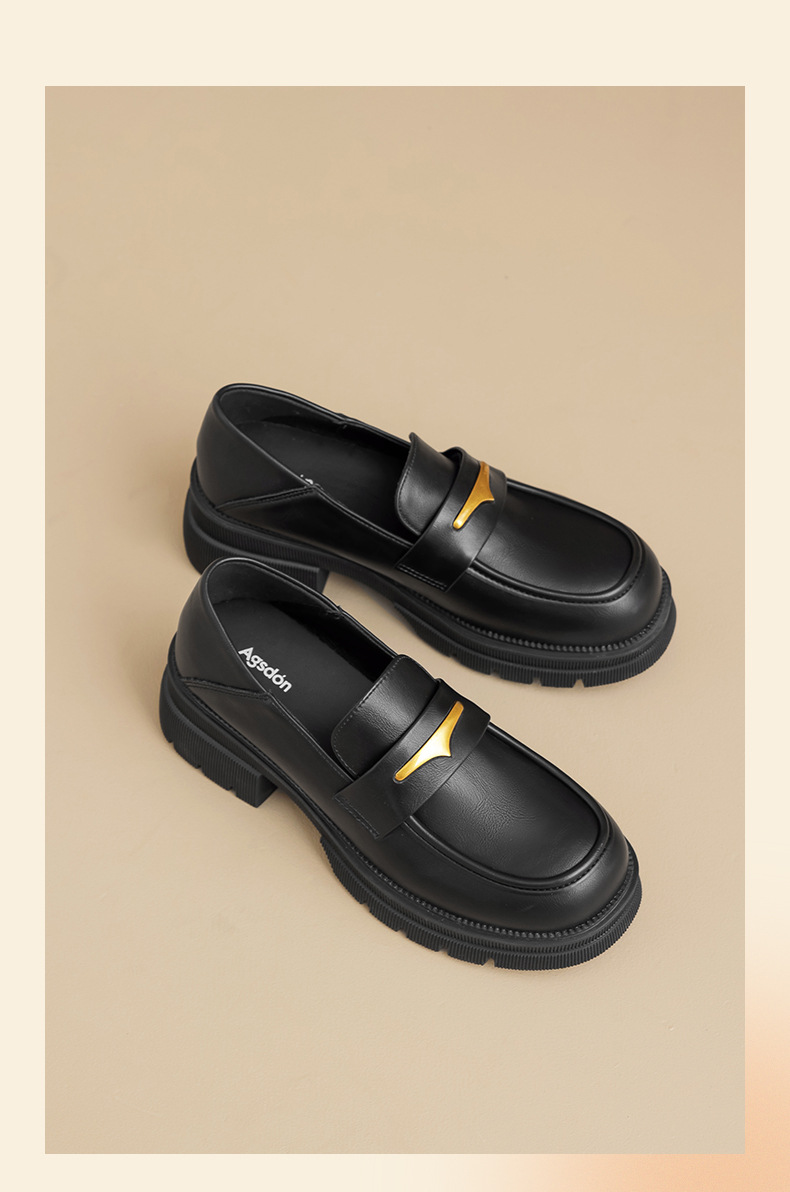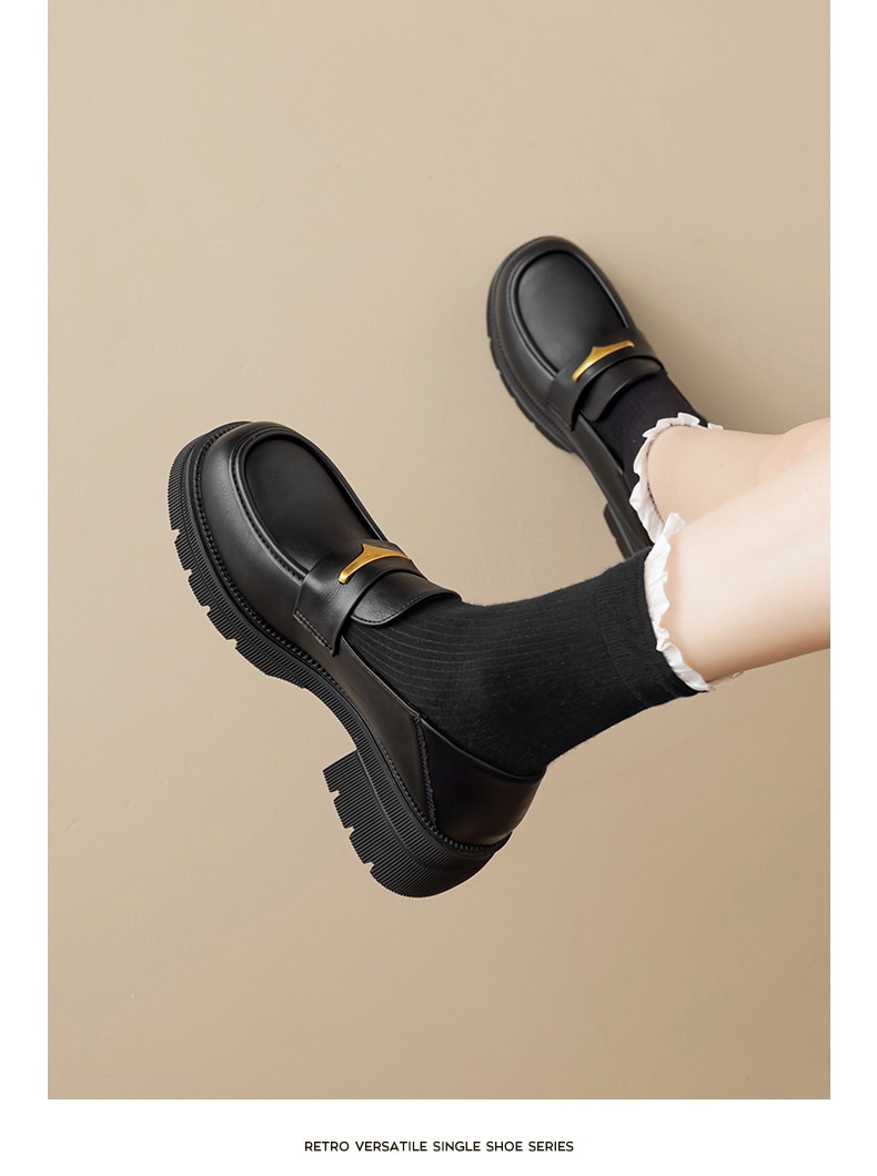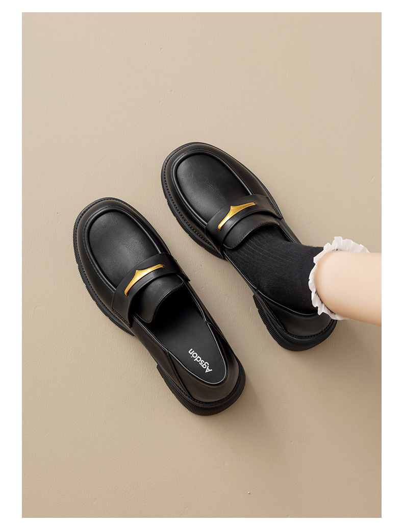 Augu Lion negro clásico zapatos Lefour para mujeres 2025 otoño nuevo tacones gruesos estilo británico zapatos de viaje único