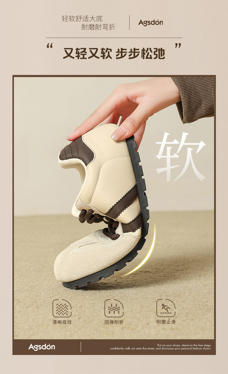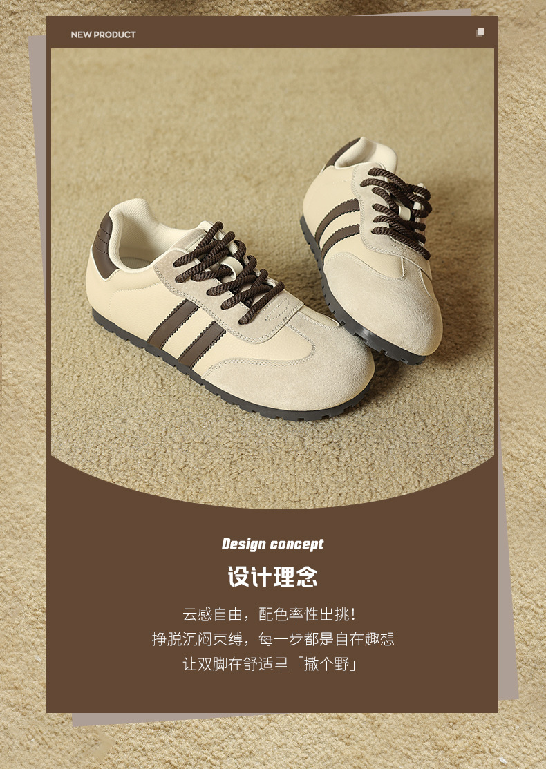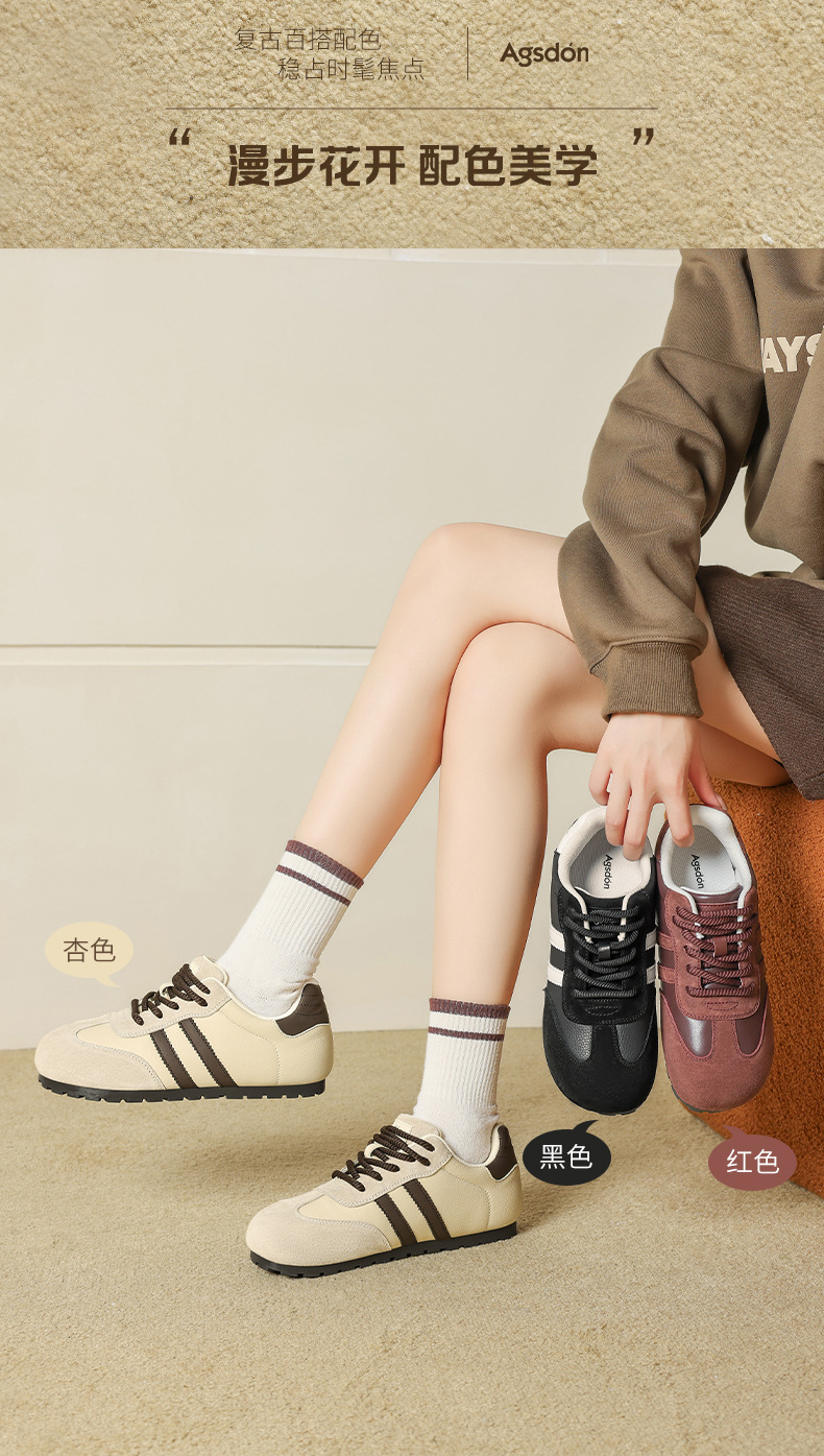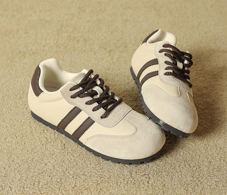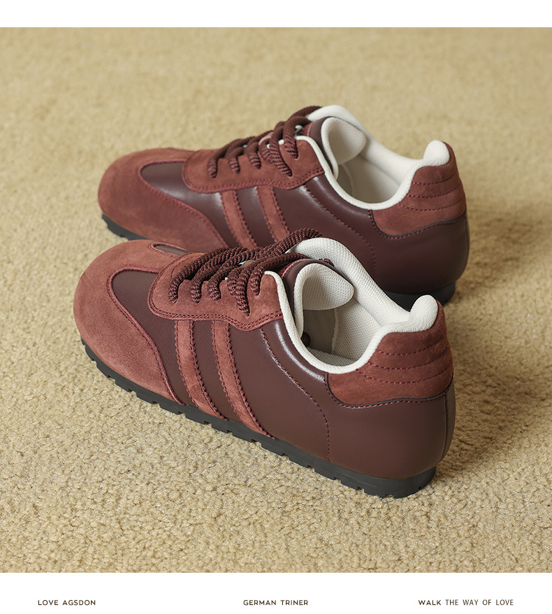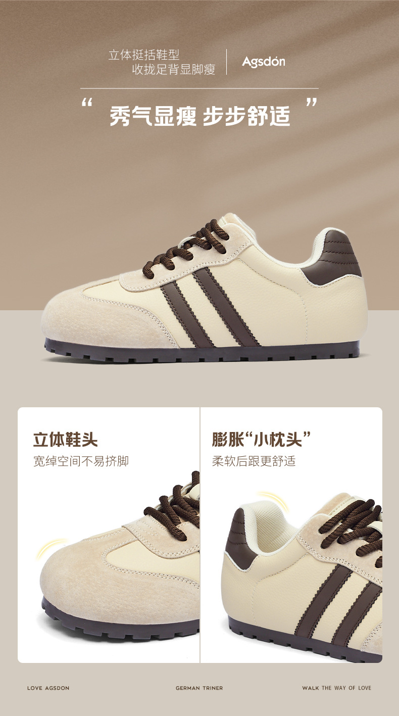Zapatos de entrenamiento alemán de fondo grueso de Augu Shi Deng 2025 otoño nuevos zapatos casuales clásicos delgados zapatos blancos de moda