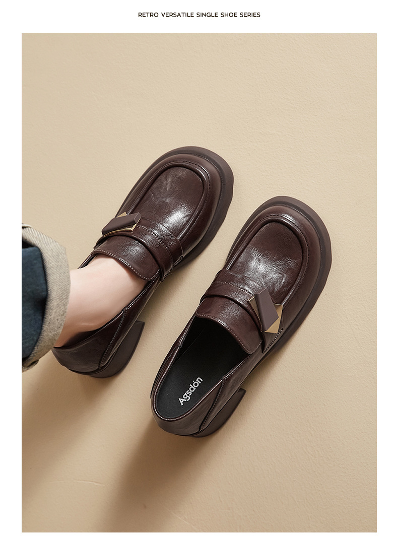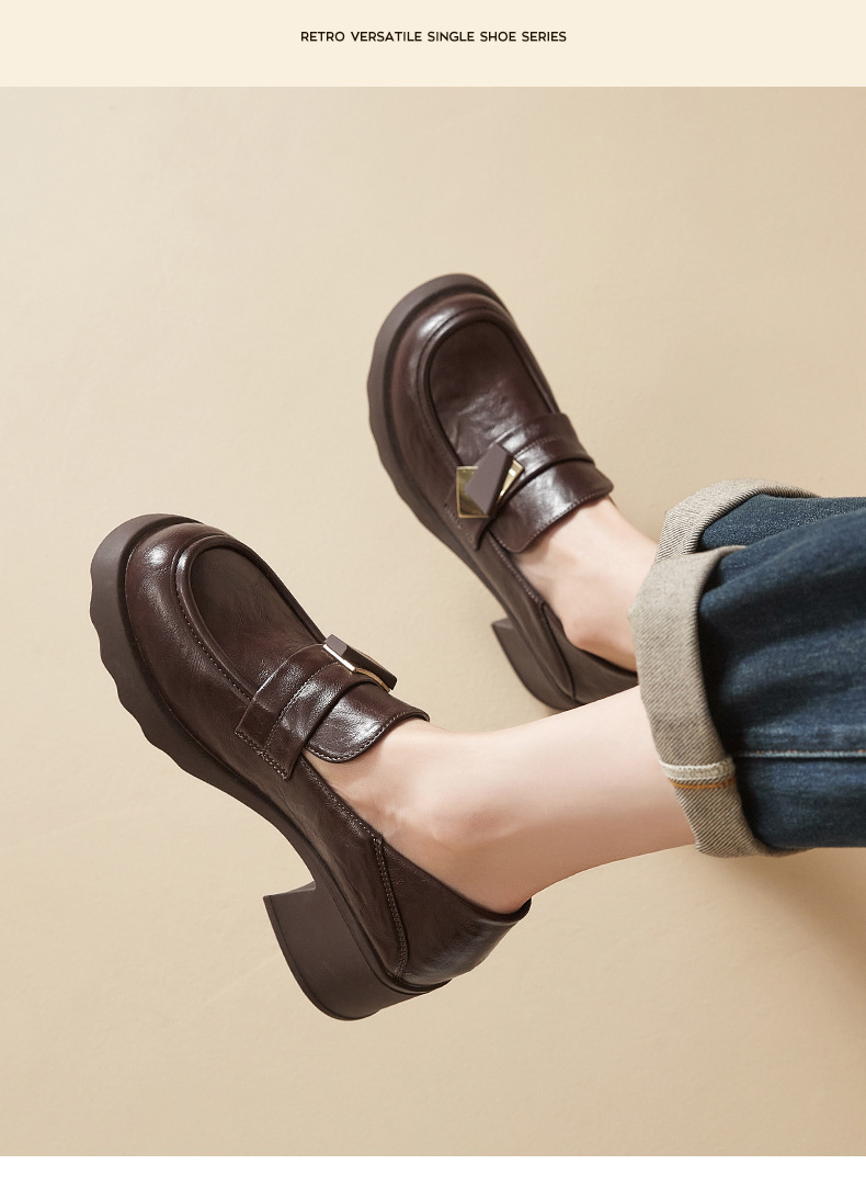 Augusto Lion Denlefour zapatos para mujeres 2025 nuevo otoño invierno estilo británico de viaje zapatos de cuero de tacones gruesos con falda zapatos individuales