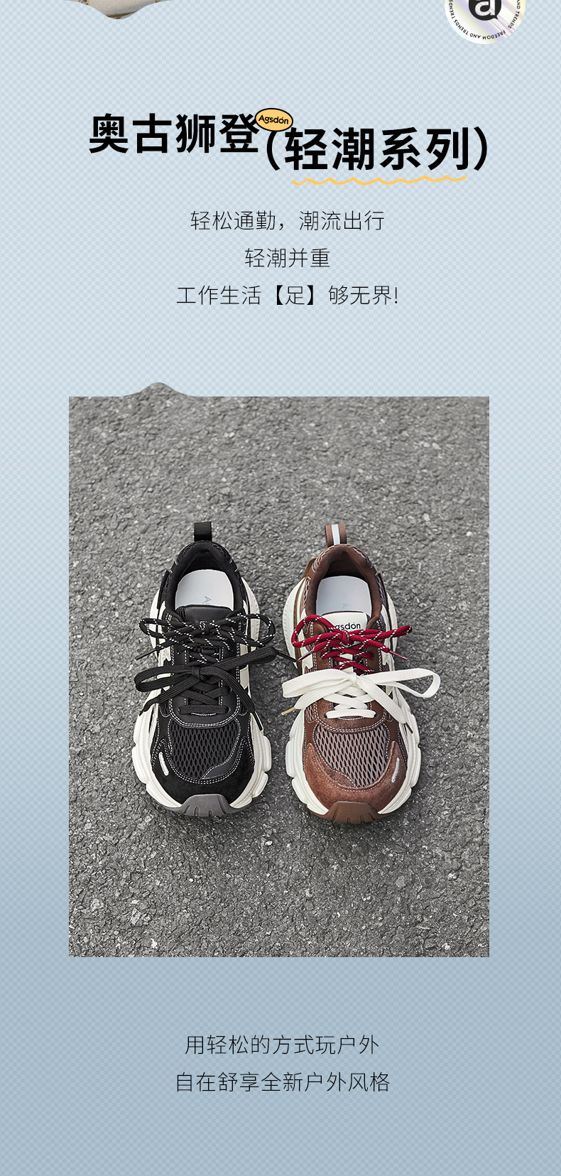 Augu Shi Deng grueso zapato padre y mujer 2025 otoño nuevo zapato de correr ligero al aire libre zapatos de senderismo zapatos deportivos casuales