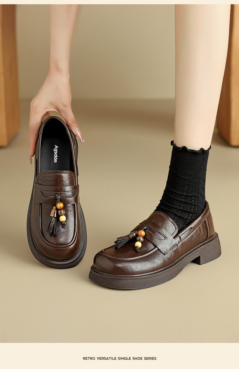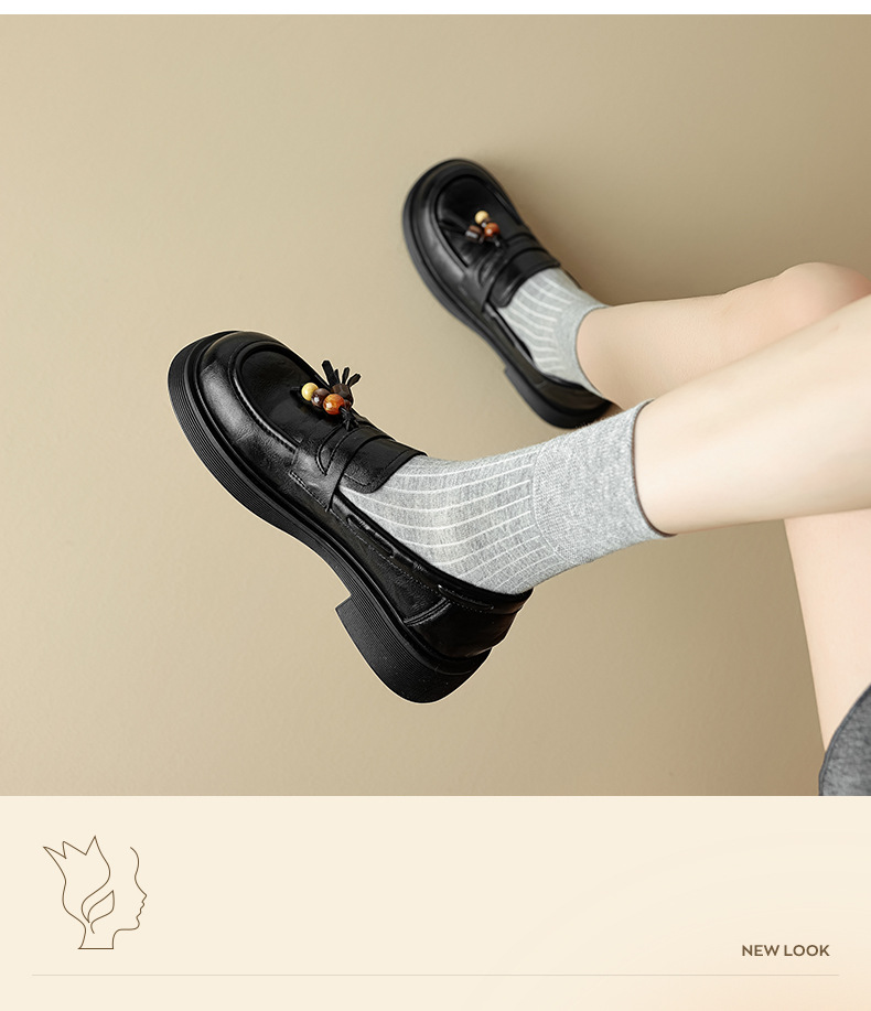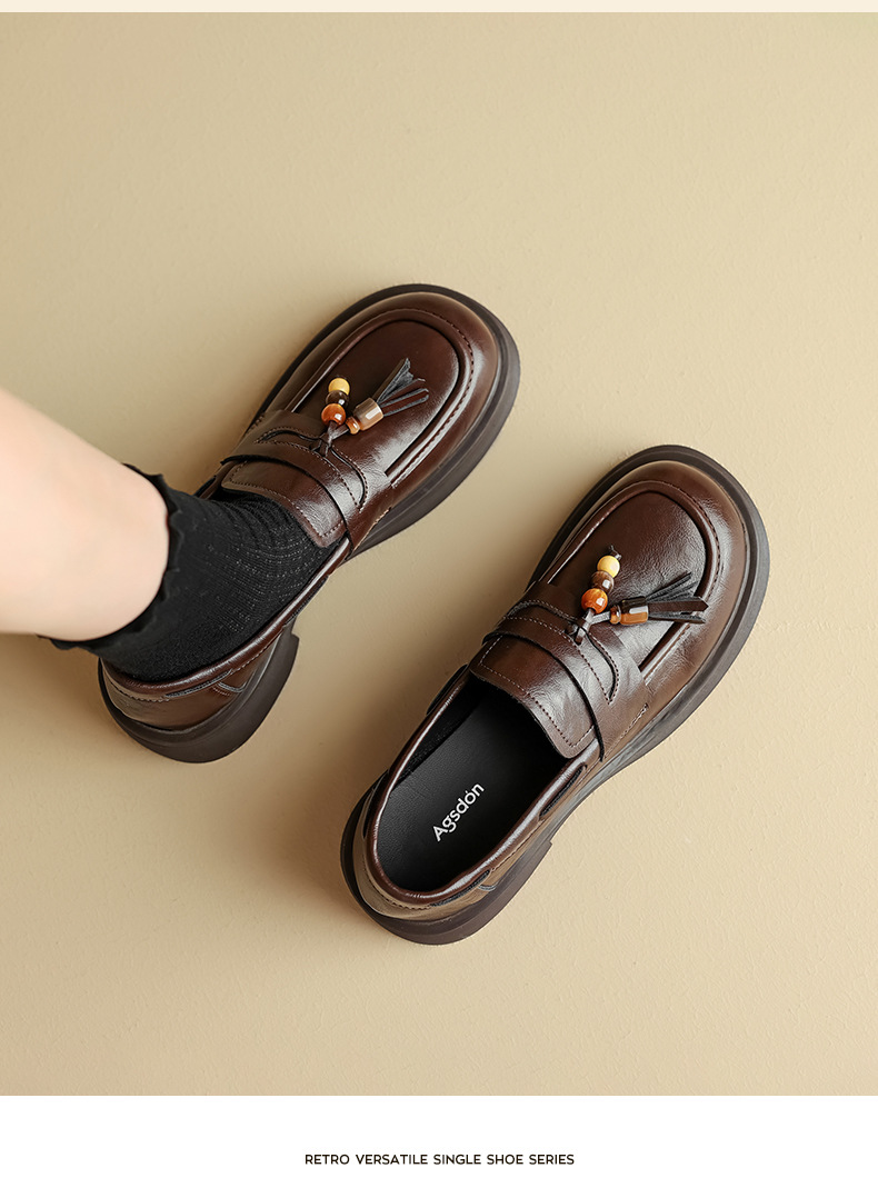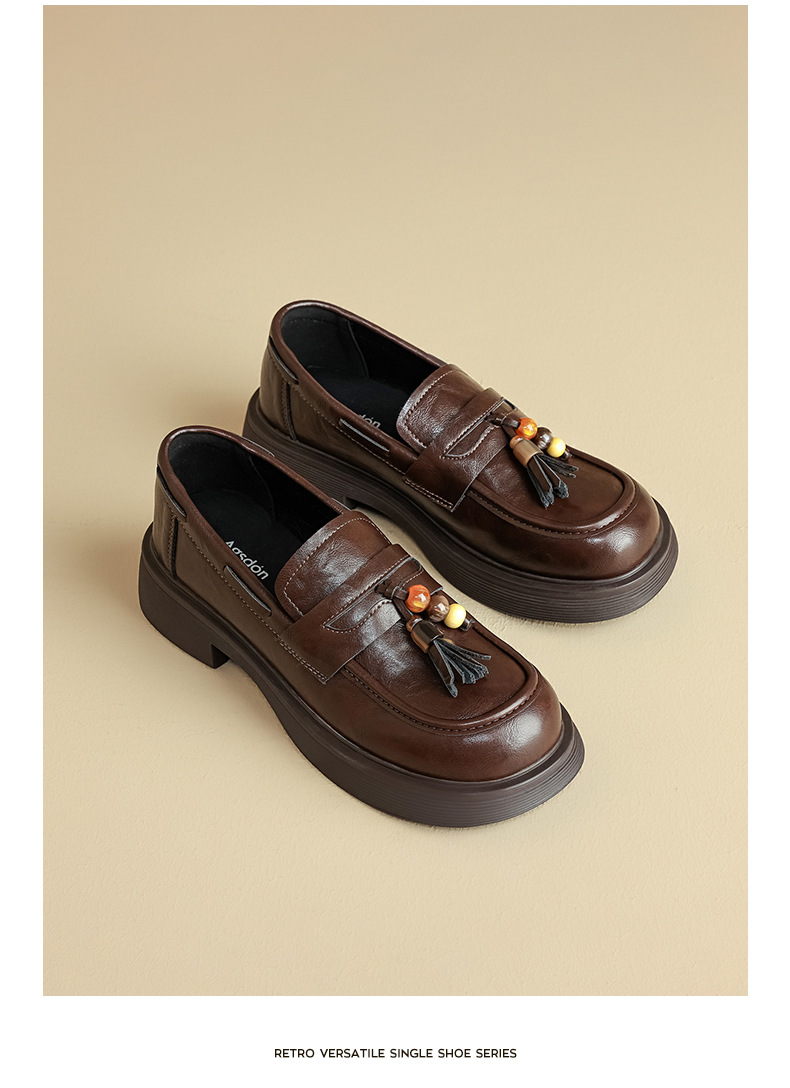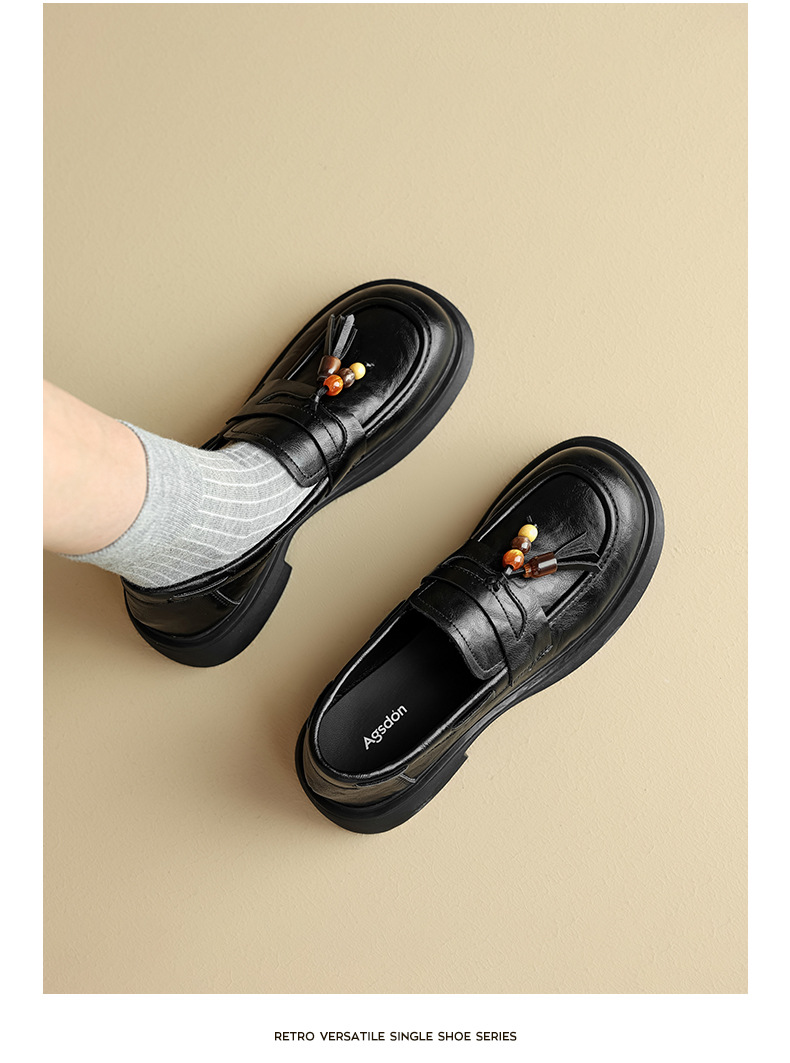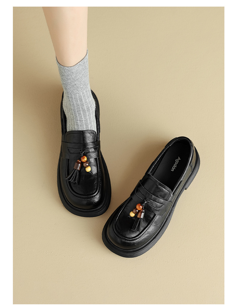 Augu Shi Deng zapatos Lefour de suela gruesa para mujeres 2025 nuevo otoño negro suave zapatos de cuero de estilo británico
