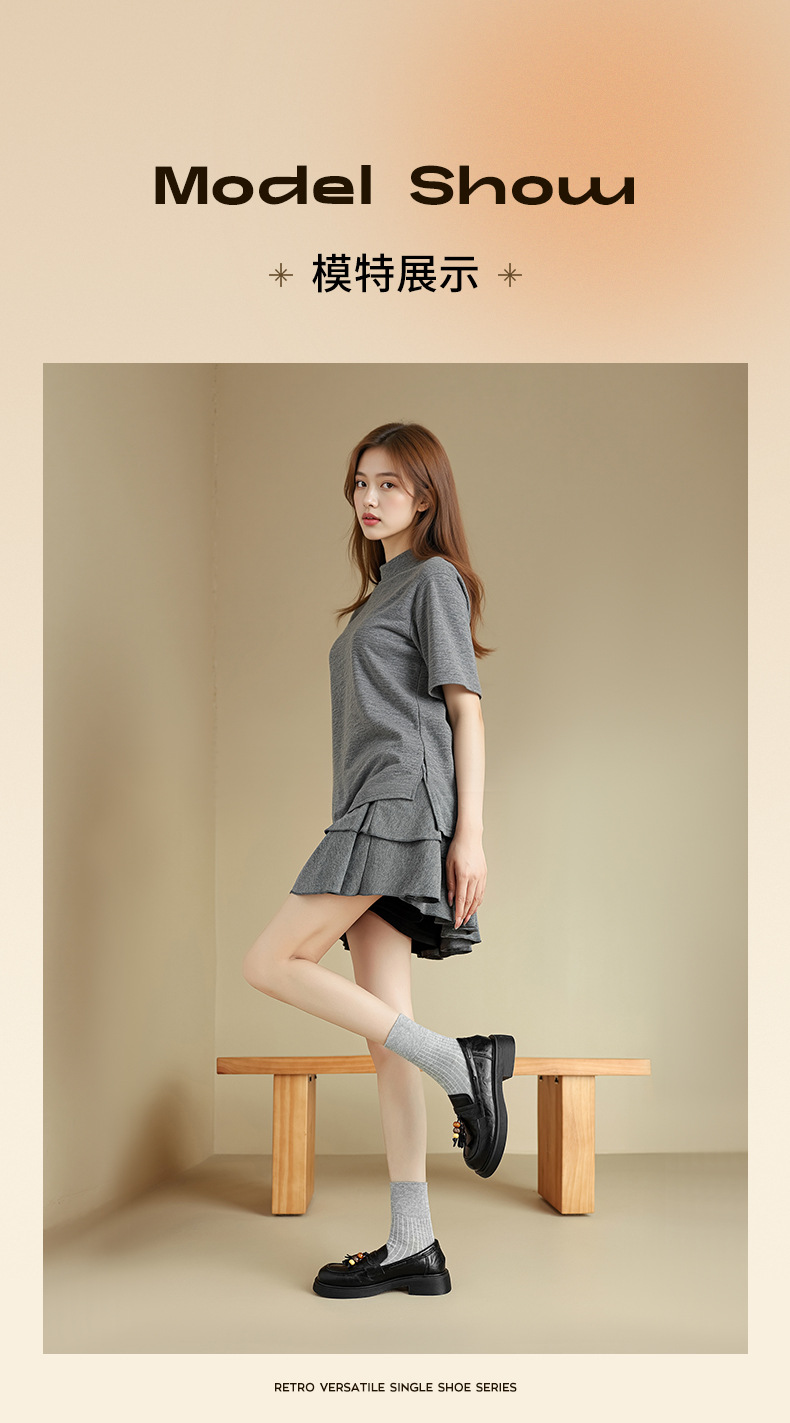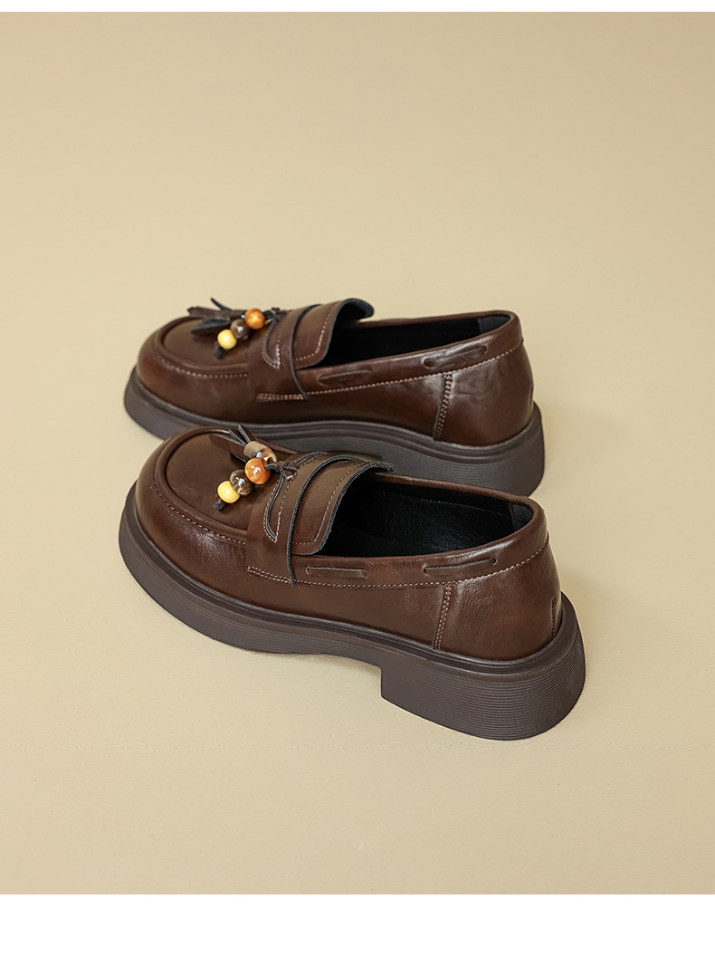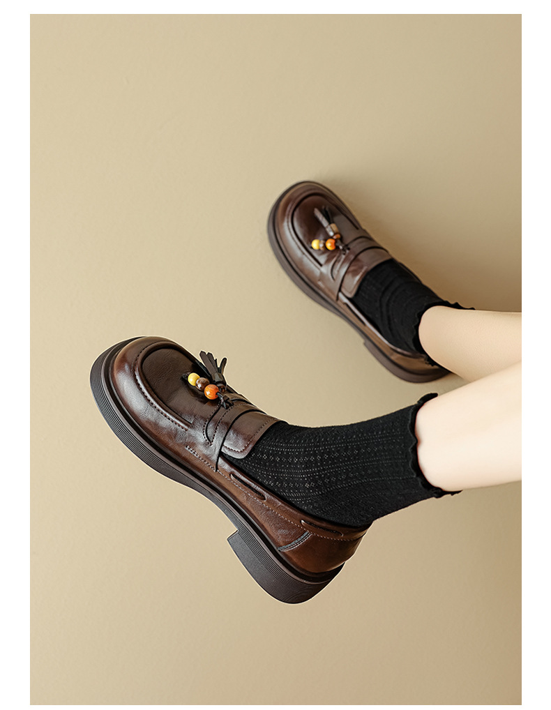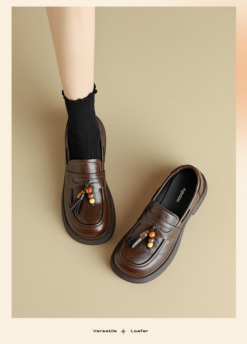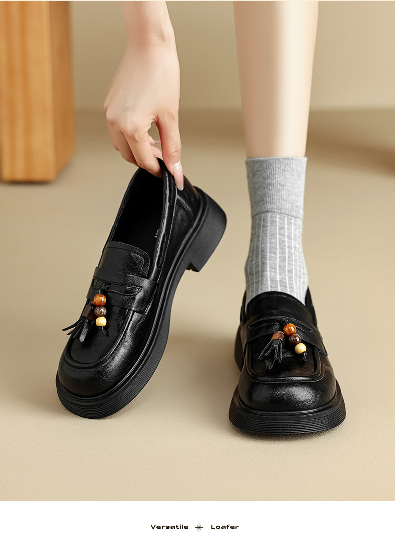 Augu Shi Deng zapatos Lefour de suela gruesa para mujeres 2025 nuevo otoño negro suave zapatos de cuero de estilo británico