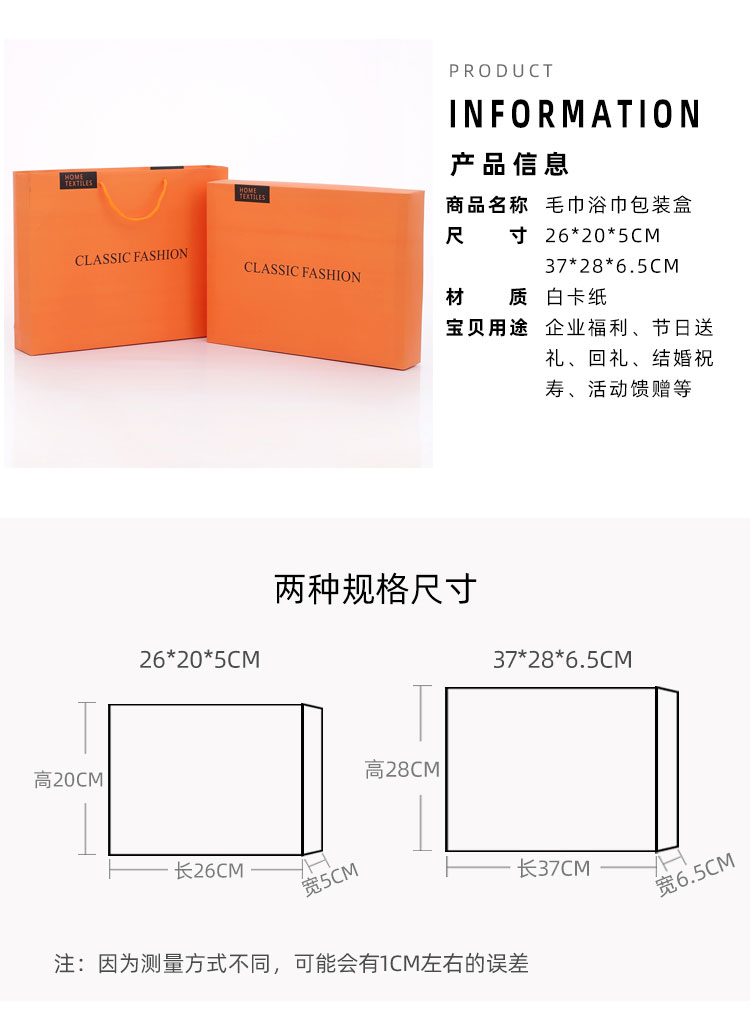Caja vacía de toallas, toallas de baño, caja de regalo de boda, regalo de aniversario, bolsa de regalo, caja de embalaje personalizada 3 artículos