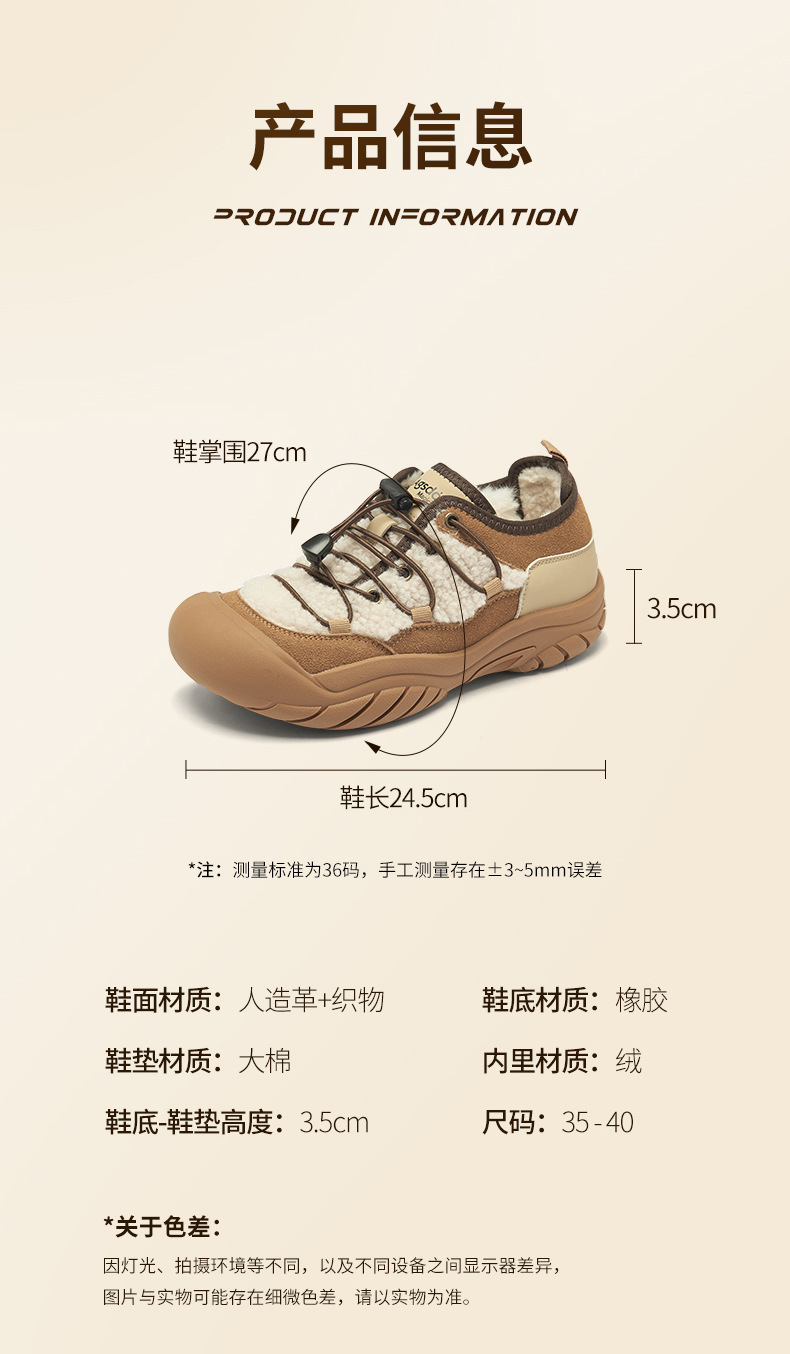 Zapatos de montaña de terciopelo para mujeres 2025 nuevo otoño invierno al aire libre zapatos de montaña de senderismo zapatos de algodón casuales