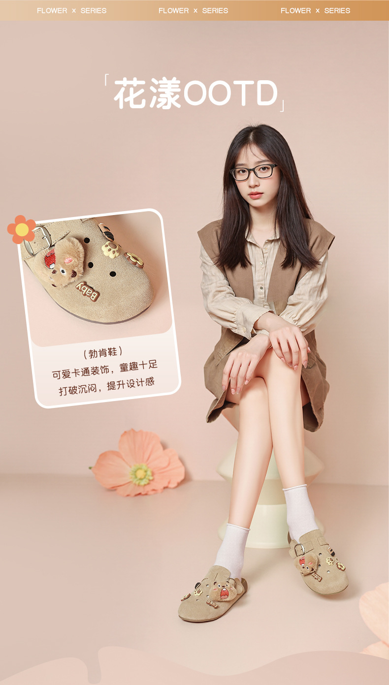 Augu Shi Dengdong Bocken zapatos para mujeres 2026 nuevo estilo de primavera zapatillas de mitad de zapatillas perezosas de un pie zapatillas de moda