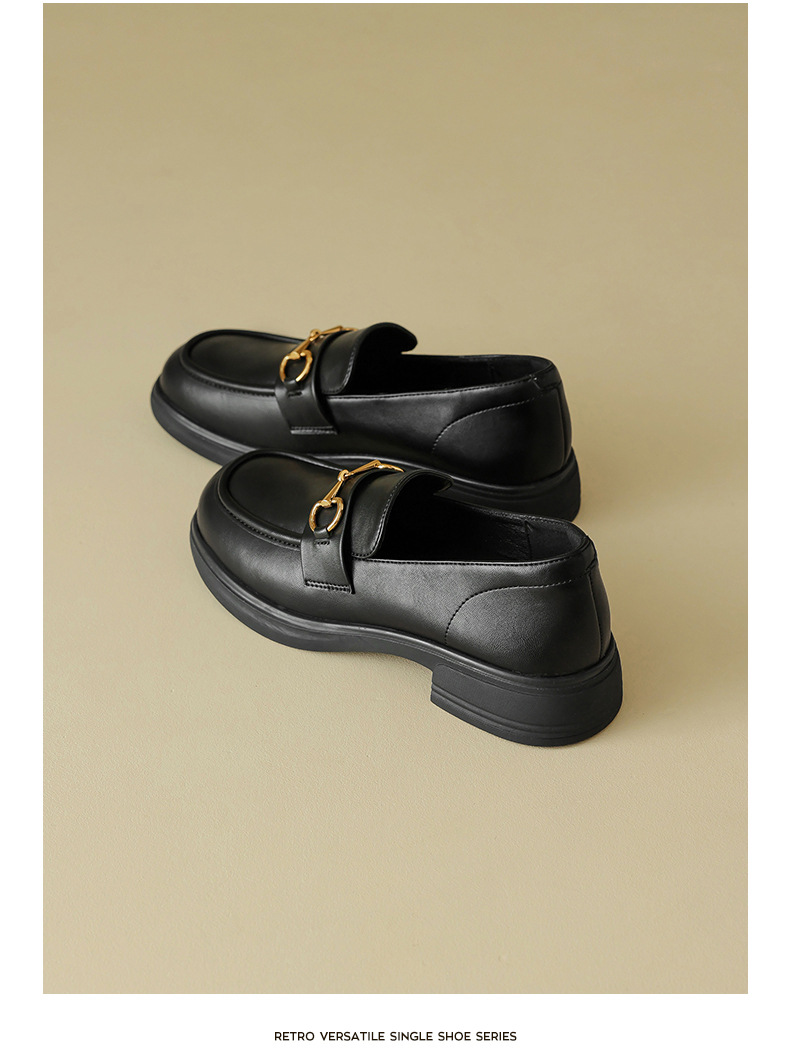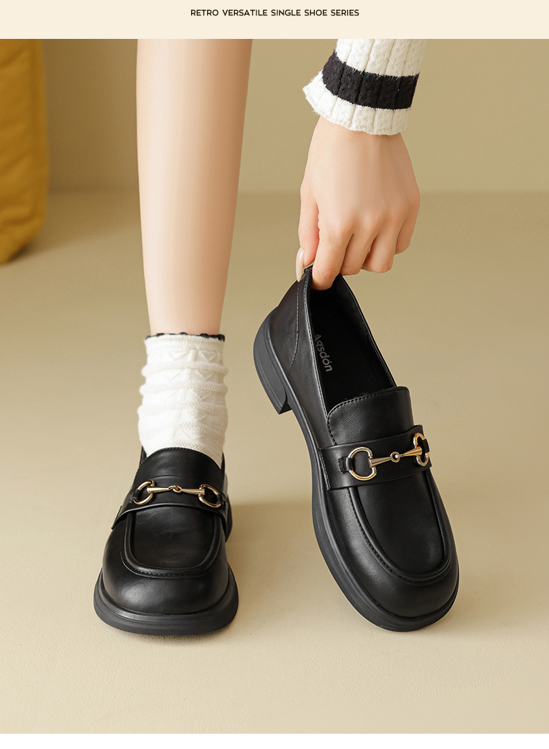 Zapatos Denlefour de otoño para mujeres 2025, nuevos tacones gruesos, zapatos de cuero negros de estilo británico, zapatos de sola suave para viajar