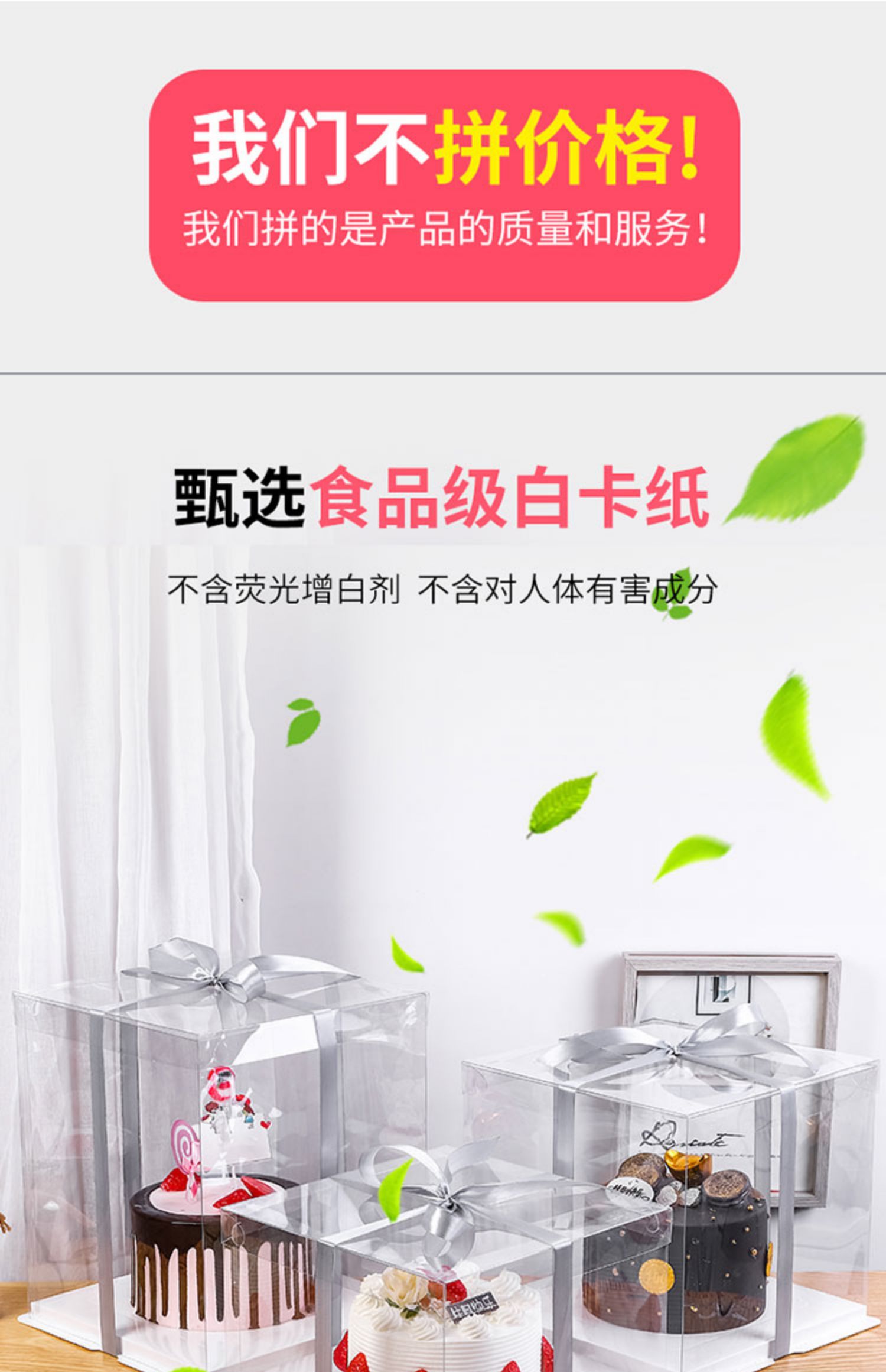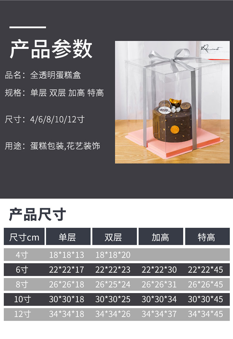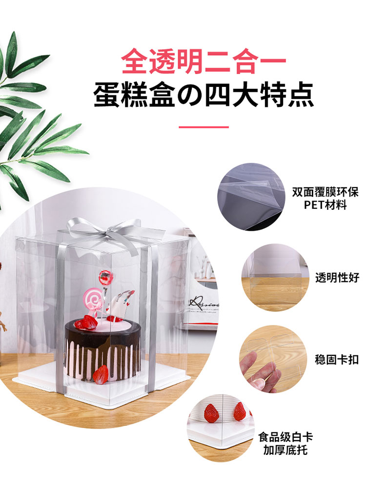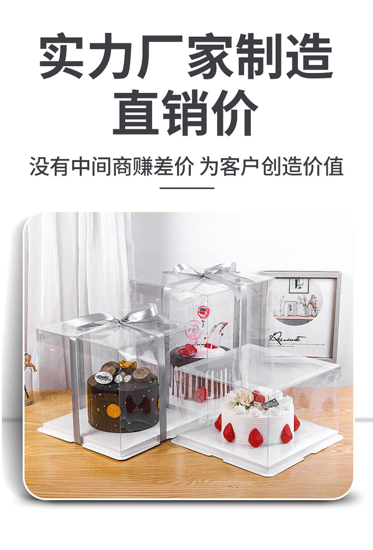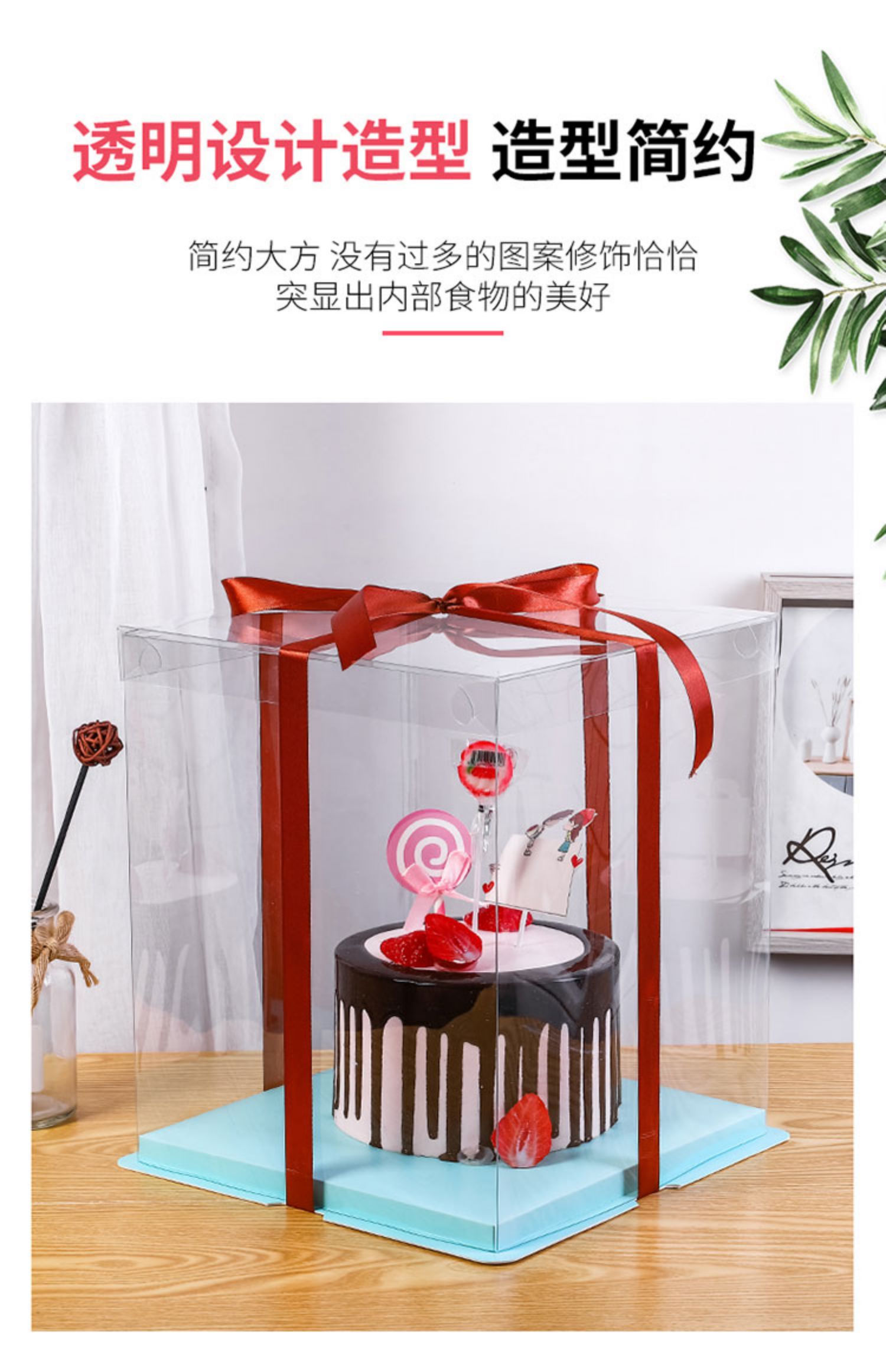Caja de embalaje de pastel de cumpleaños transparente 4 pulgadas 6 pulgadas 8 pulgadas 10 pulgadas 12 pulgadas caja de embalaje de pastel cuadrado de doble capa