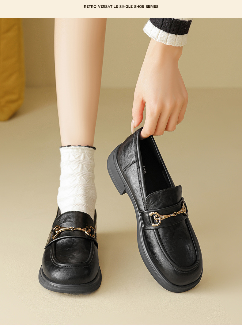 Zapatos de Lefour para mujeres 2025 nuevos zapatos de verano negros de estilo británico zapatos de cuero JK de un solo pie