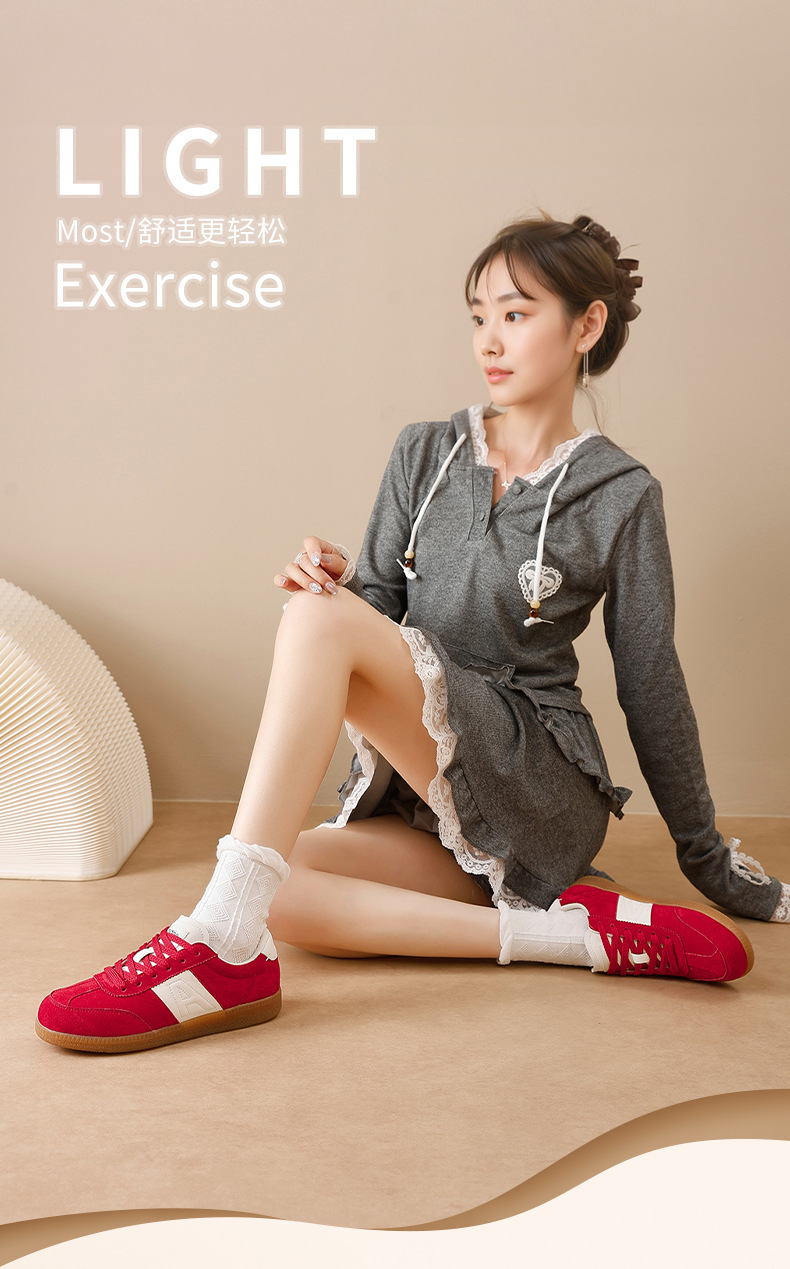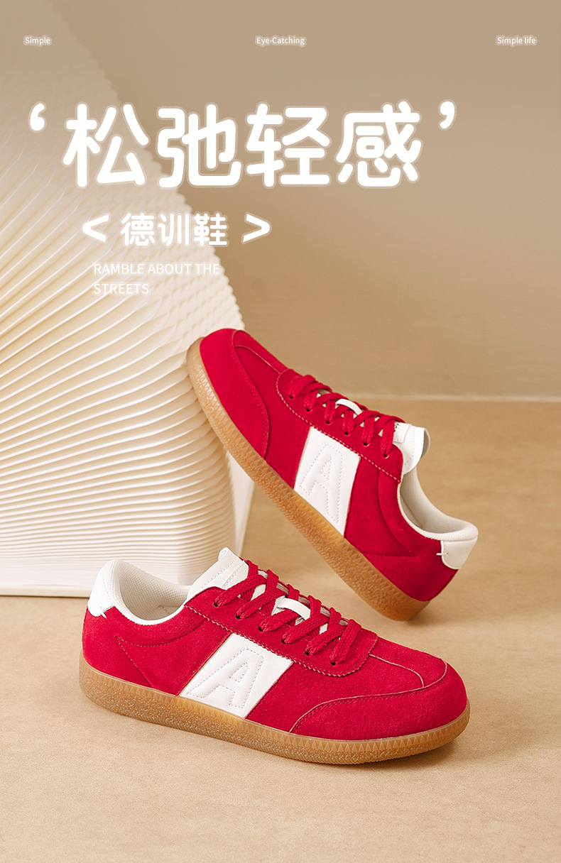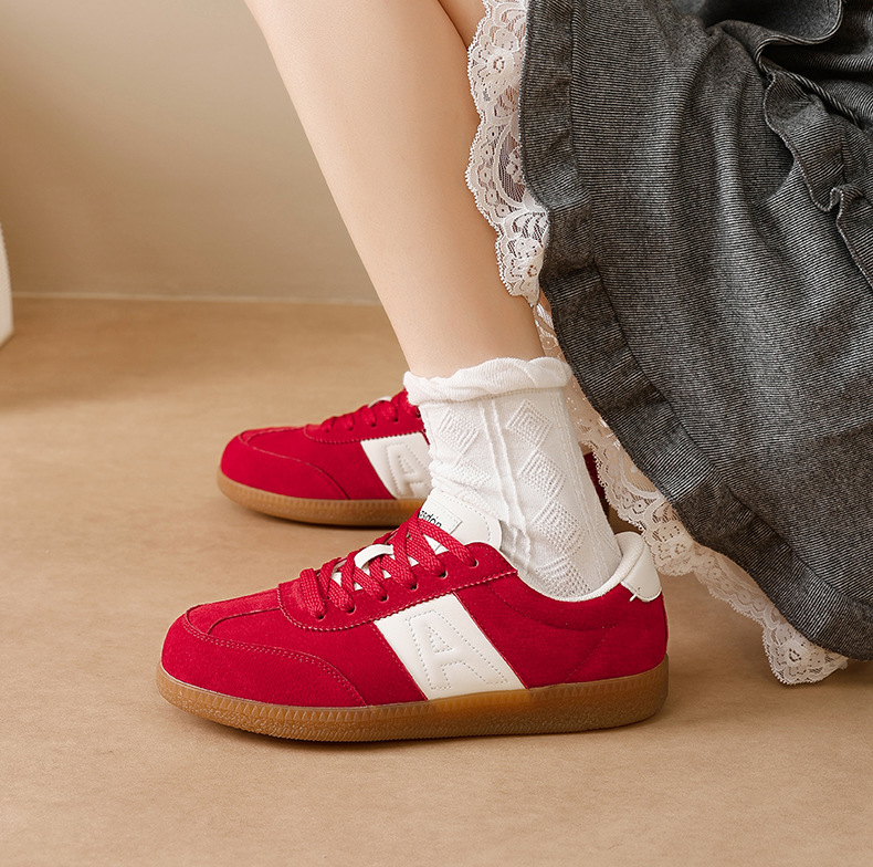 Augustion Red Alemania Training Shoes Mujer 2025 Nuevo verano Esfera gruesa Suela plana Forrest Zapatos de mujer Zapatillas deportivas retro