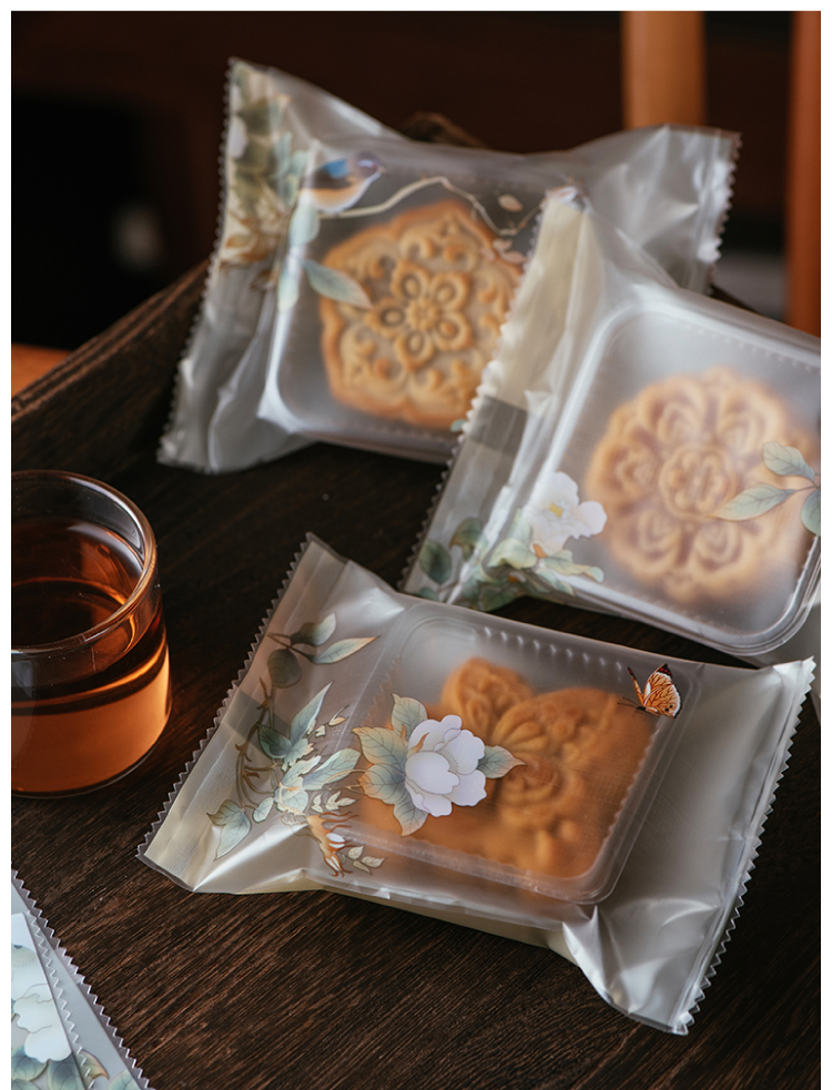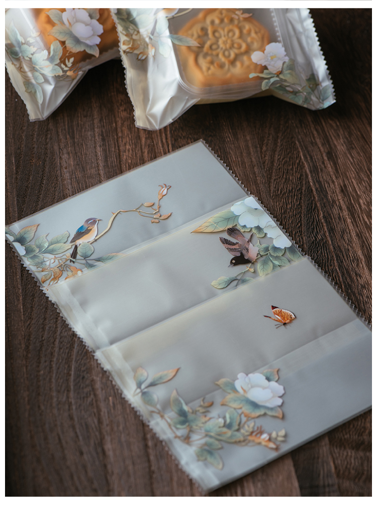 Engrosado 2024 estilo nacional de flores y pájaros nuevo paquete de pastel de luna 50g 75g de cáscara de huevo helado bolsa de sello