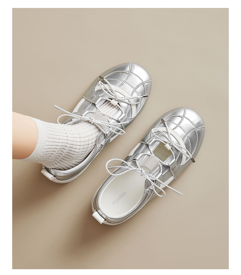 Augustion Sports Mary Jane Shoes Mujer 2025 Nuevo verano Silver Ballet alemán Sandalias Zapatos casuales suaves