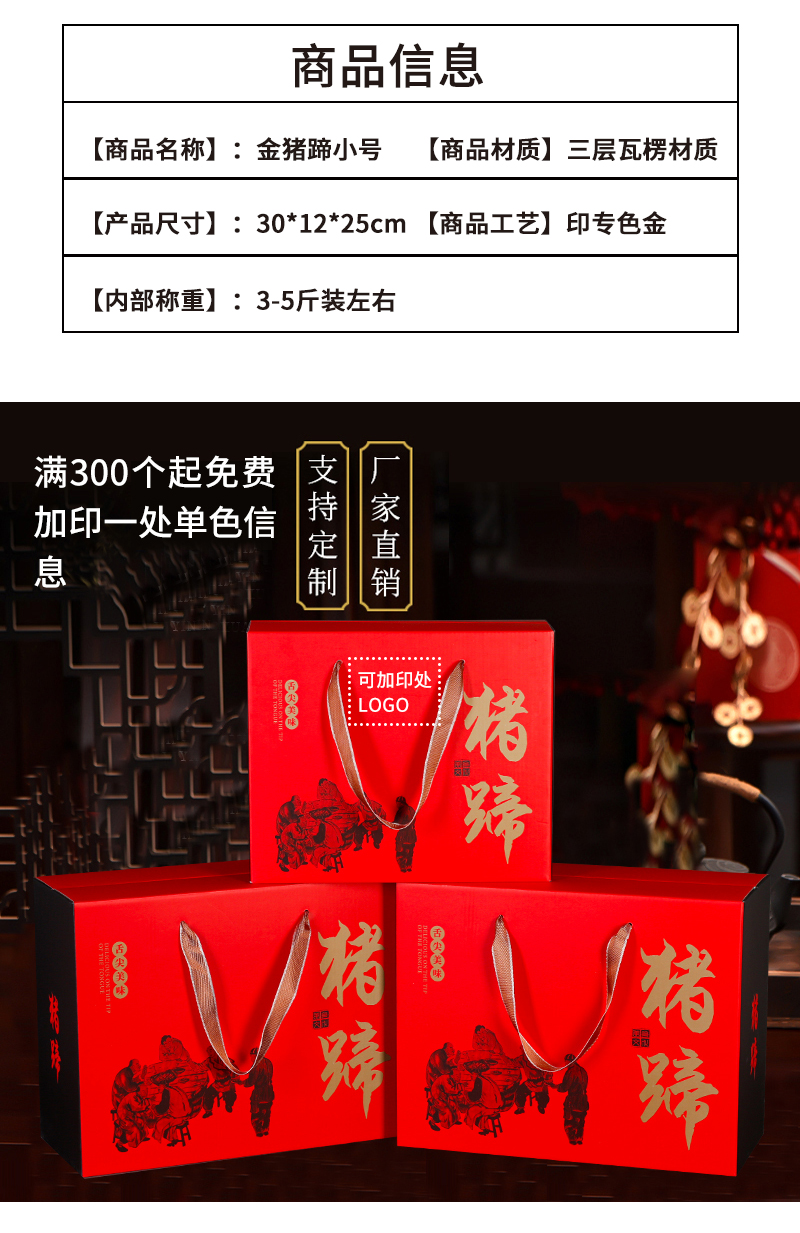 Caja de regalo de casco de cerdo general, caja de embalaje de carne de cerdo salsa de cara de cerdo, caja de regalo vacía, stock fijo