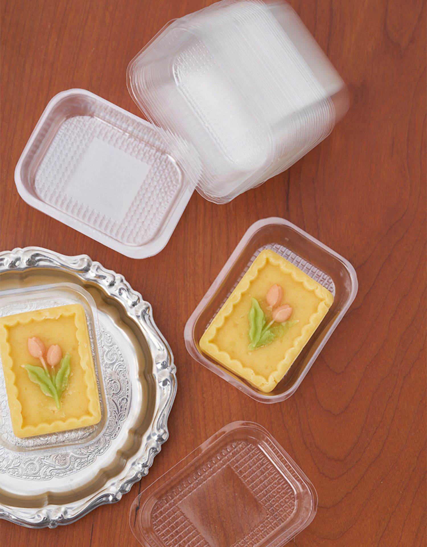pastel de frijoles verdes transparentes soporte de plástico piña pastel de pastel galletas pasteles de nieve pasteles de embalaje soporte de plástico