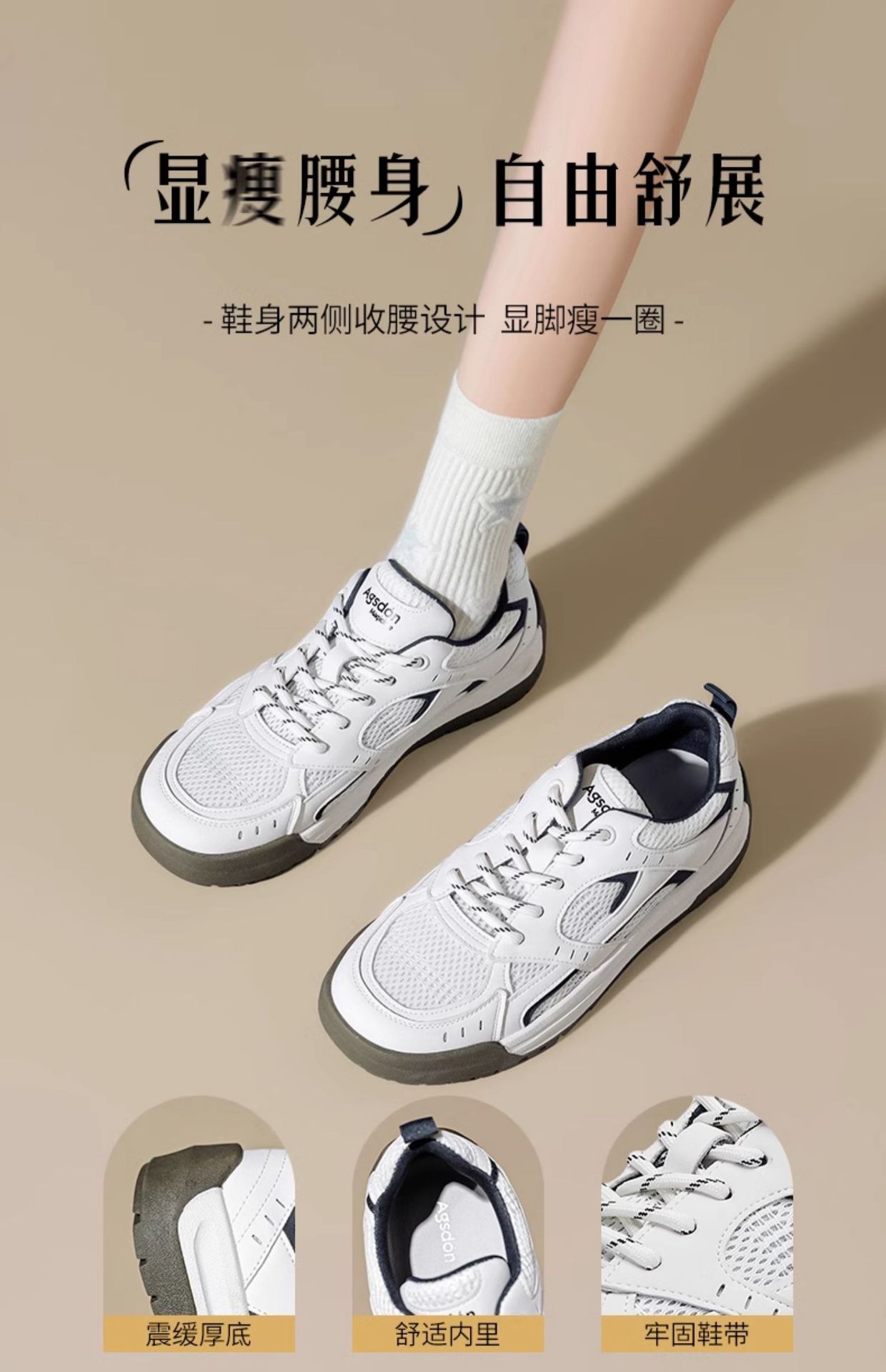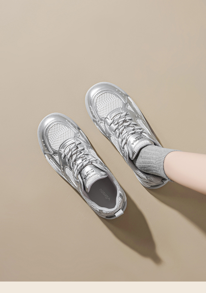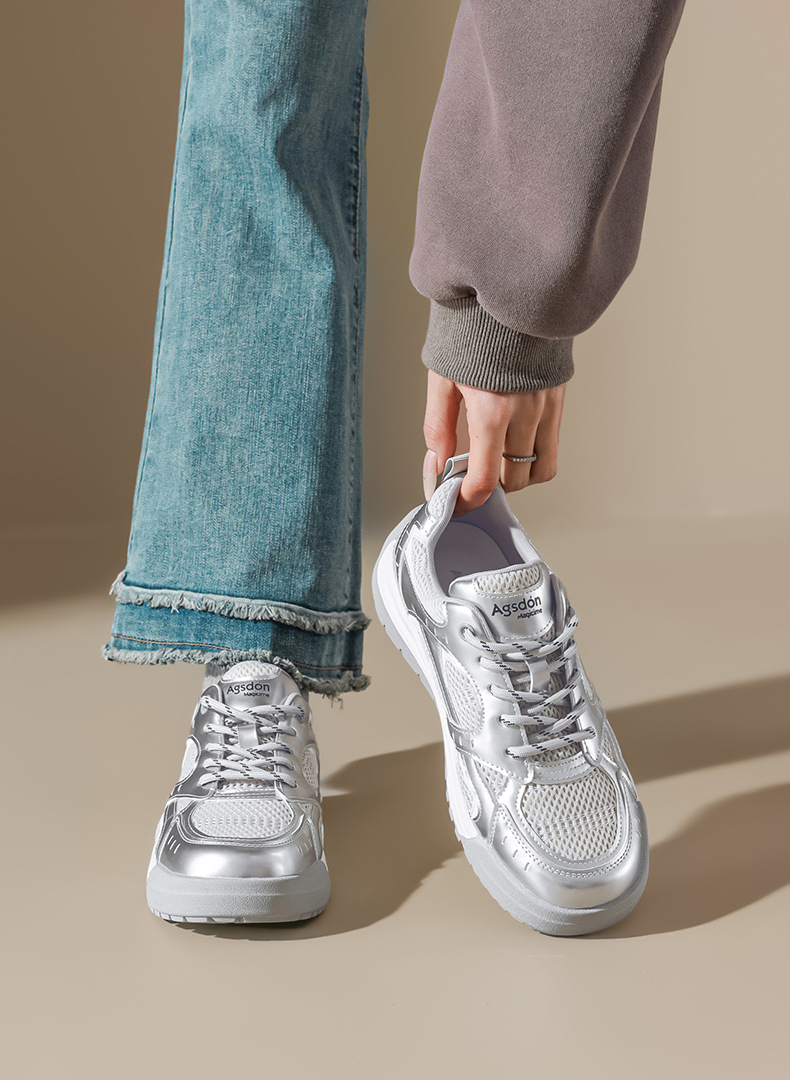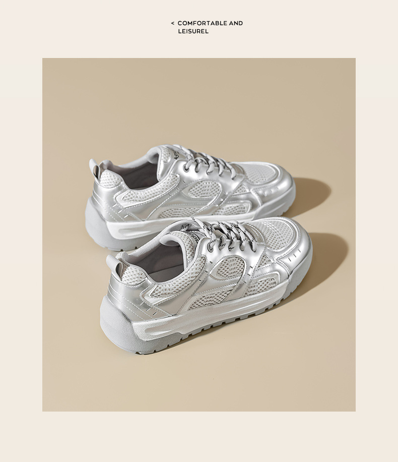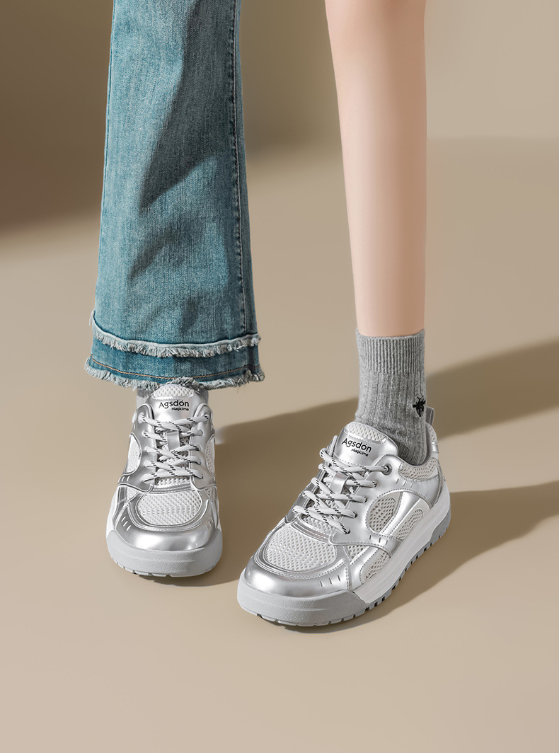 Augustion zapatos blancos de suela gruesa mujer 2025 nueva malla de verano casual zapatillas ligeras zapatillas deportivas básicas