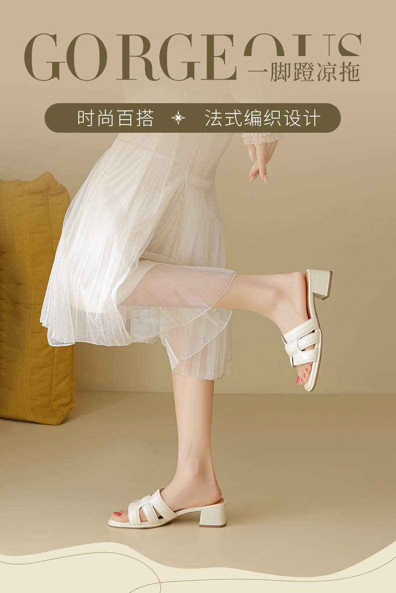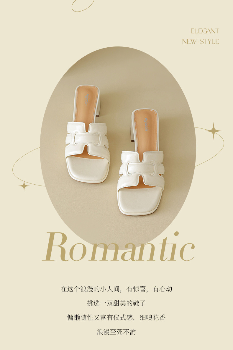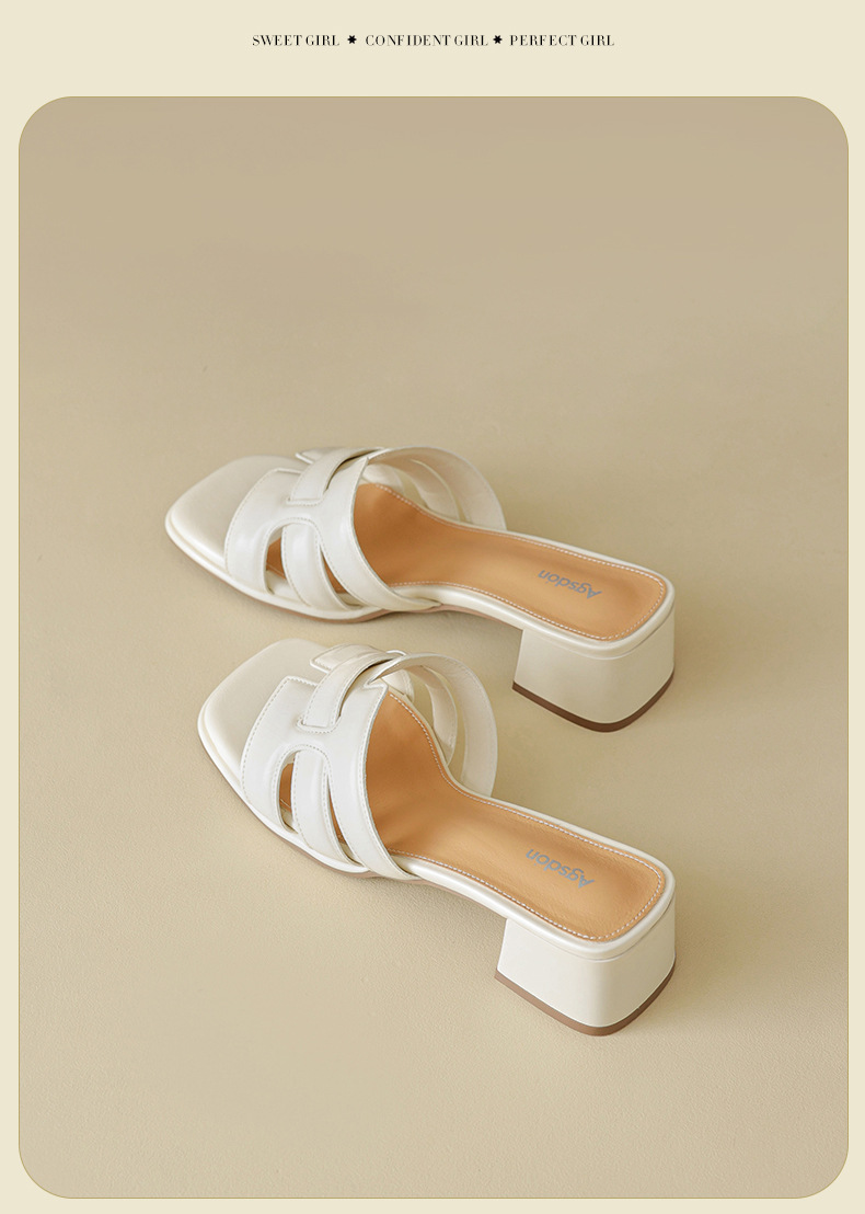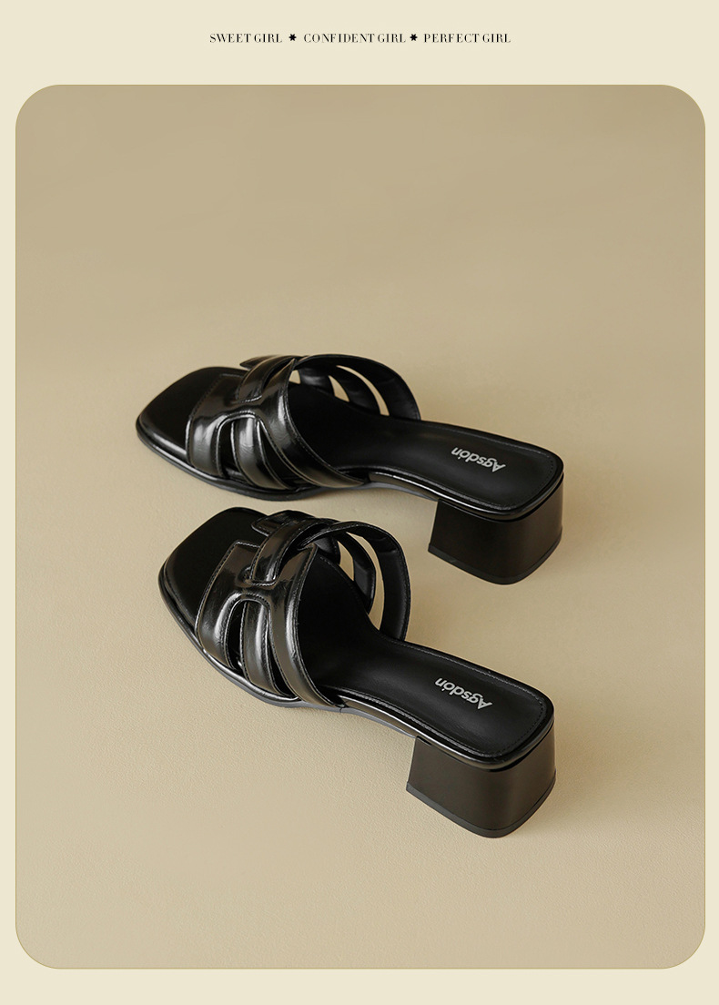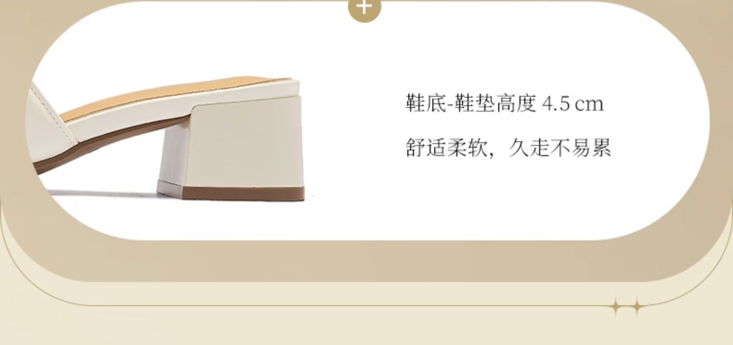 Augustion pantuflas de tacón alto para mujer 2025 verano ropa exterior cabeza cuadrada moda estilo francés retro una palabra sandalias y pantuflas de tacón grueso