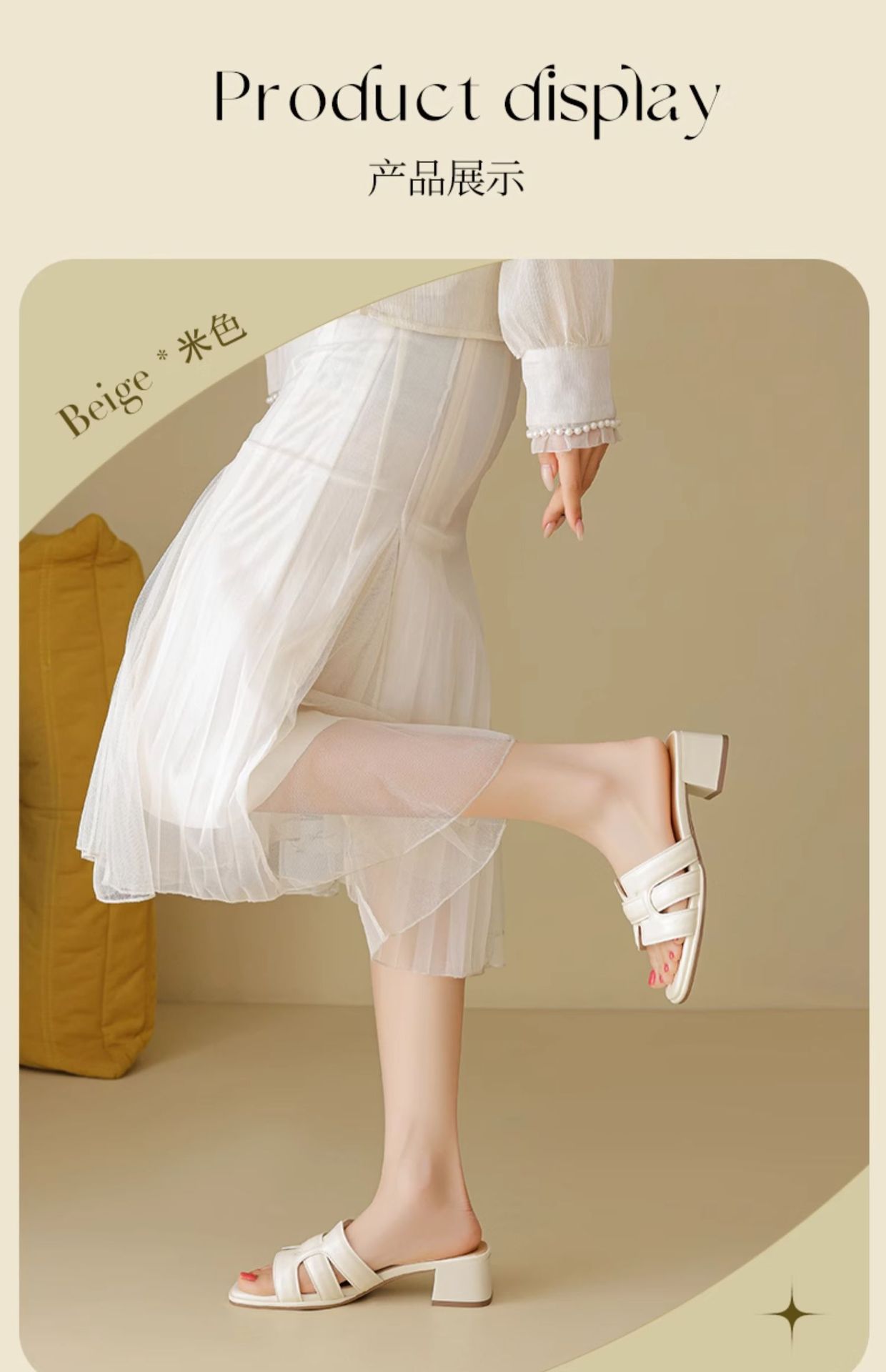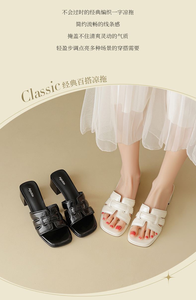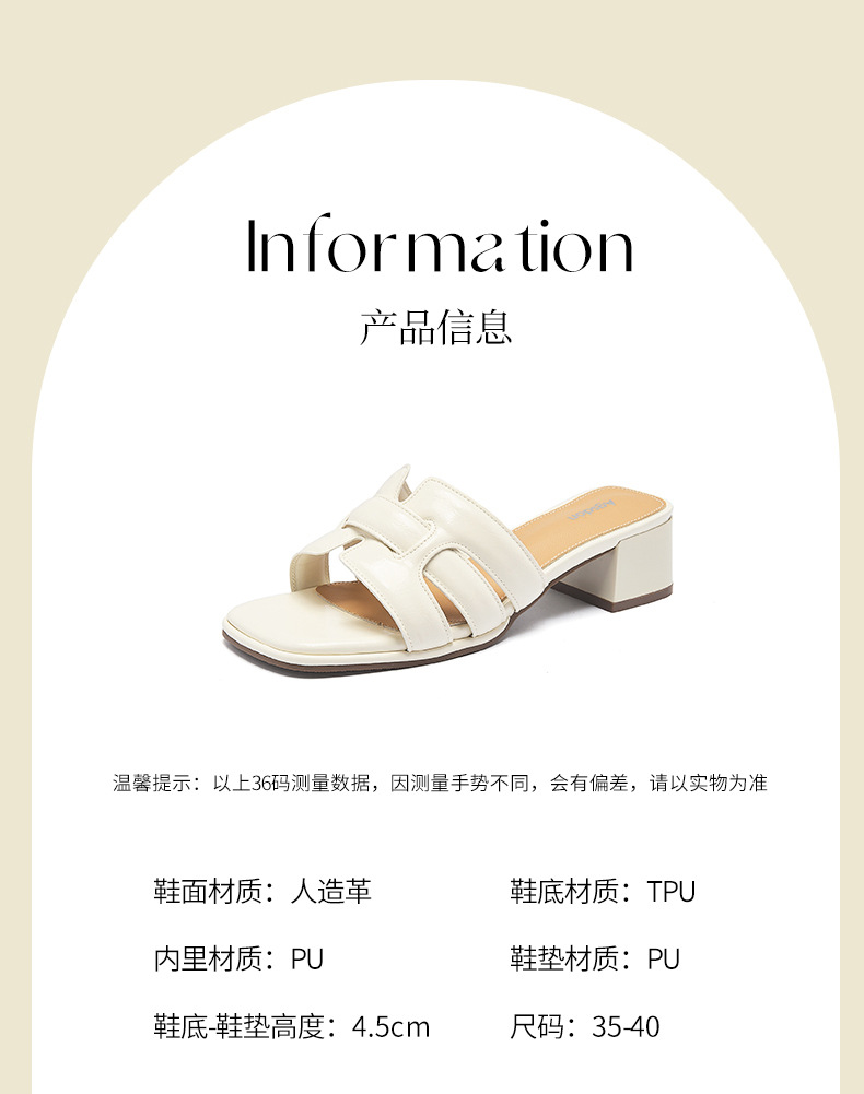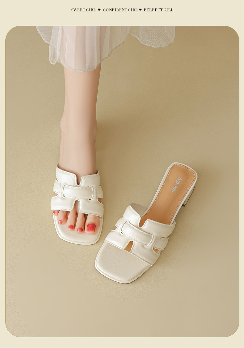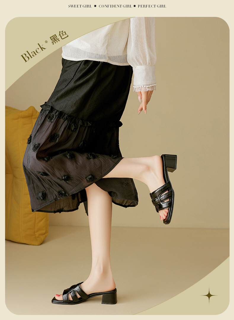 Augustion pantuflas de tacón alto para mujer 2025 verano ropa exterior cabeza cuadrada moda estilo francés retro una palabra sandalias y pantuflas de tacón grueso