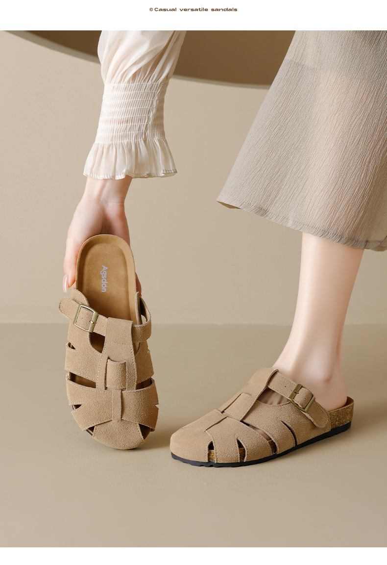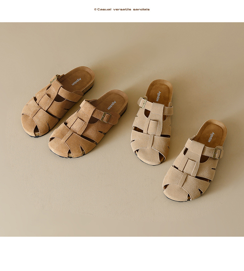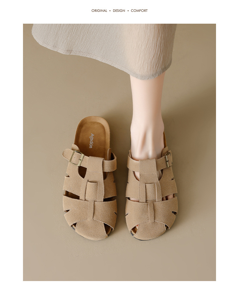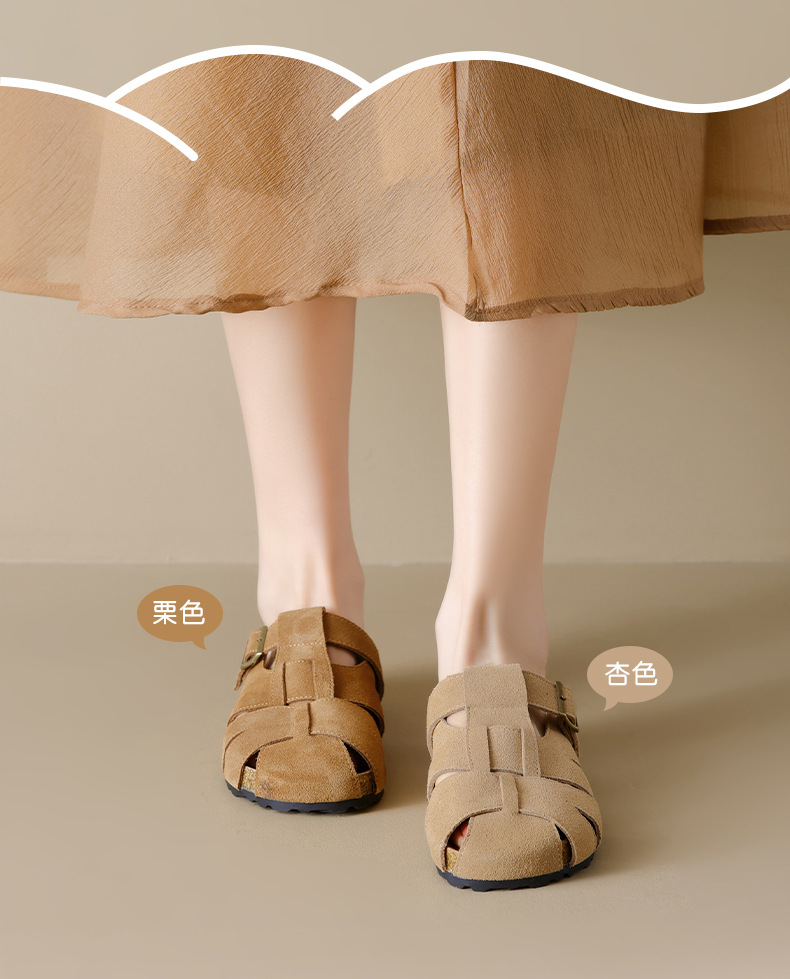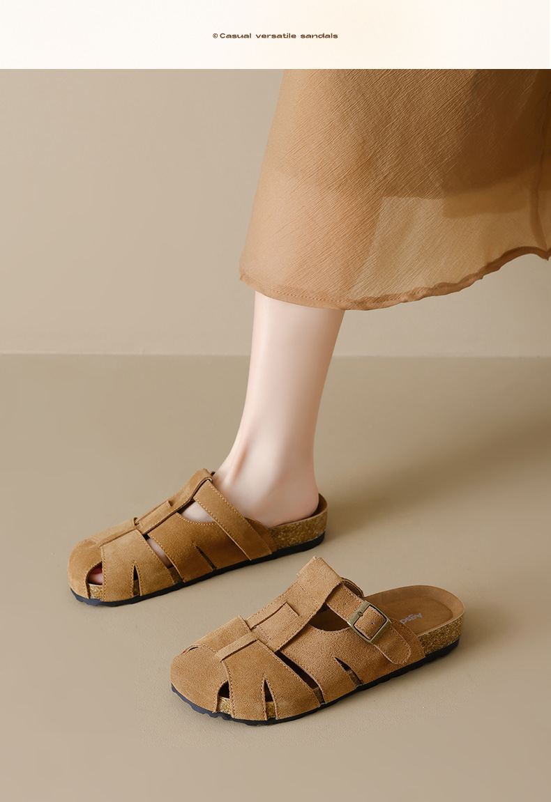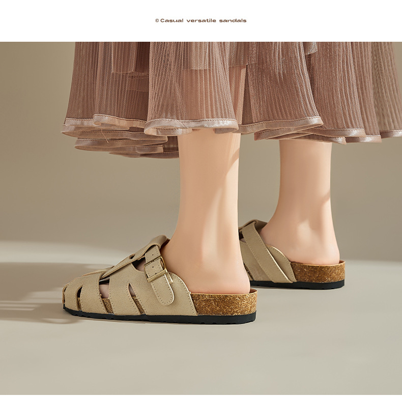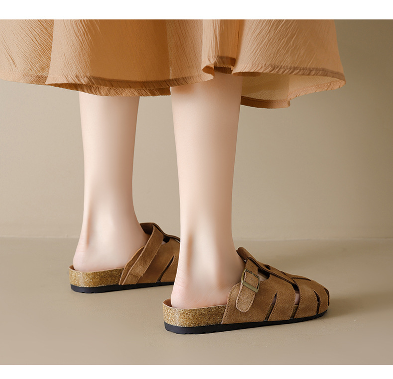 Augustion Half-pantuflas para mujer 2025 nuevo estilo de verano tejido de plataforma con falda retro Baotou Boken Shoes