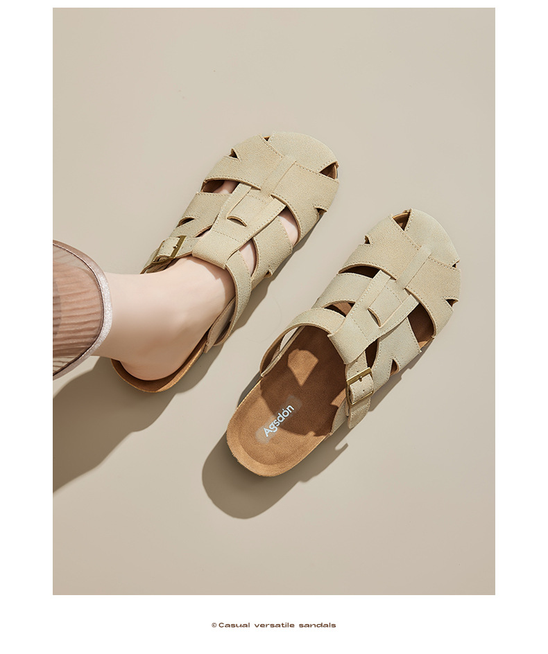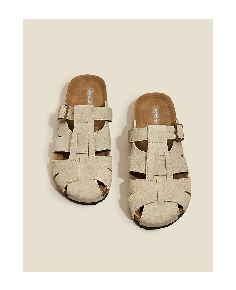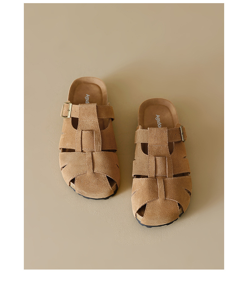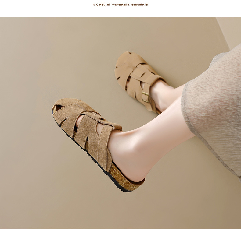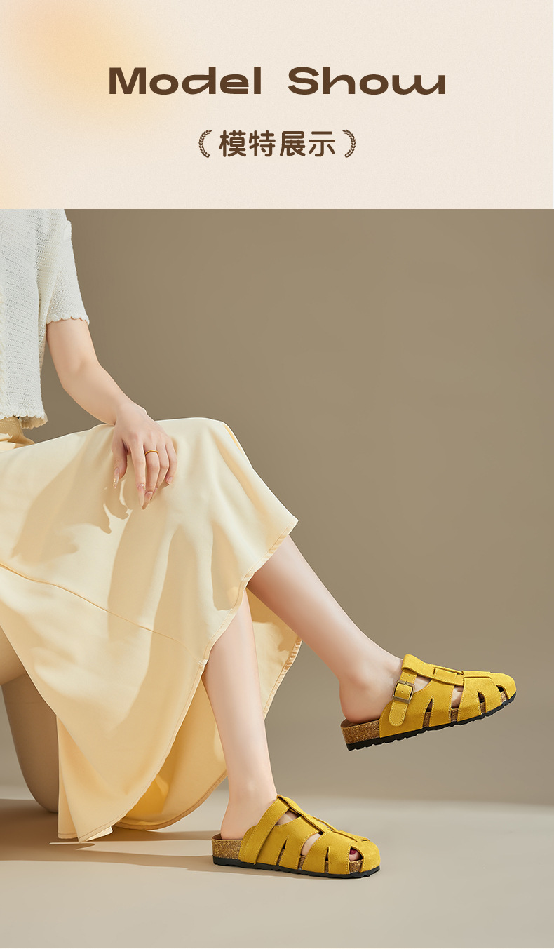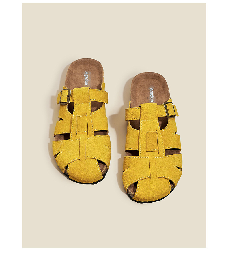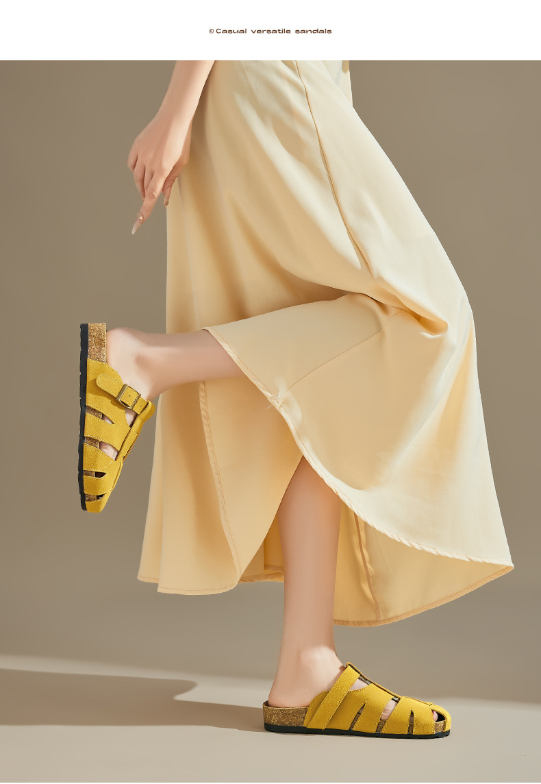 Augustion Half-pantuflas para mujer 2025 nuevo estilo de verano tejido de plataforma con falda retro Baotou Boken Shoes