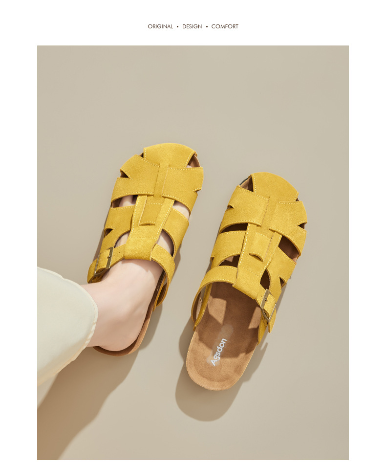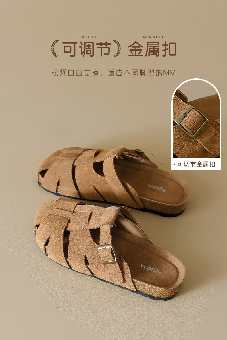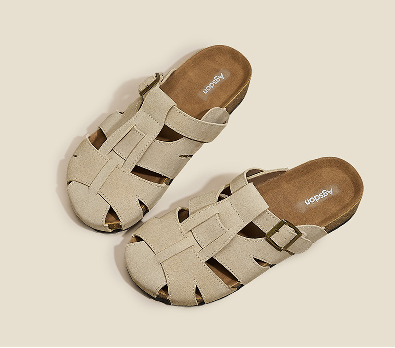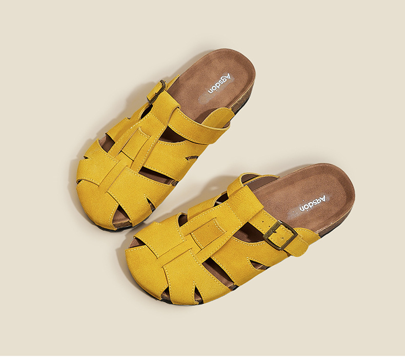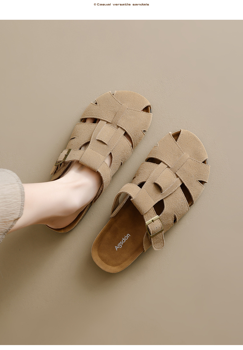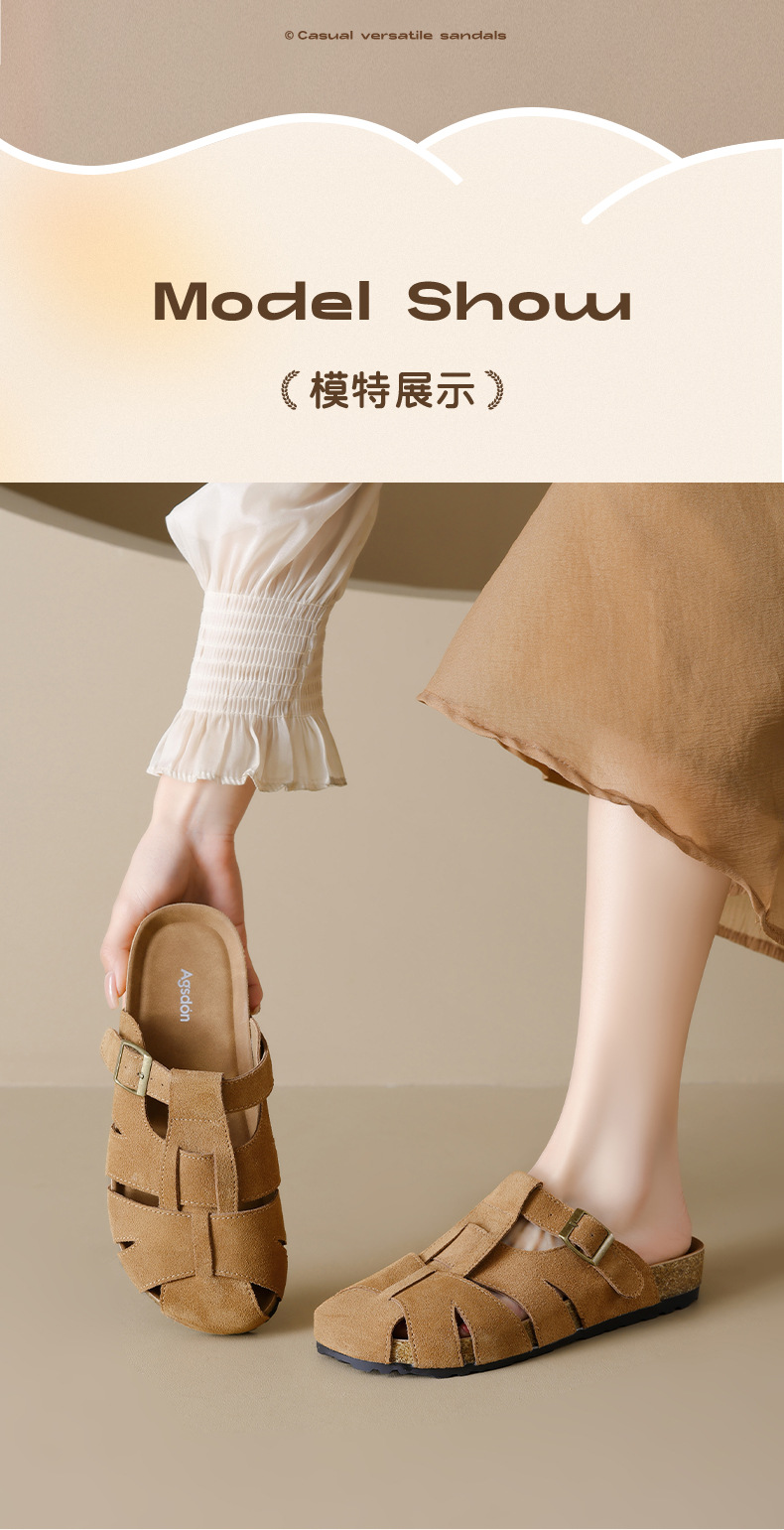 Augustion Half-pantuflas para mujer 2025 nuevo estilo de verano tejido de plataforma con falda retro Baotou Boken Shoes