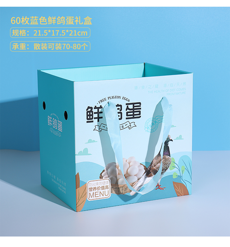 Caja de regalo de huevos de paloma frescos de 60 plumas