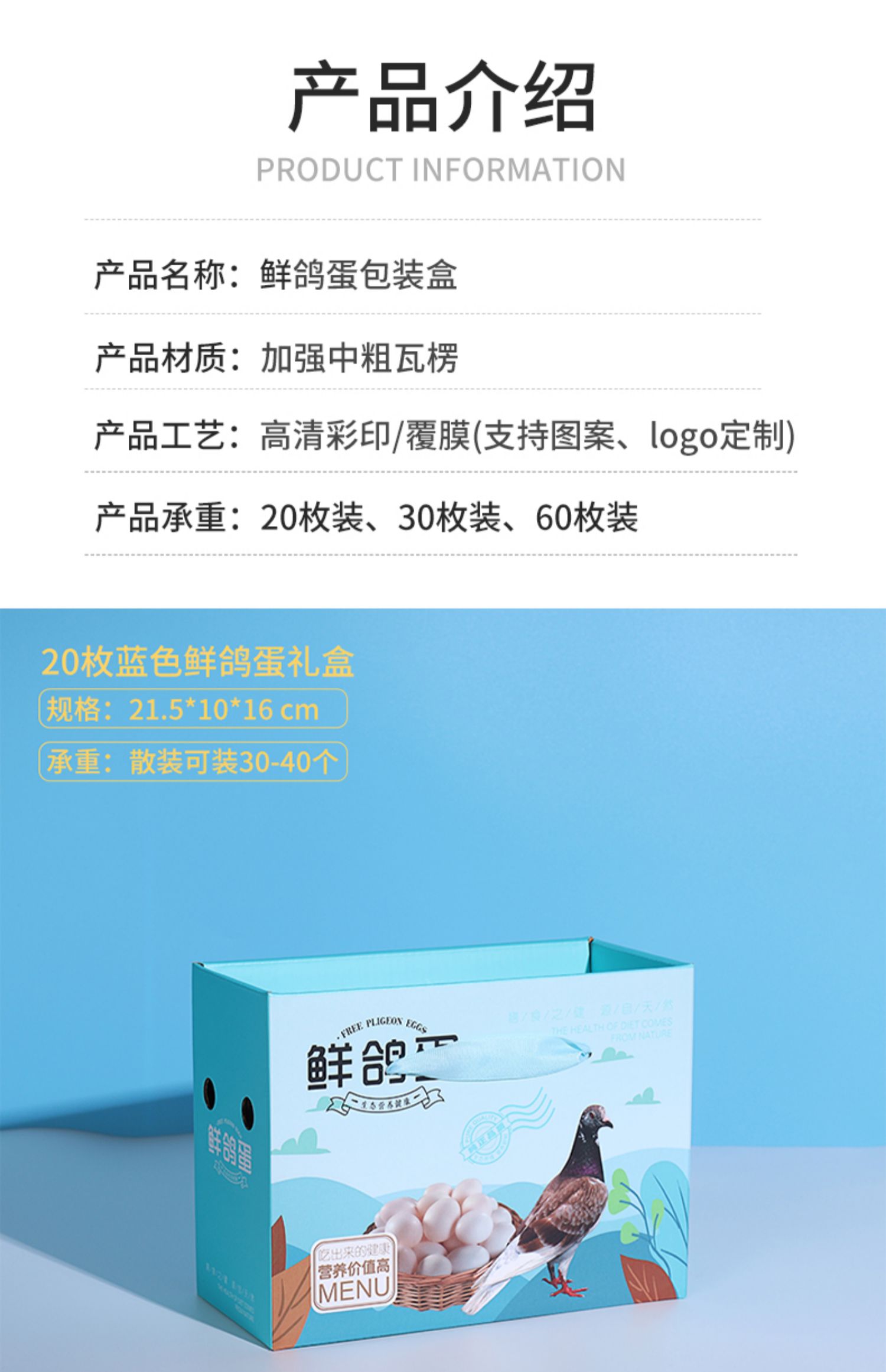 Caja de regalo de huevos de paloma frescos de 30 plumas