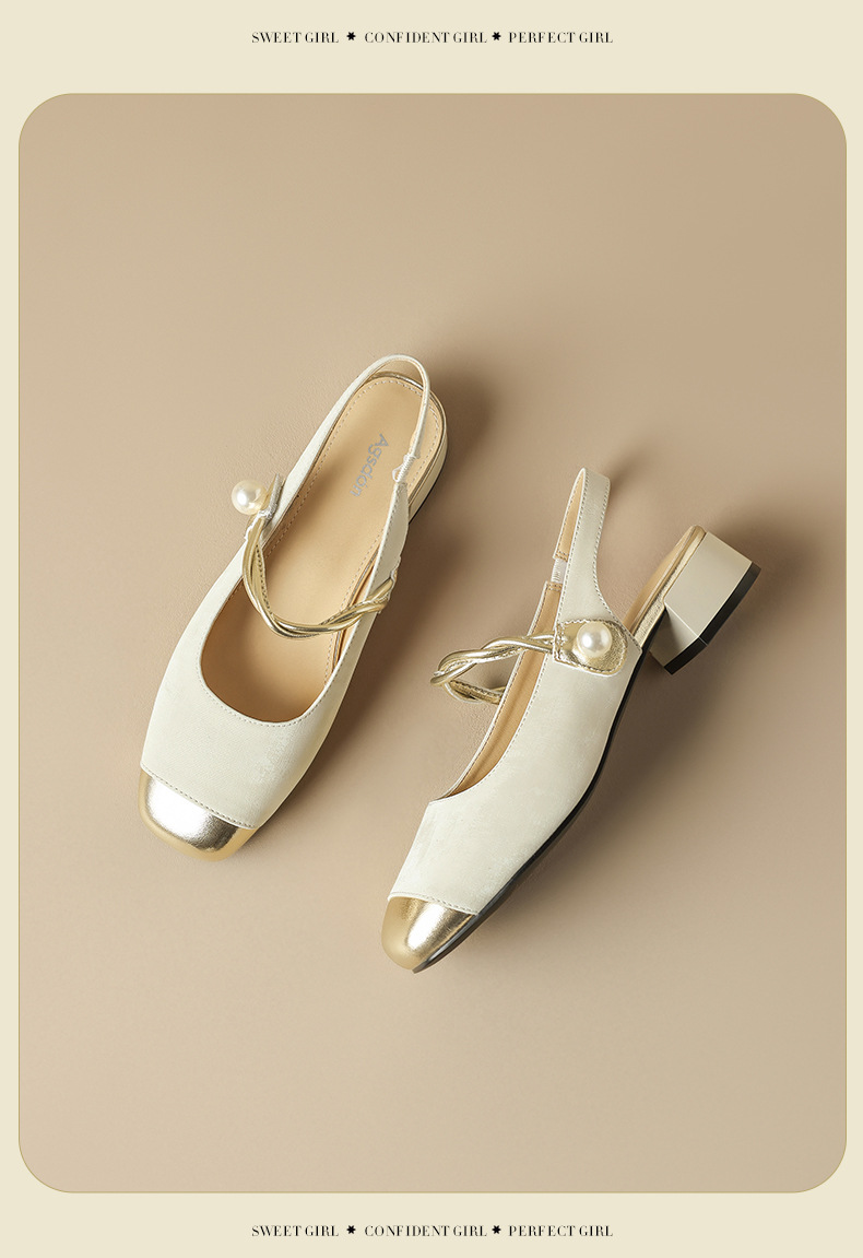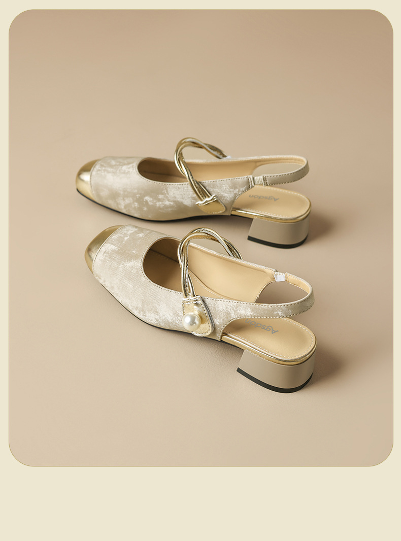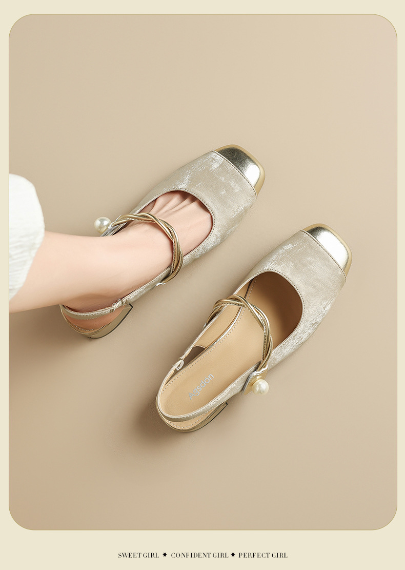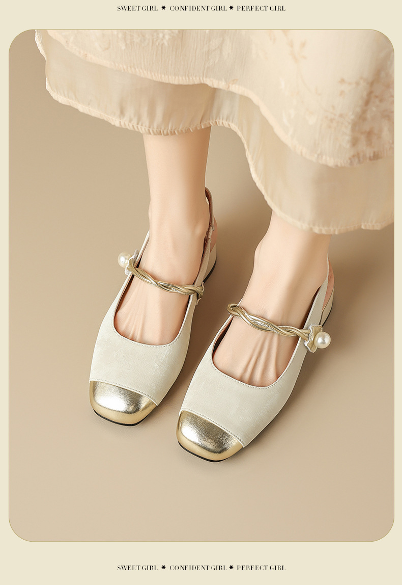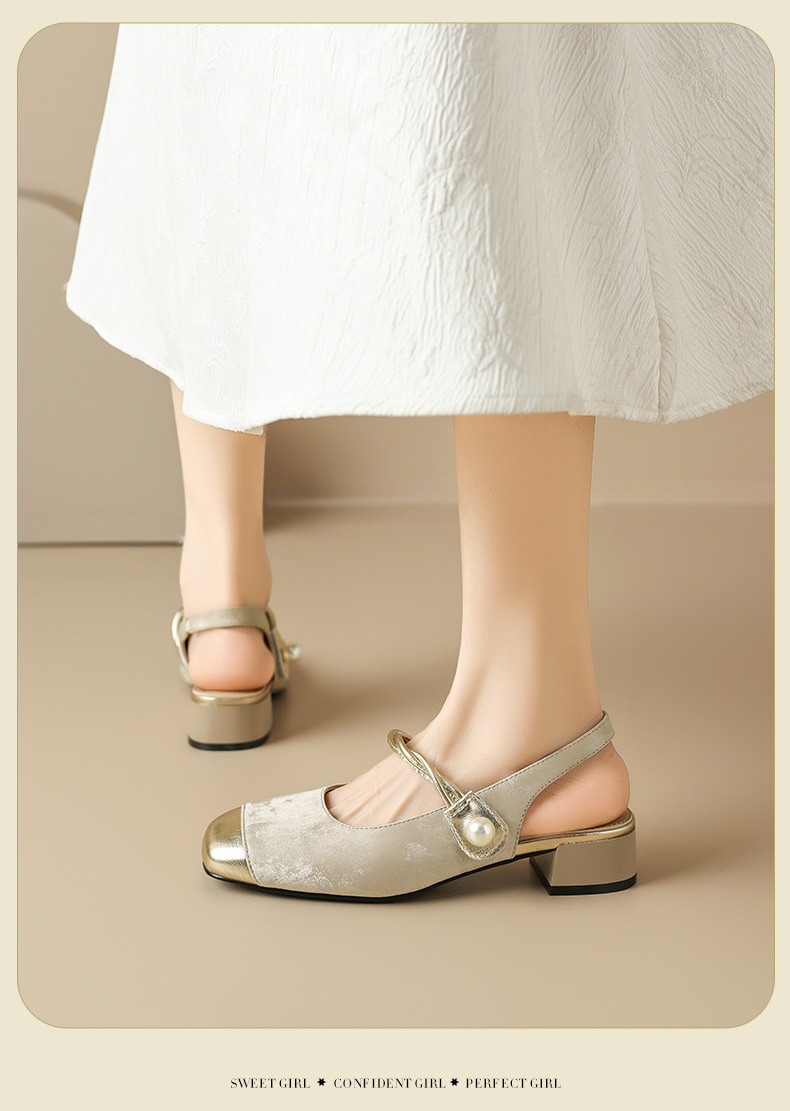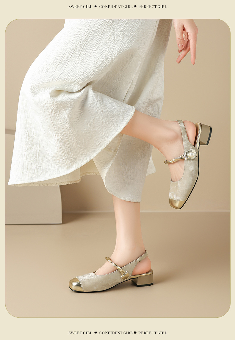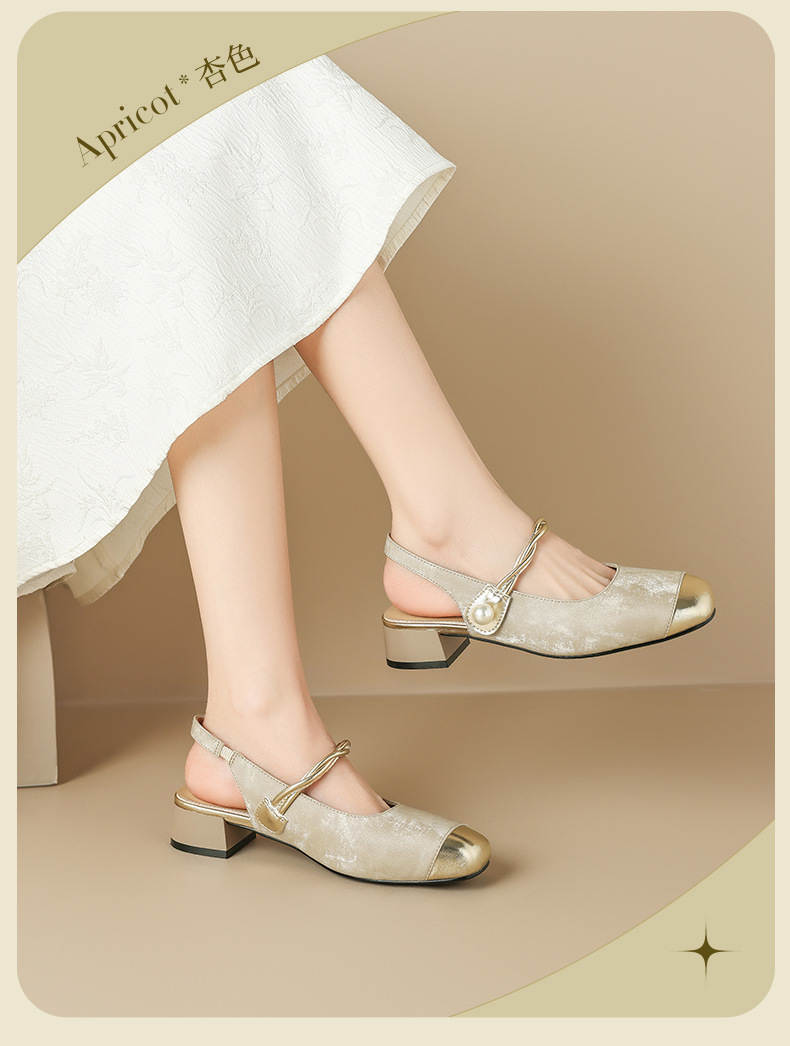 August Lion Deng Baotou sandalias mujer 2025 verano nuevo estilo francés Mary Jane medias pantuflas de tacón medio pequeños zapatos fragantes individuales