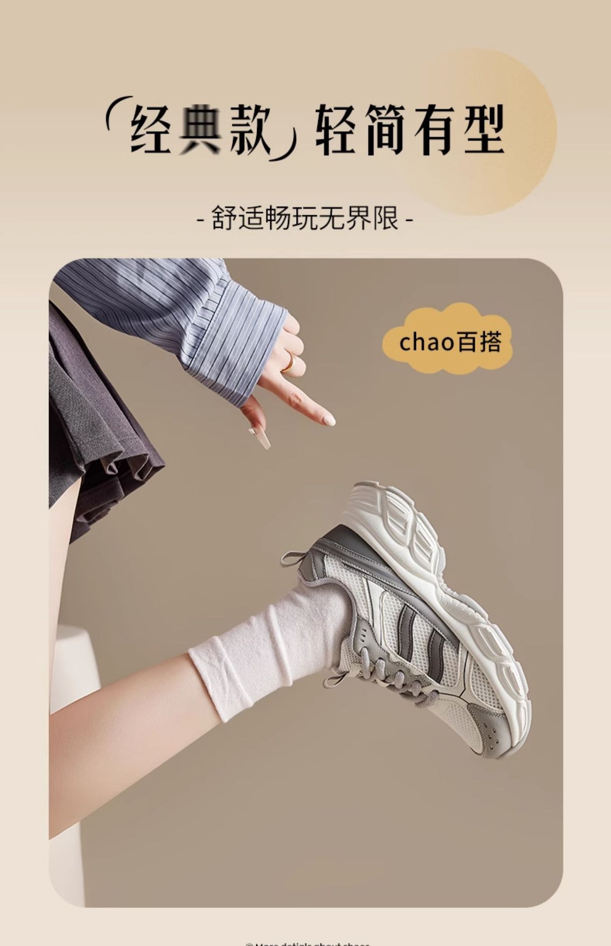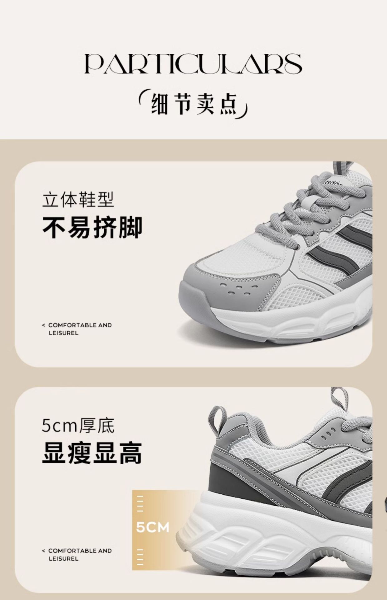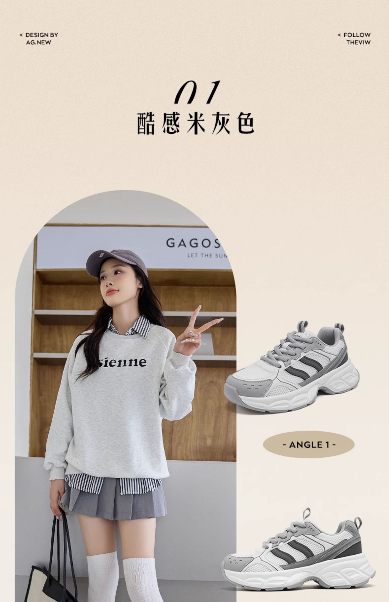 Augustion zapatos de papá gris de suela gruesa para mujer 2025 nuevo verano de suela suave zapatillas de senderismo ligeras