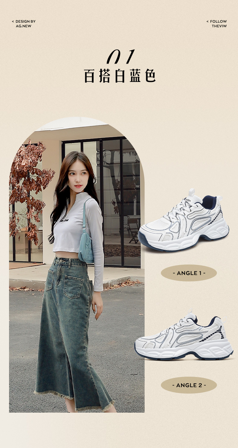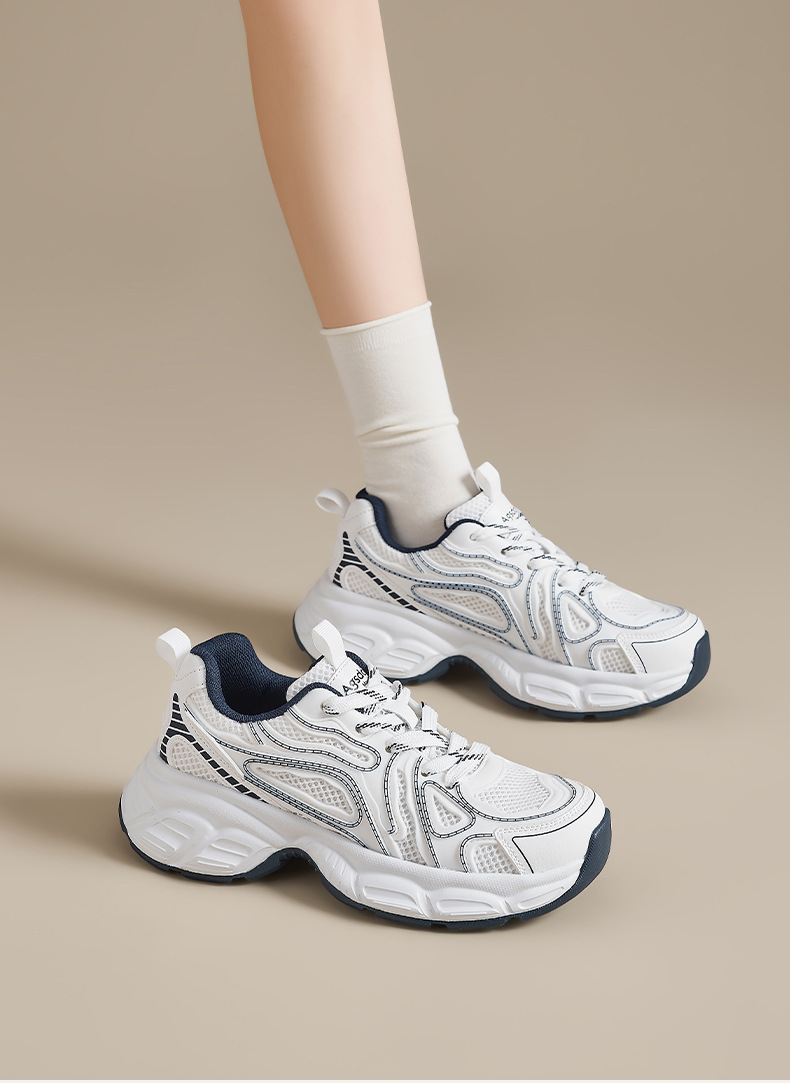 Augustion Daddy Shoes Mujer 2025 nuevo verano malla gruesa suela blanca zapatos deportivos casuales pequeños