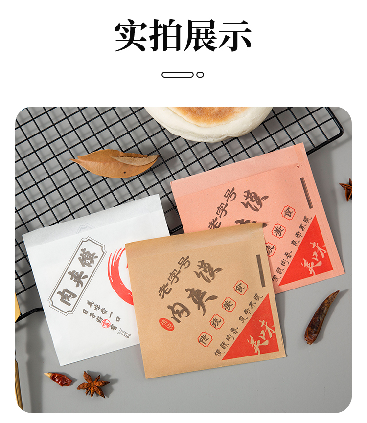 Bolsa de papel de carne de carne, bolsa de papel a prueba de aceite comercial, bolsa de embalaje triangular abierta de Old Tongguan Lijiang Dingxiangfang